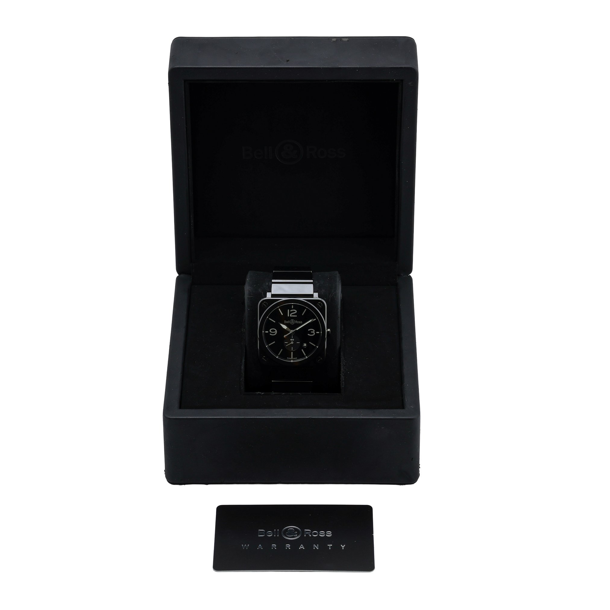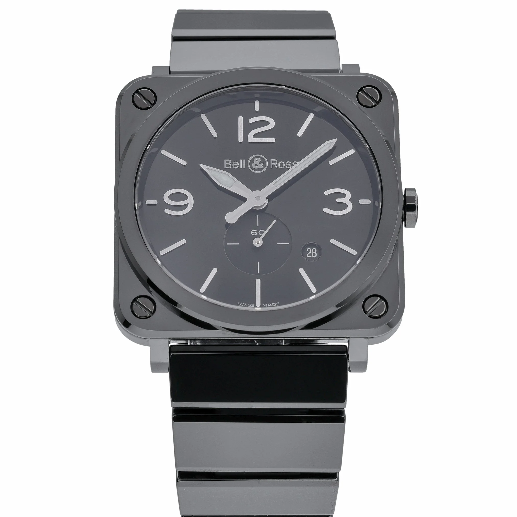 Discover the Bell & Ross BRS-64, a sleek 39mm gents’ timepiece that blends modern design with everyday reliability. Crafted in lightweight, scratch-resistant ceramic, the case and matching ceramic bracelet are paired with a secure folding clasp. A black dial with Arabic numerals sits beneath sapphire crystal for excellent clarity, framed by a clean, plain bezel. Powered by a precise quartz movement, this 2021 watch is presented in excellent condition. It comes complete with its box and original papers for added assurance. Model: BRS-64 (Ref. BRS-64-CSBl), BQ Ref: 52905. Enjoy peace of mind with a 2 Year Warranty, plus flexible shopping with our 14 Day Return Policy and Prompt Delivery. An ideal choice for those who value Bell & Ross’s distinctive aesthetic, durable materials, and fuss-free accuracy in a refined, wearable size.