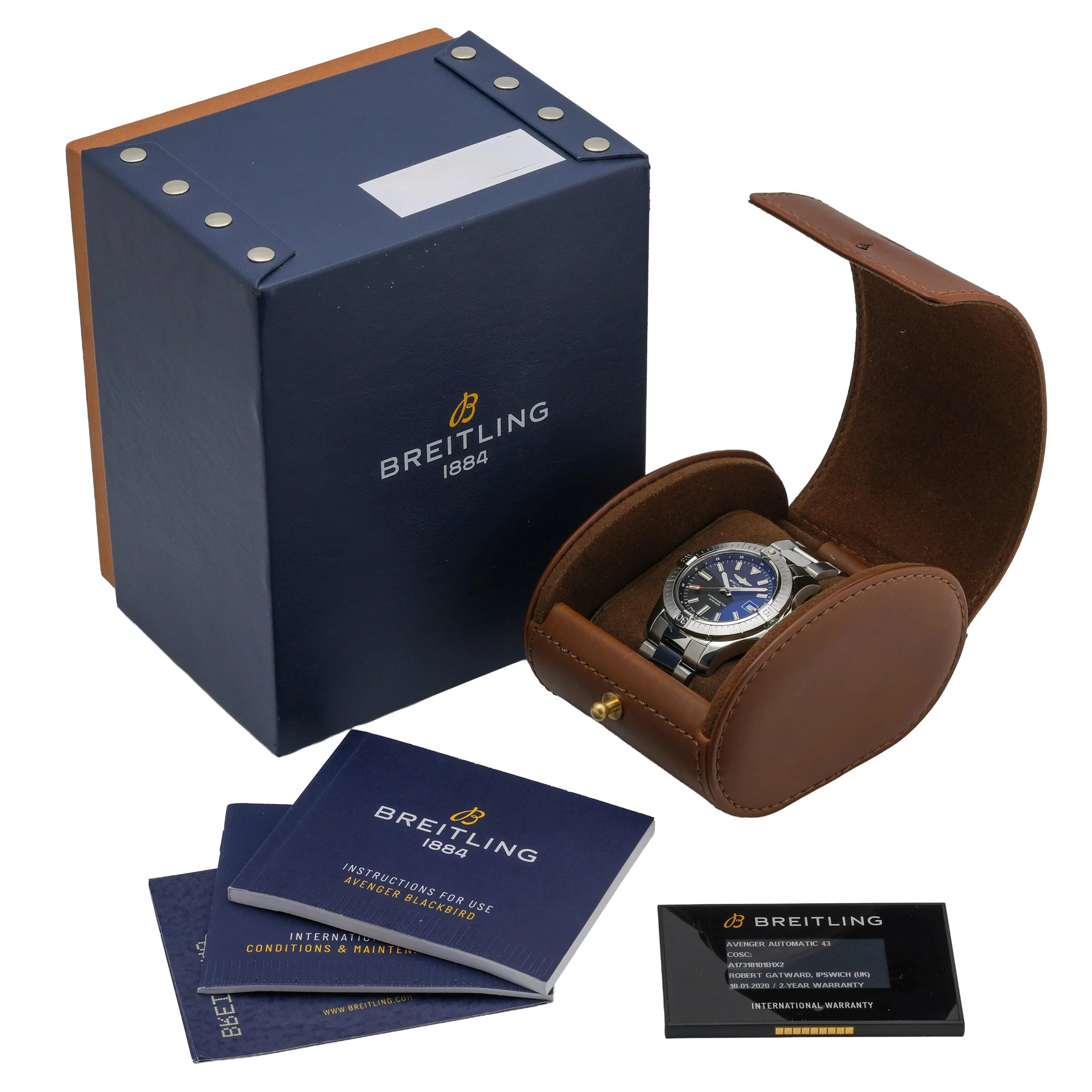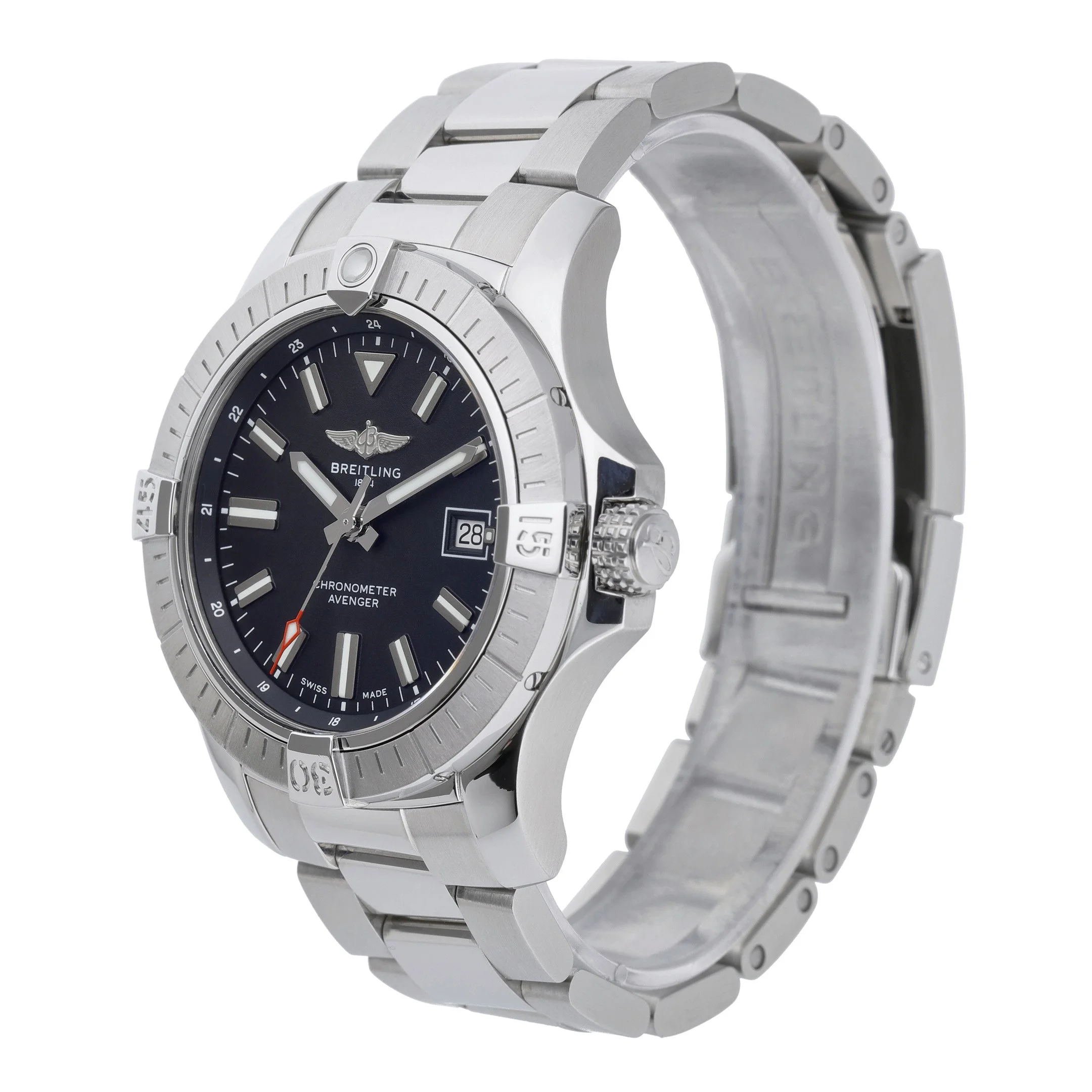 Bold and built for performance, the Breitling Avenger Automatic 43 (Model A17318101B1X2) blends rugged capability with refined style. Its 43mm stainless steel case houses a black baton dial beneath scratch-resistant sapphire crystal, framed by a unidirectional rotating bezel for precise timing. Powered by a dependable automatic movement and water-resistant to 300M, it’s ready for any adventure. This 2020 example is in excellent condition and comes on a stainless steel bracelet with a secure folding clasp. Supplied with its original box and papers, and referenced under BQ Ref 52976, it is backed by our 2 Year Warranty for added peace of mind. Enjoy Prompt Delivery and a 14 Day Return Policy.