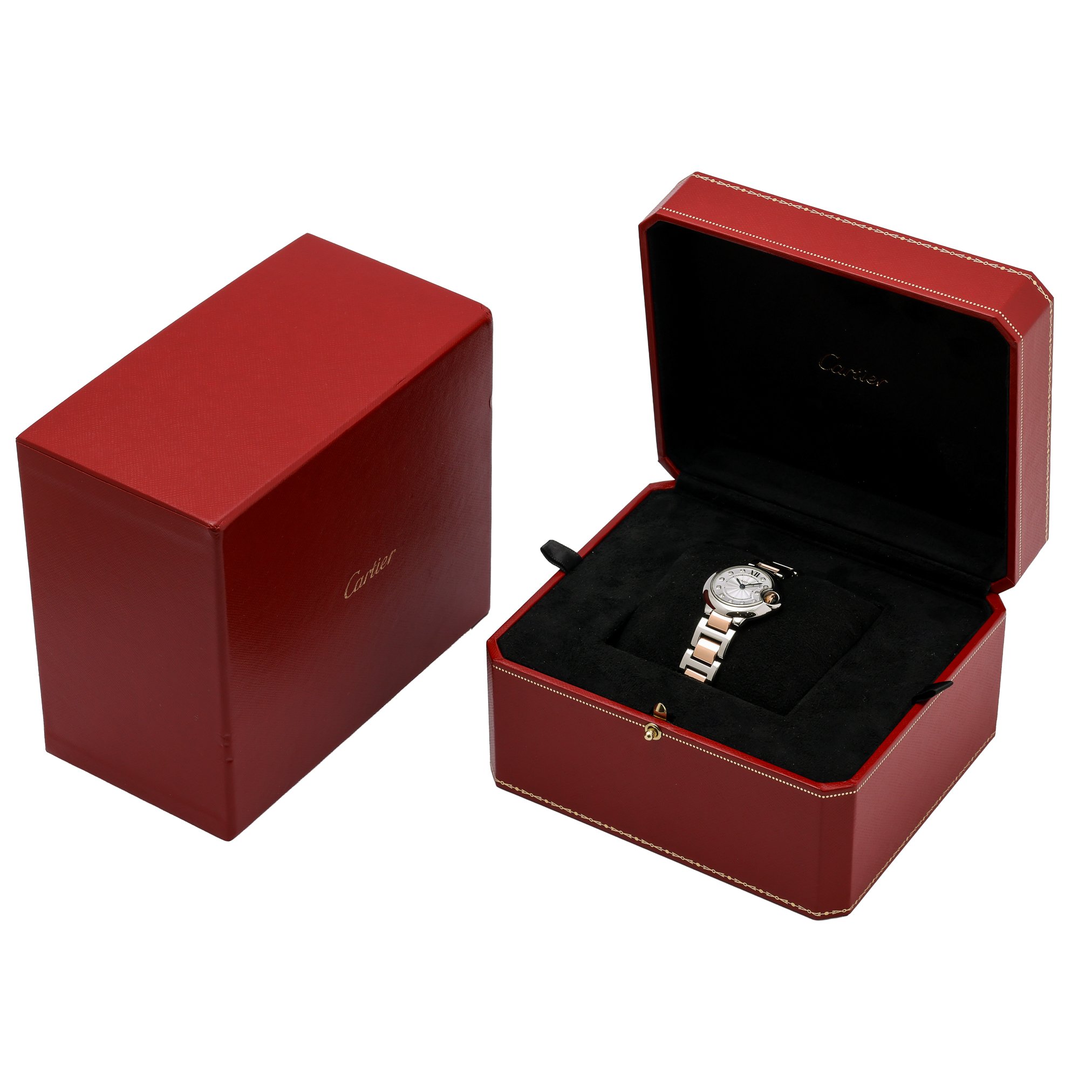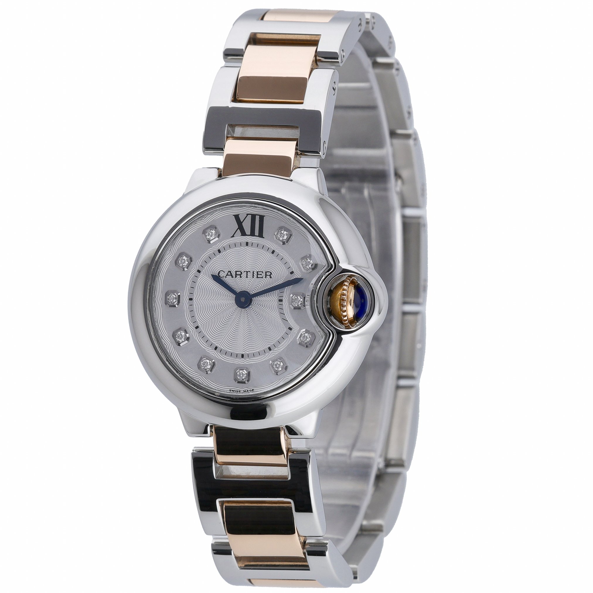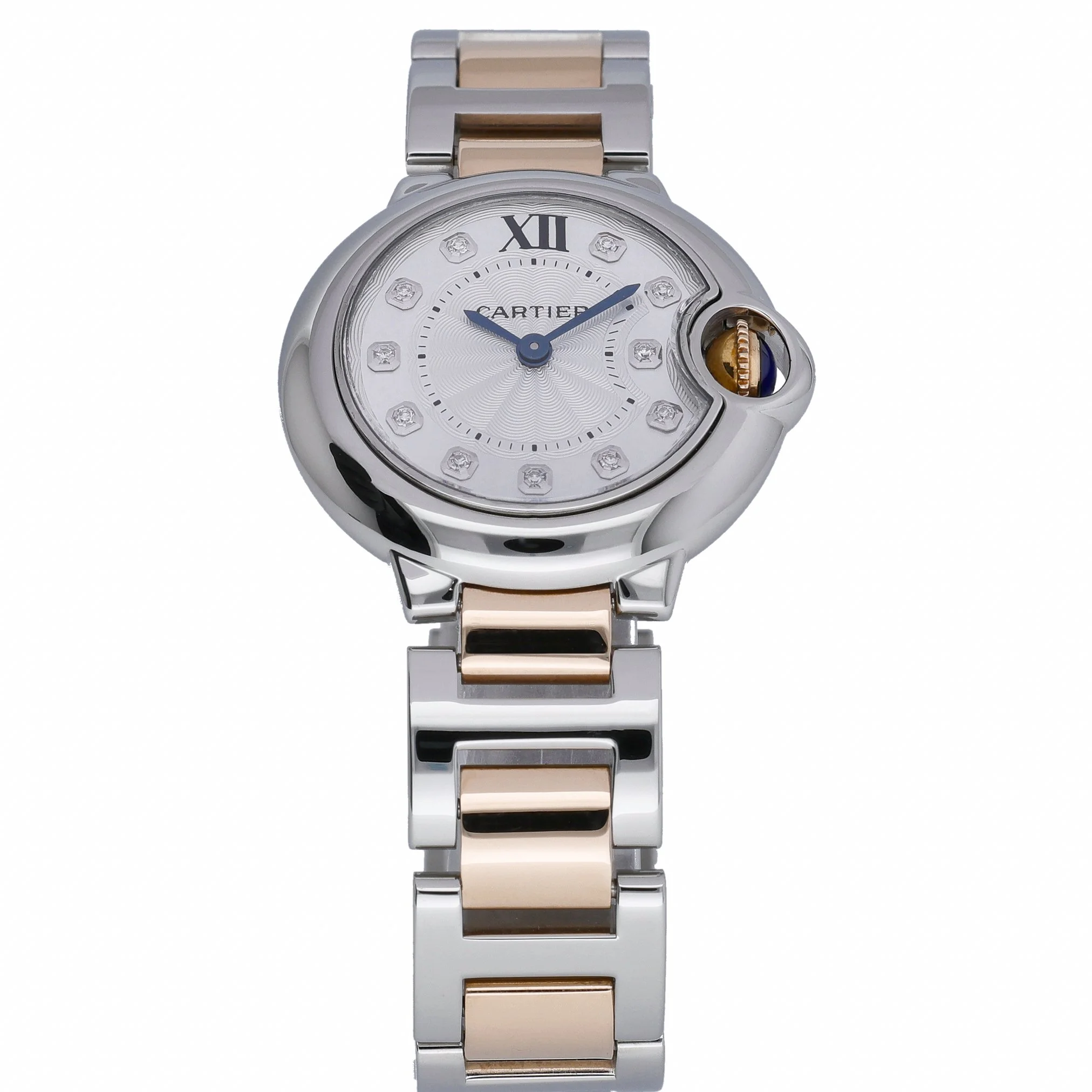 Cartier Ballon Bleu, Model 3009, in 28mm Steel & Rose Gold, blends signature elegance with everyday versatility. This ladies’ timepiece features a silver dial adorned with diamond hour markers beneath a scratch‑resistant sapphire crystal and a smooth plain bezel. Powered by a precise quartz movement, it is fitted with a two-tone Steel & Rose Gold bracelet and a secure folding clasp. Produced in 2012 and presented in excellent condition (BQ Ref 53068), it is supplied with a Cartier box and backed by a 2 Year Warranty. Water resistant to 30M. Enjoy Prompt Delivery and a 14 Day Return Policy for complete peace of mind.