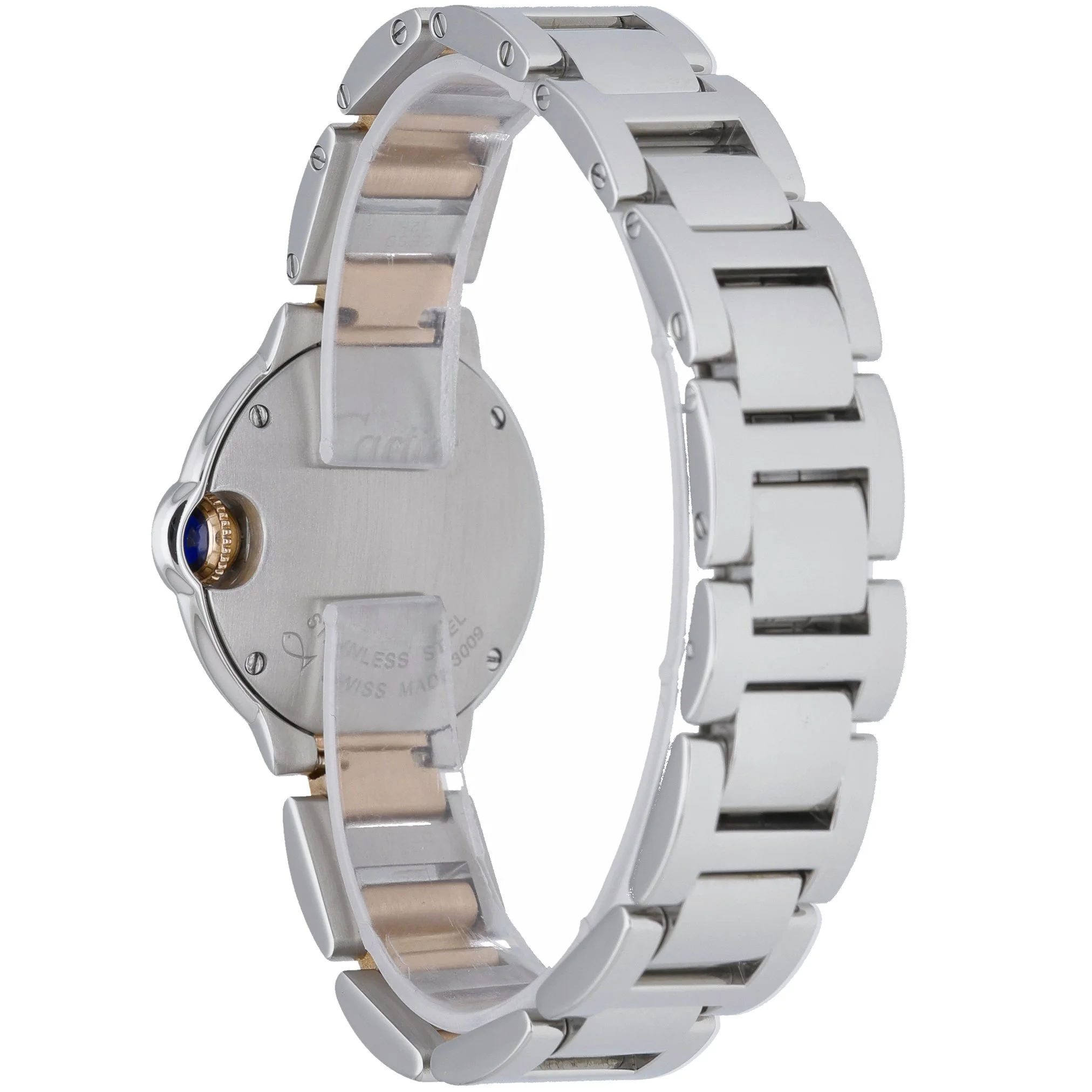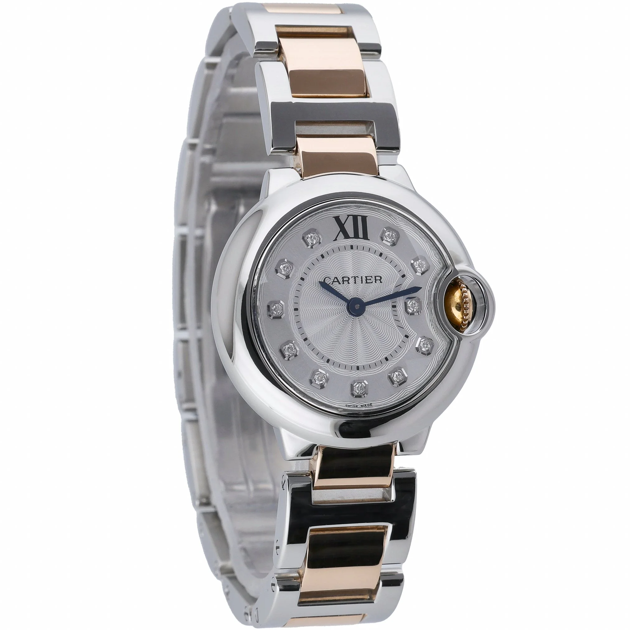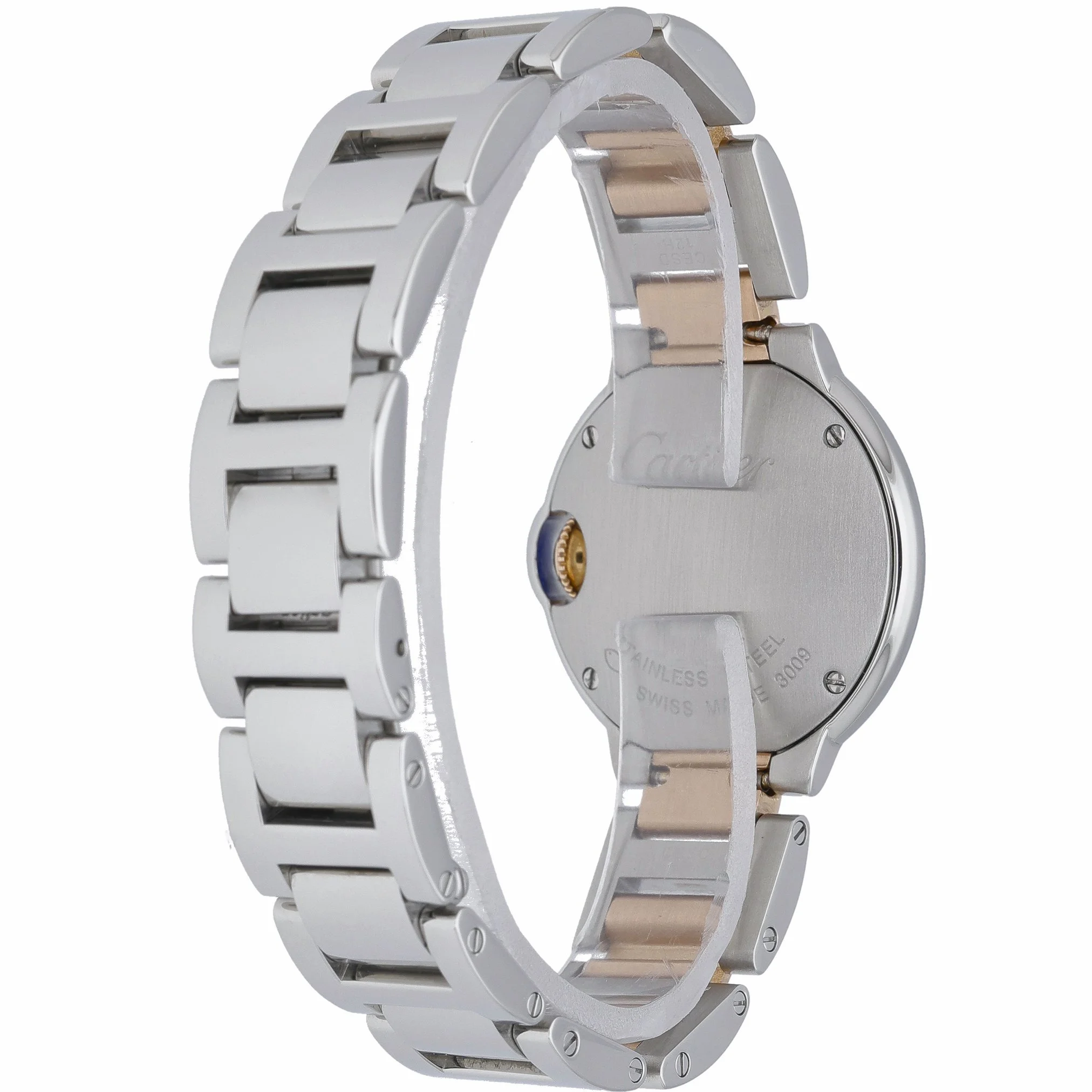 Cartier Ballon Bleu, Model 3009, in 28mm Steel & Rose Gold, blends signature elegance with everyday versatility. This ladies’ timepiece features a silver dial adorned with diamond hour markers beneath a scratch‑resistant sapphire crystal and a smooth plain bezel. Powered by a precise quartz movement, it is fitted with a two-tone Steel & Rose Gold bracelet and a secure folding clasp. Produced in 2012 and presented in excellent condition (BQ Ref 53068), it is supplied with a Cartier box and backed by a 2 Year Warranty. Water resistant to 30M. Enjoy Prompt Delivery and a 14 Day Return Policy for complete peace of mind.