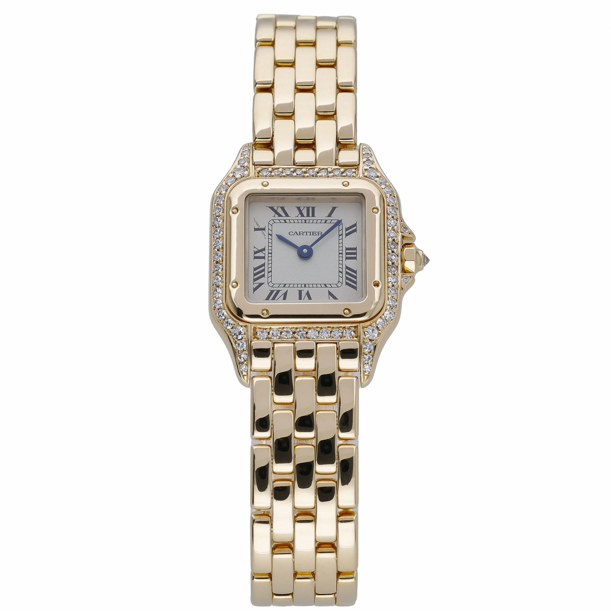 Elegantly timeless, the Cartier Panthère Ruban (Model 03546, BQ Ref 52891) captures the Maison’s iconic style in 18ct yellow gold. This ladies’ 22mm classic features a diamond-set bezel framing a white Roman dial protected by sapphire crystal, paired with the distinctive Ruban bracelet and secure folding clasp. Powered by a precise quartz movement and crafted in 1996, it is offered in excellent condition and comes with its box. Water resistant to 3 ATM, it’s refined for everyday elegance while remaining effortlessly wearable. Enjoy peace of mind with our 2 Year Warranty, Prompt Delivery, and a 14 Day Return Policy.