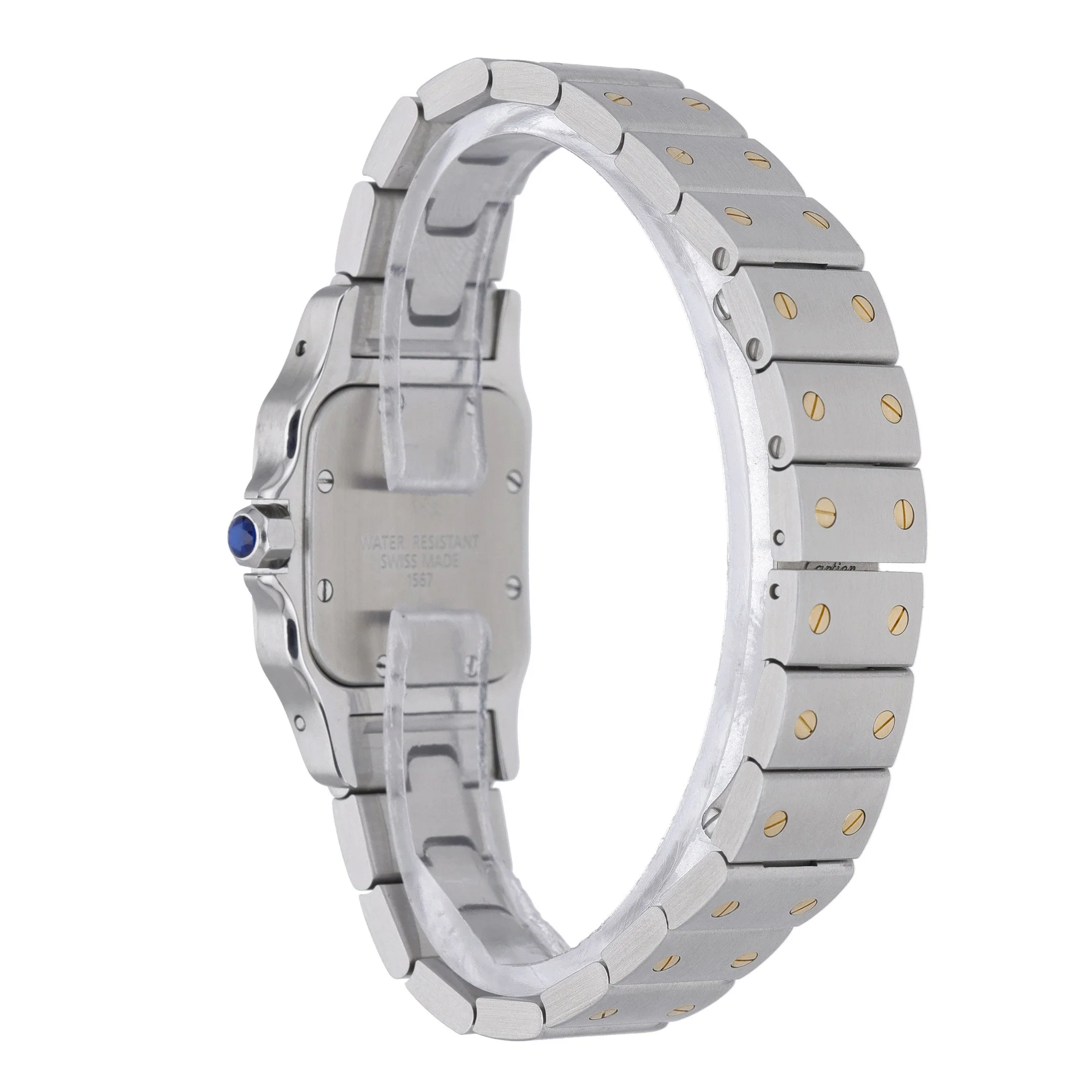 Celebrate timeless design with this ladies’ Cartier Santos (Model 1567), a refined 24mm two-tone steel and yellow gold example from 1995, presented in excellent condition. The crisp white Roman dial sits beneath scratch-resistant sapphire crystal, framed by a plain bezel and secured by the signature steel and yellow gold bracelet with folding clasp. Powered by a reliable quartz movement and water-resistant to 3 ATM, this Santos blends everyday practicality with enduring elegance. Supplied with Cartier box, it is covered by a 2 Year Warranty and supported by our 14 Day Return Policy for complete peace of mind. BQ Ref 53052. Enjoy fast, Prompt Delivery.