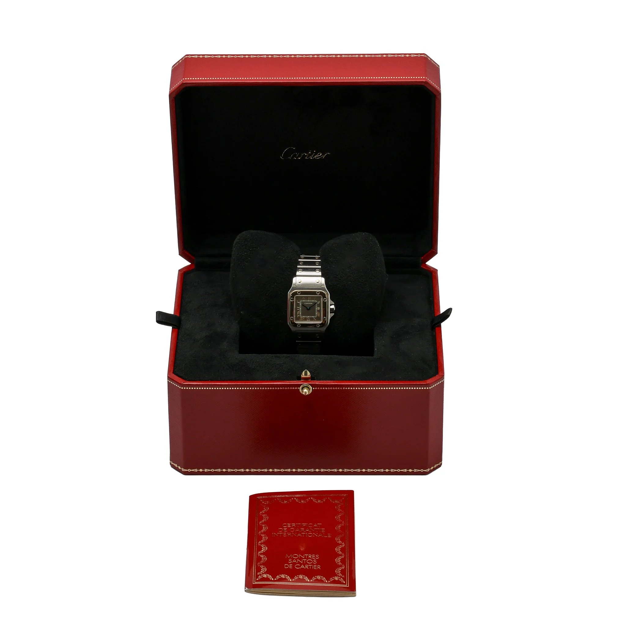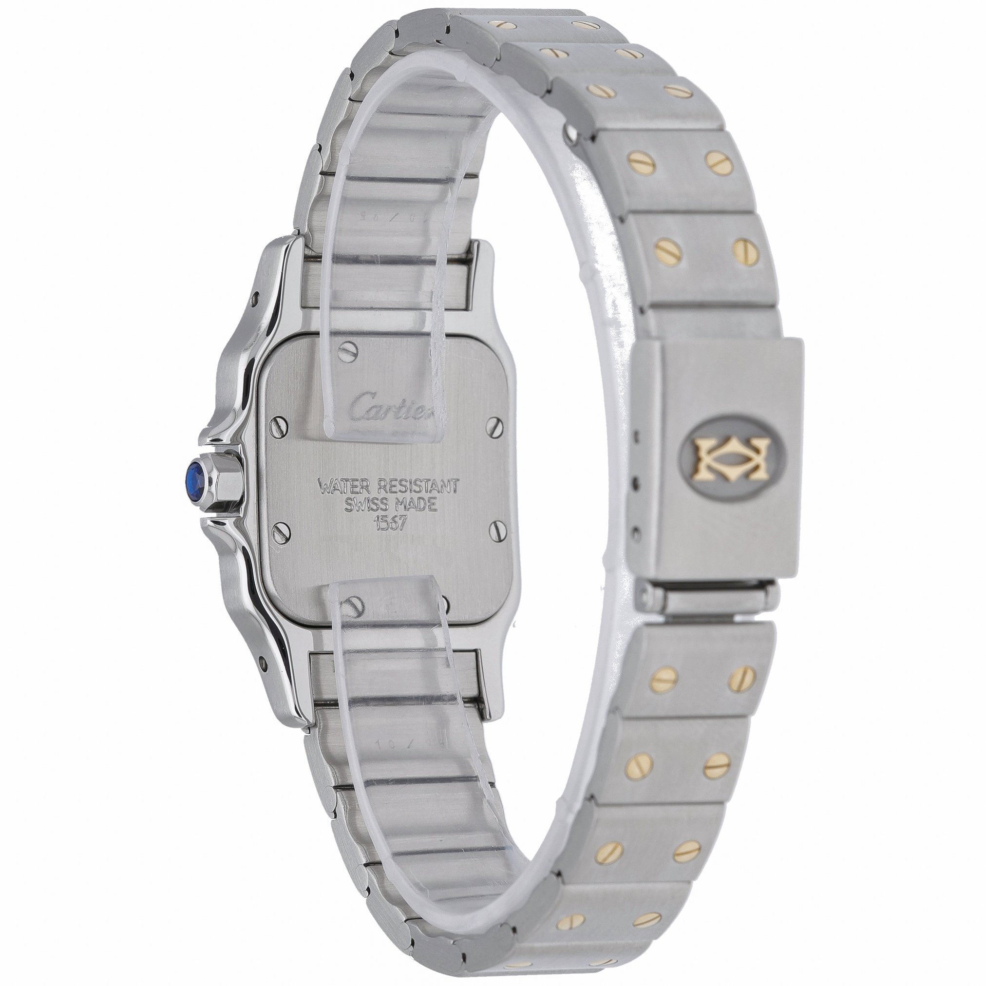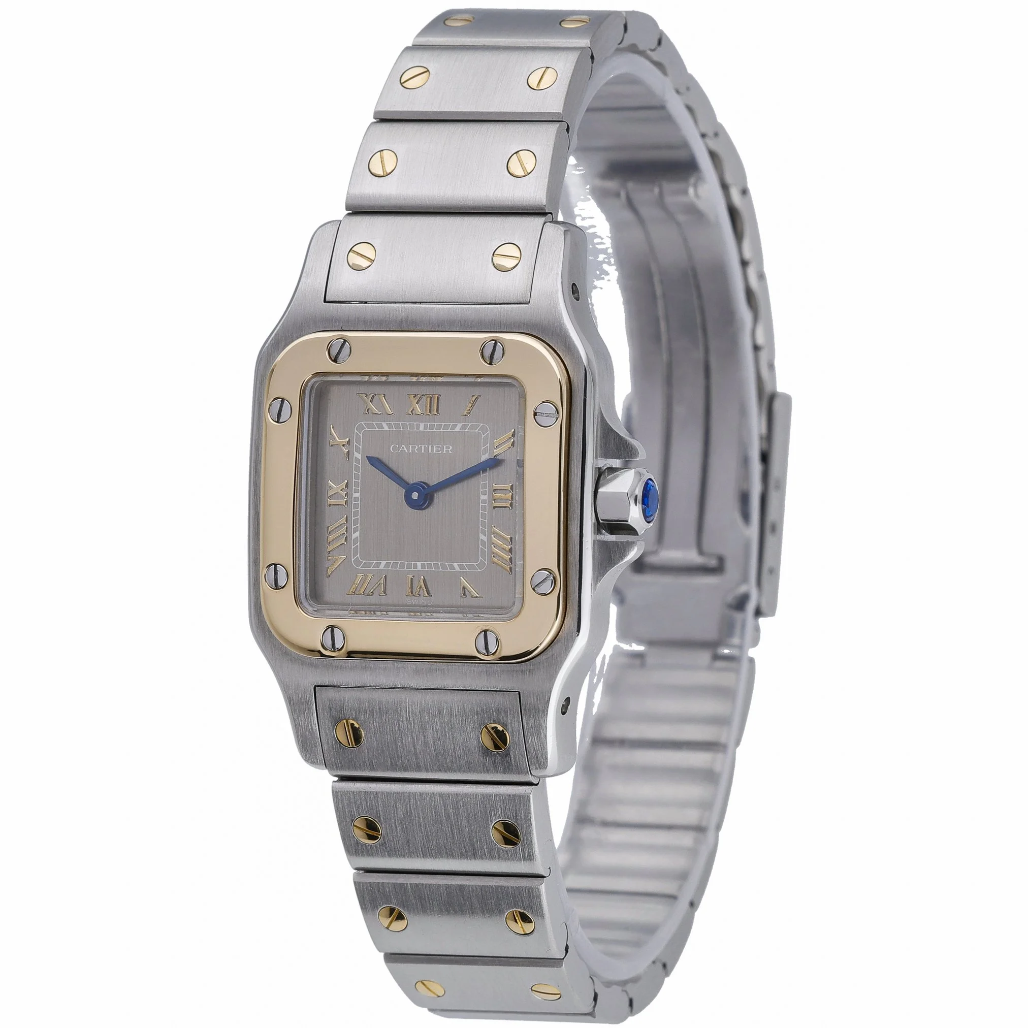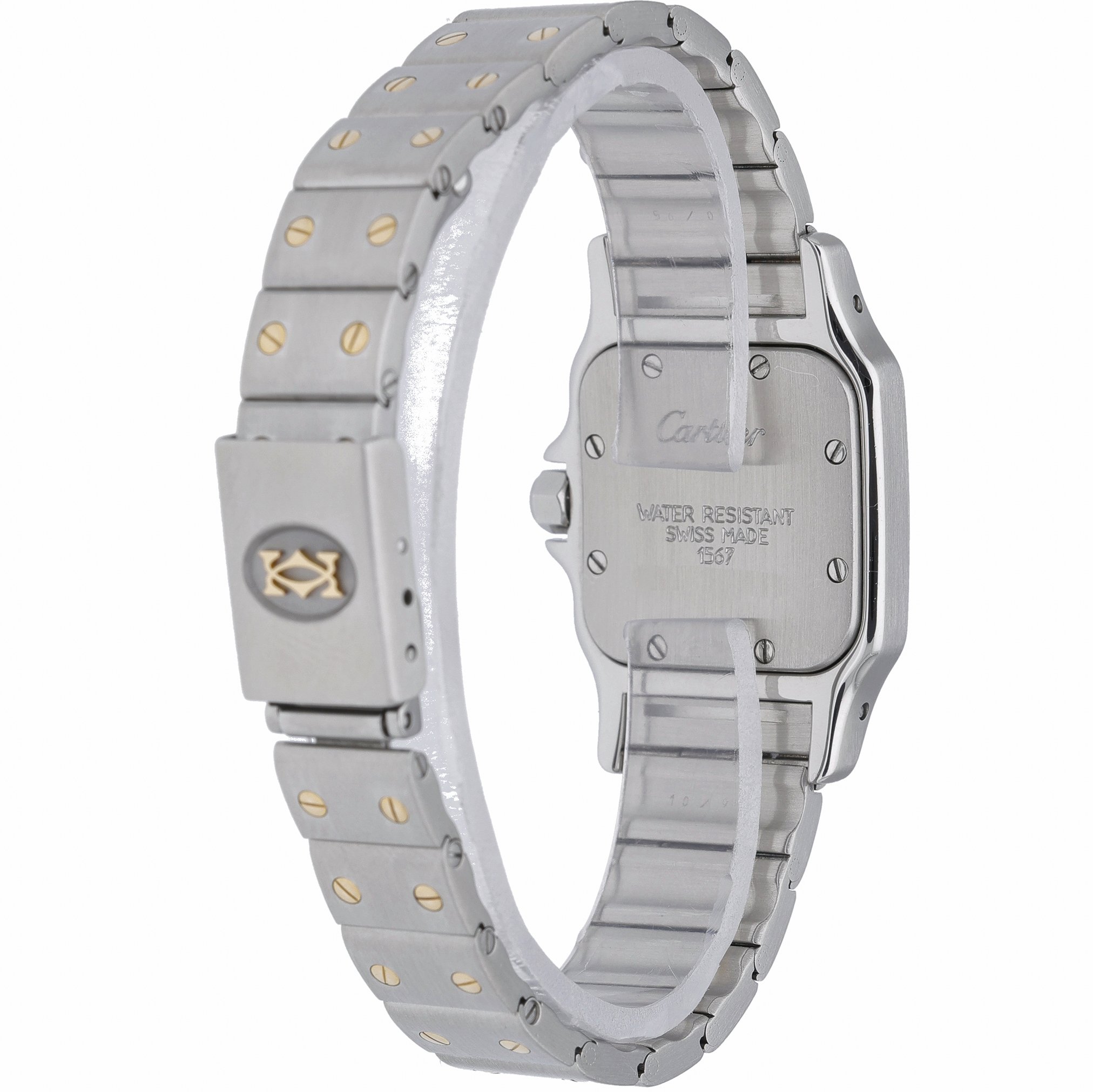Timeless and elegant, this ladies’ Cartier Santos (Model 1567, BQ Ref 53014) pairs iconic design with everyday versatility. Crafted in steel and yellow gold, the 24mm case features a plain bezel and a refined grey Roman dial protected by sapphire crystal. The reliable quartz movement ensures precise timekeeping, while the integrated two-tone bracelet with folding clasp offers a comfortable, secure fit. Produced in 1995 and presented in excellent condition, this piece comes complete with its original box and papers, underscoring its authenticity and provenance. Water resistance to 3ATM adds practical assurance for daily wear. Supplied with a 2 Year Warranty, 14 Day Return Policy, and Prompt Delivery, this Cartier Santos is a distinguished classic ready to wear.
