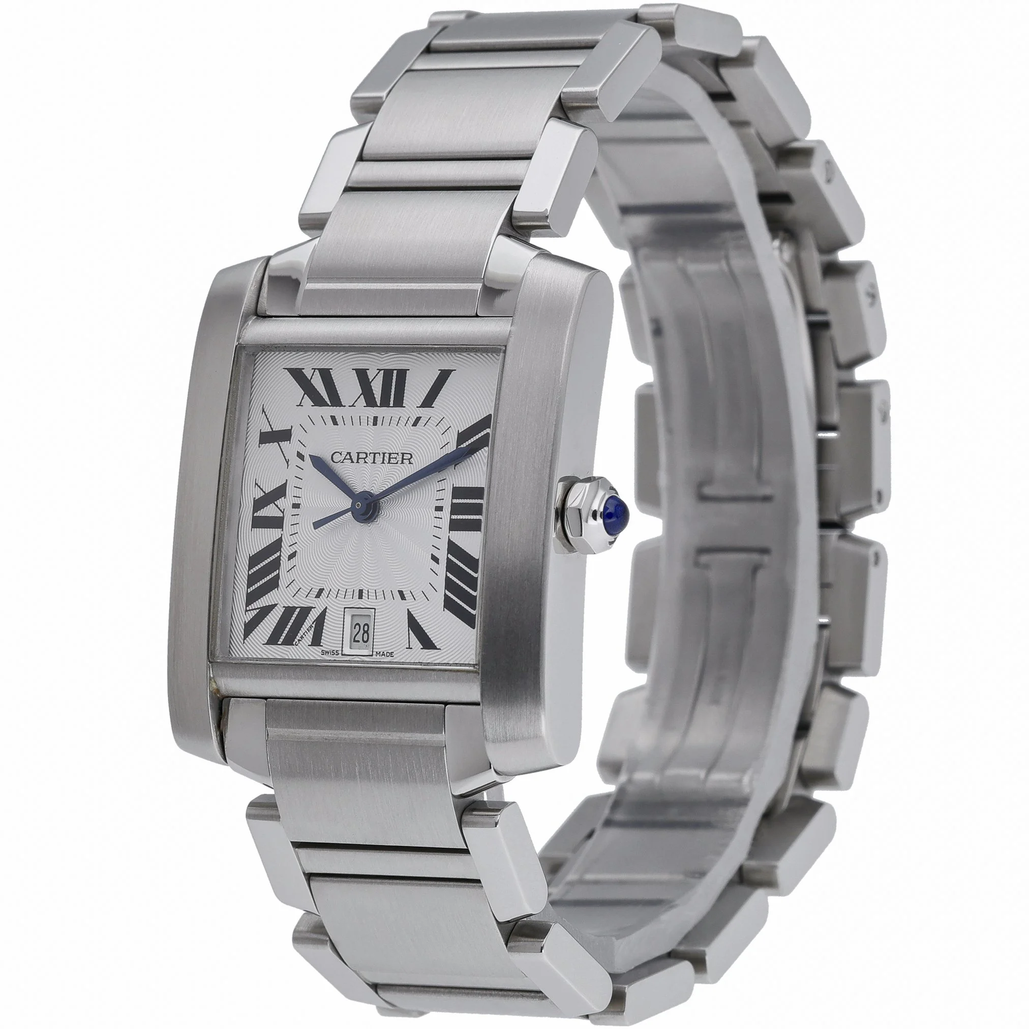 This Cartier Tank Francaise (Ref. 2302, BQ Ref 52631) blends the collection’s iconic lines with everyday versatility. The 28mm stainless steel case houses a silver Roman dial beneath scratch‑resistant sapphire crystal, powered by a reliable automatic movement. A matching steel bracelet with folding clasp completes the streamlined profile, while 30M water resistance adds confidence for daily wear. Dated 2012 and presented in excellent condition, this gents model is supplied with its original box and papers for complete peace of mind. Enjoy a 2 Year Warranty, a 14 Day Return Policy, and Prompt Delivery.