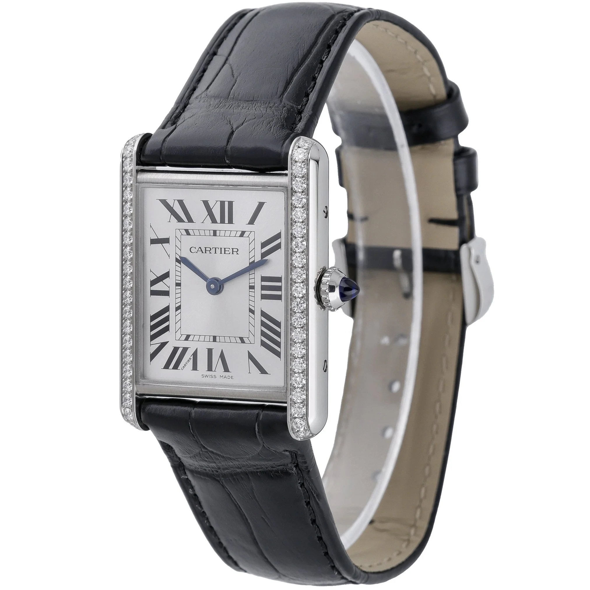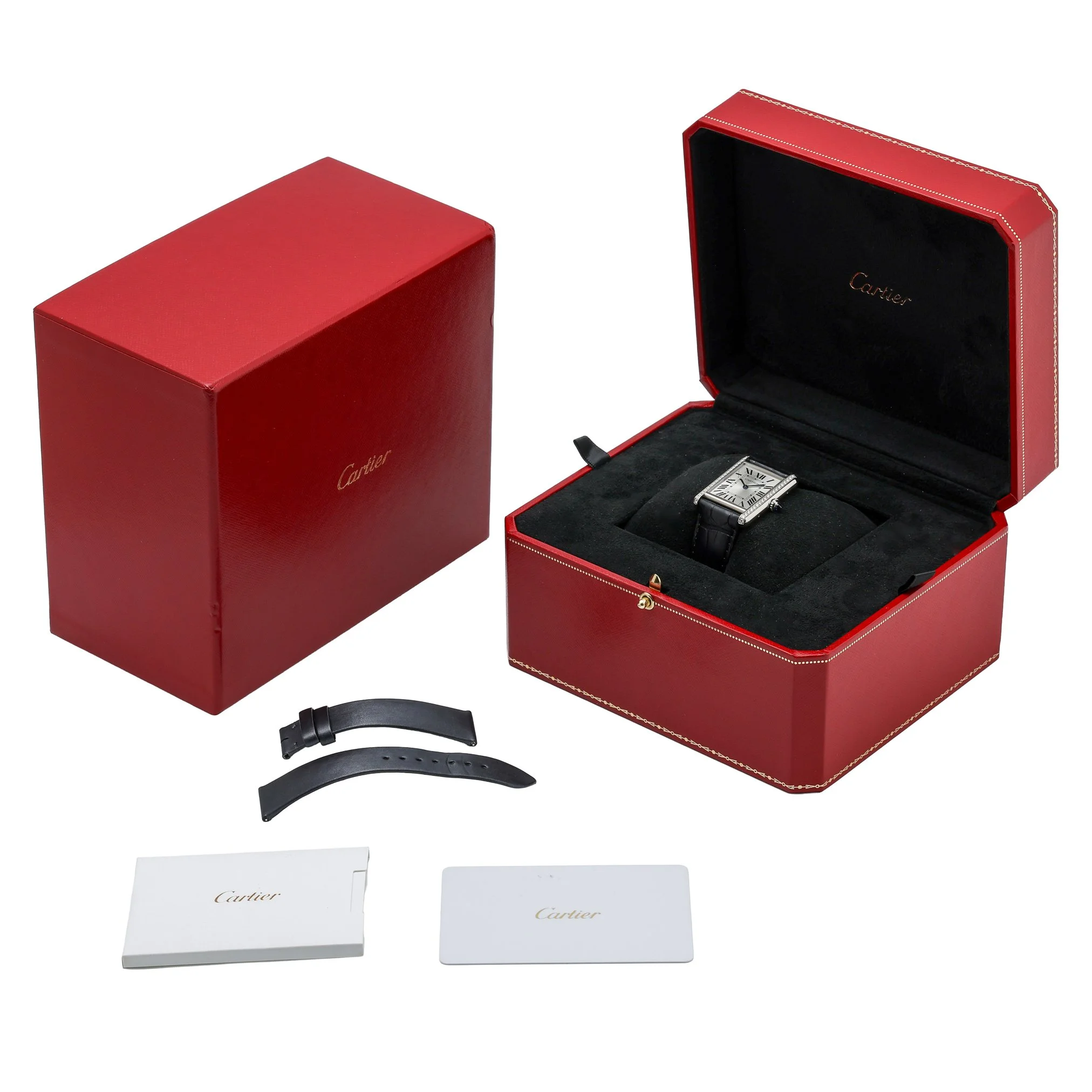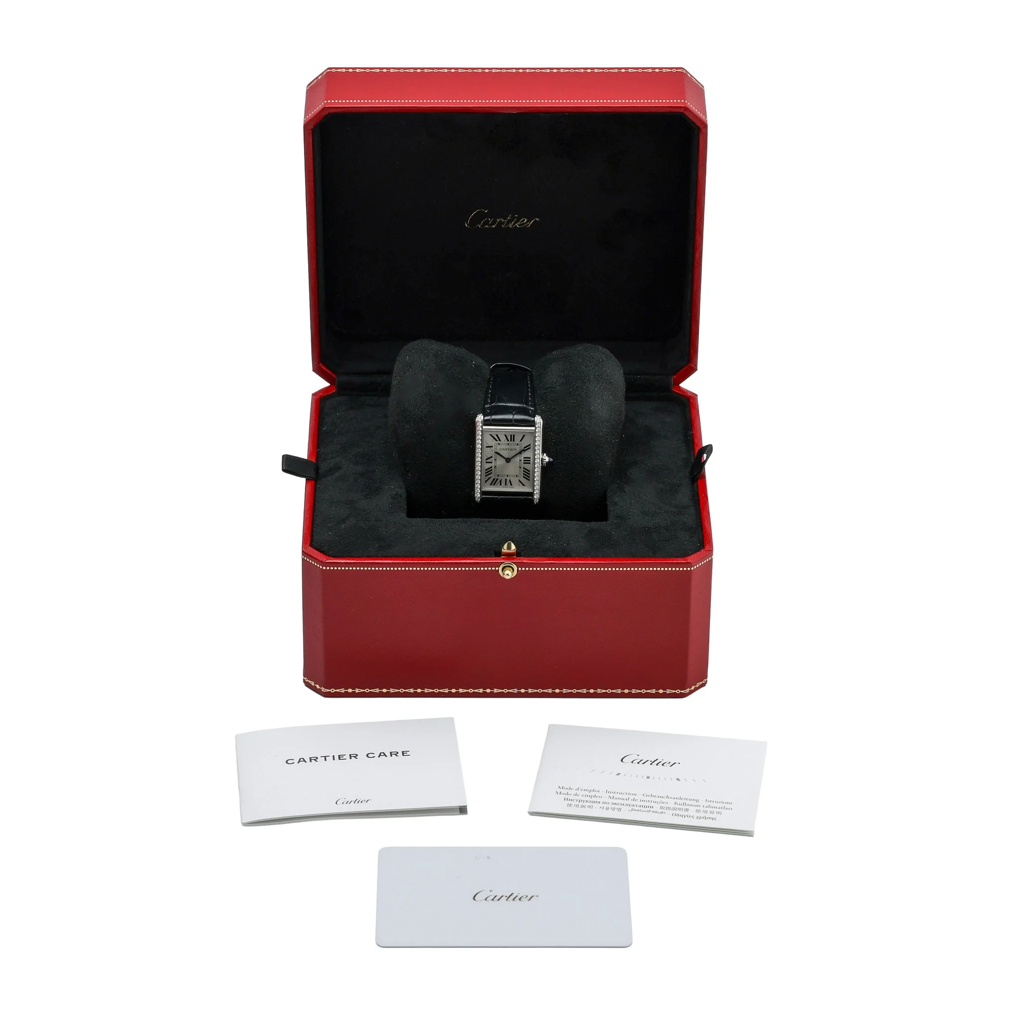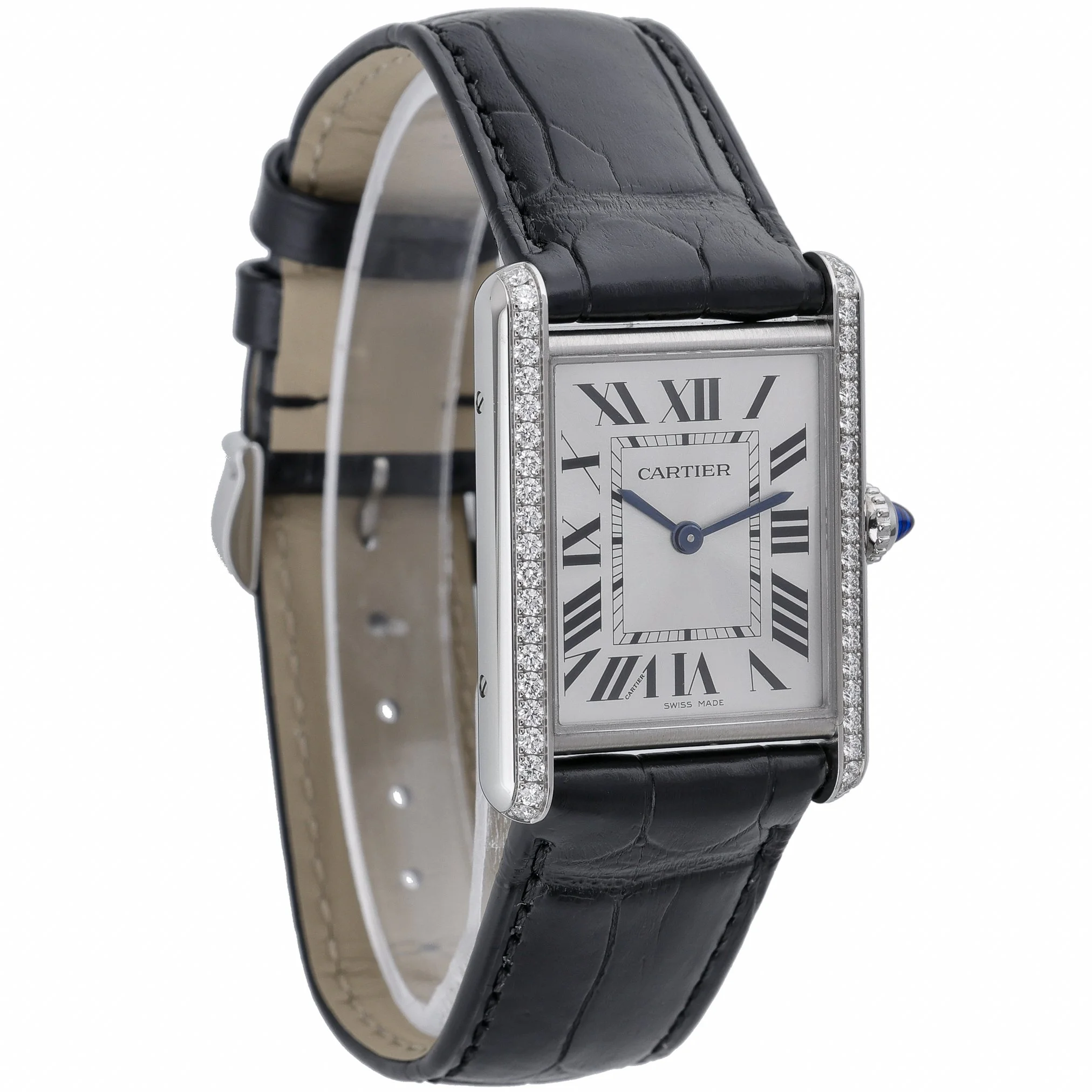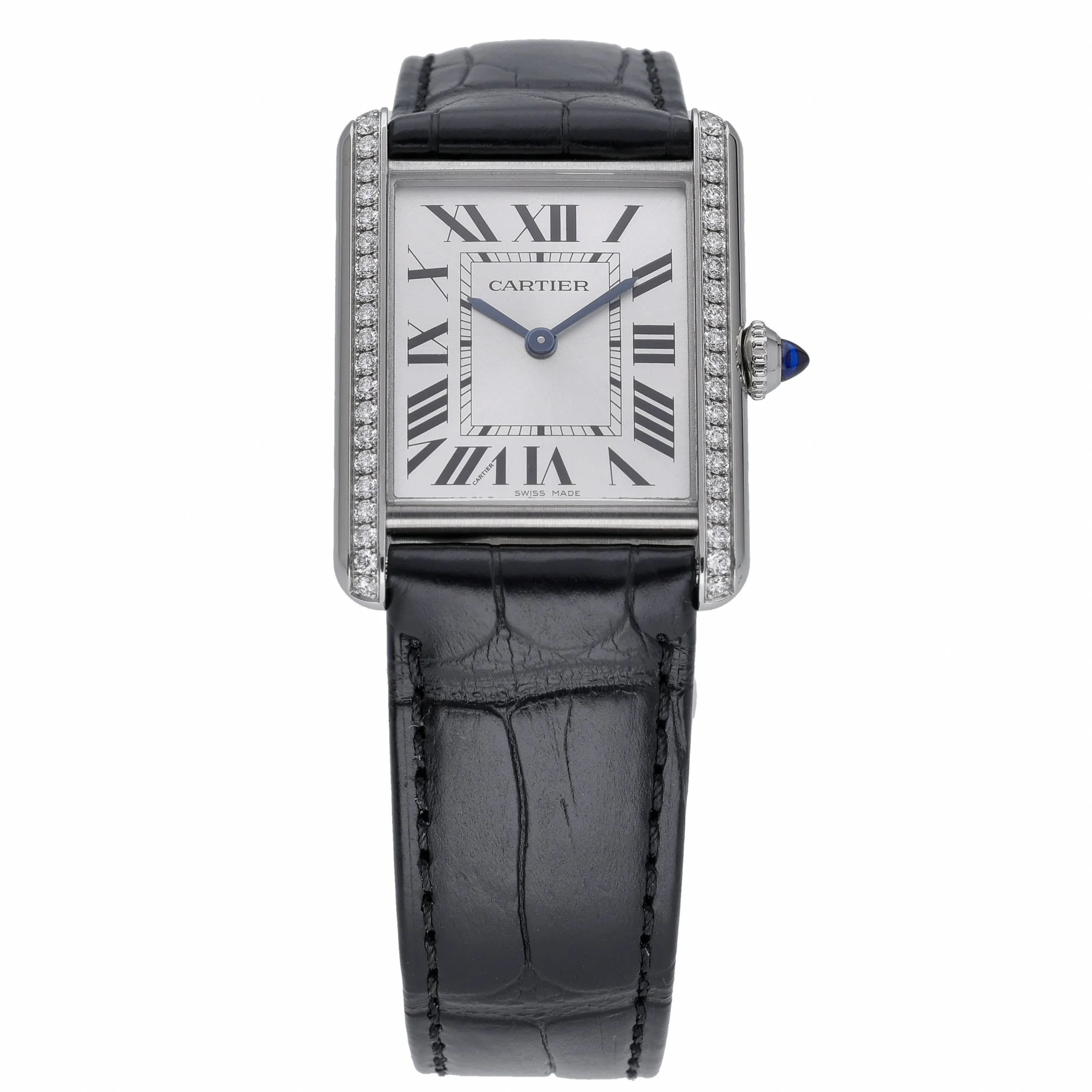 Timeless elegance defines the Cartier Tank Must W4TA0017 (BQ Ref. 53320). Crafted in steel, this ladies’ model pairs a silver Roman dial with durable sapphire crystal, framed by a refined diamond-set bezel for understated brilliance. The precise quartz movement offers effortless reliability, while the 33.7mm x 25.5mm case sits comfortably on a leather strap secured by a pin buckle. Water resistant to 30M, it blends daily wearability with iconic design. Manufactured in 2024 and presented in excellent condition, this watch is supplied with its Cartier box and original papers, and is covered by a 2 Year Warranty. Enjoy Prompt Delivery and shop with confidence under our 14 Day Return Policy.