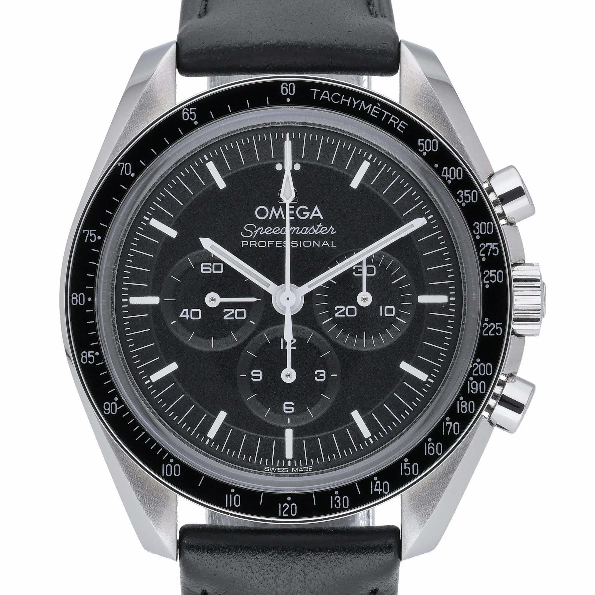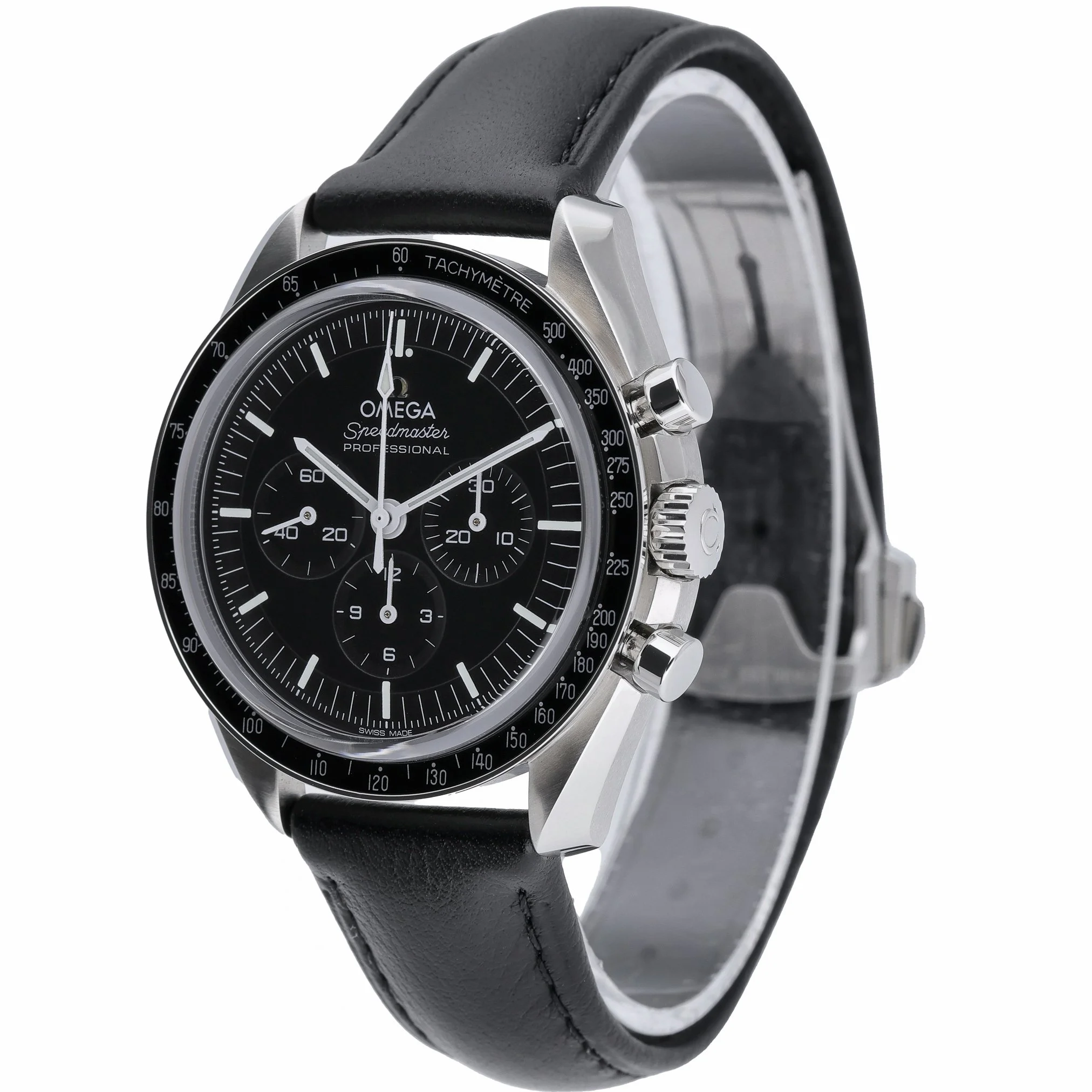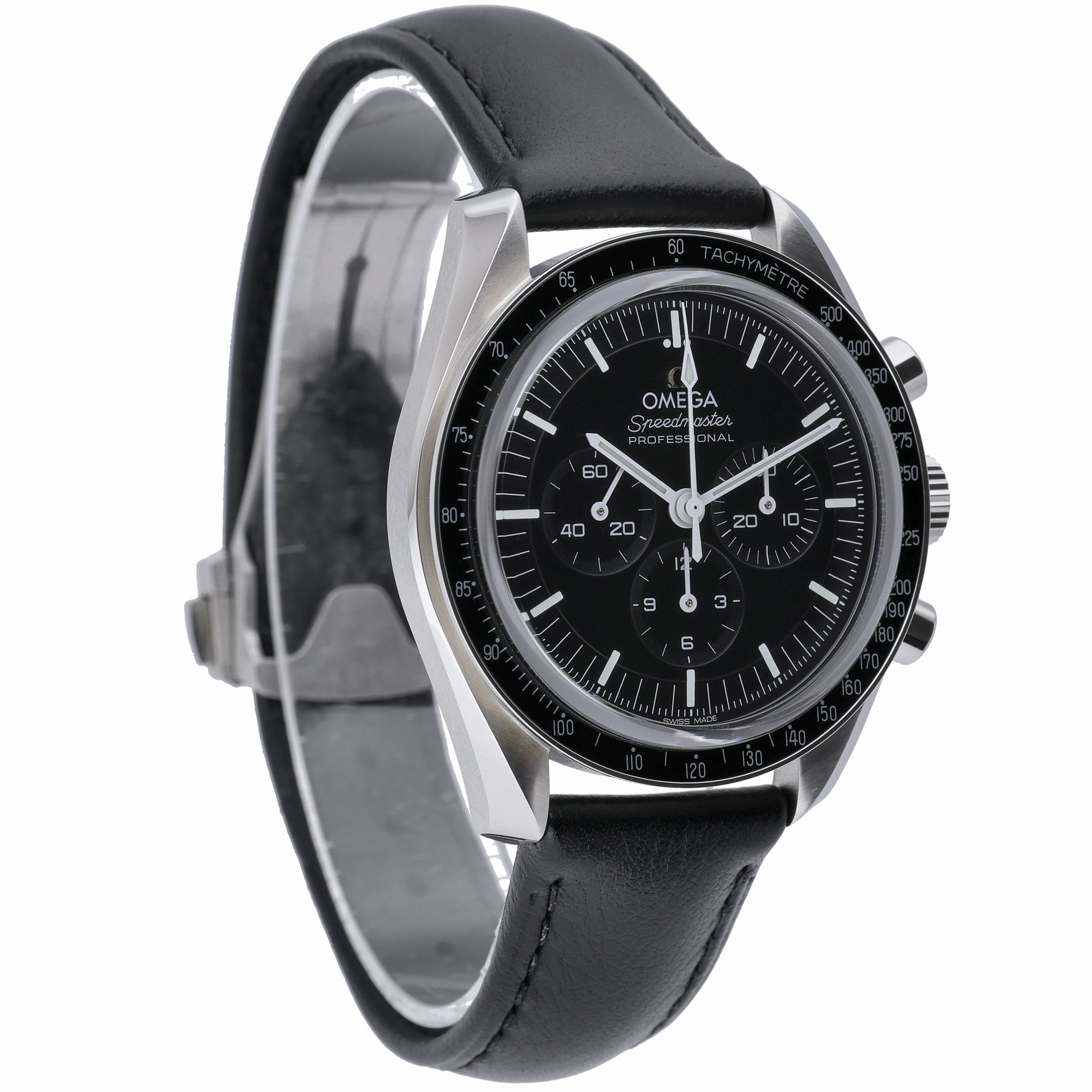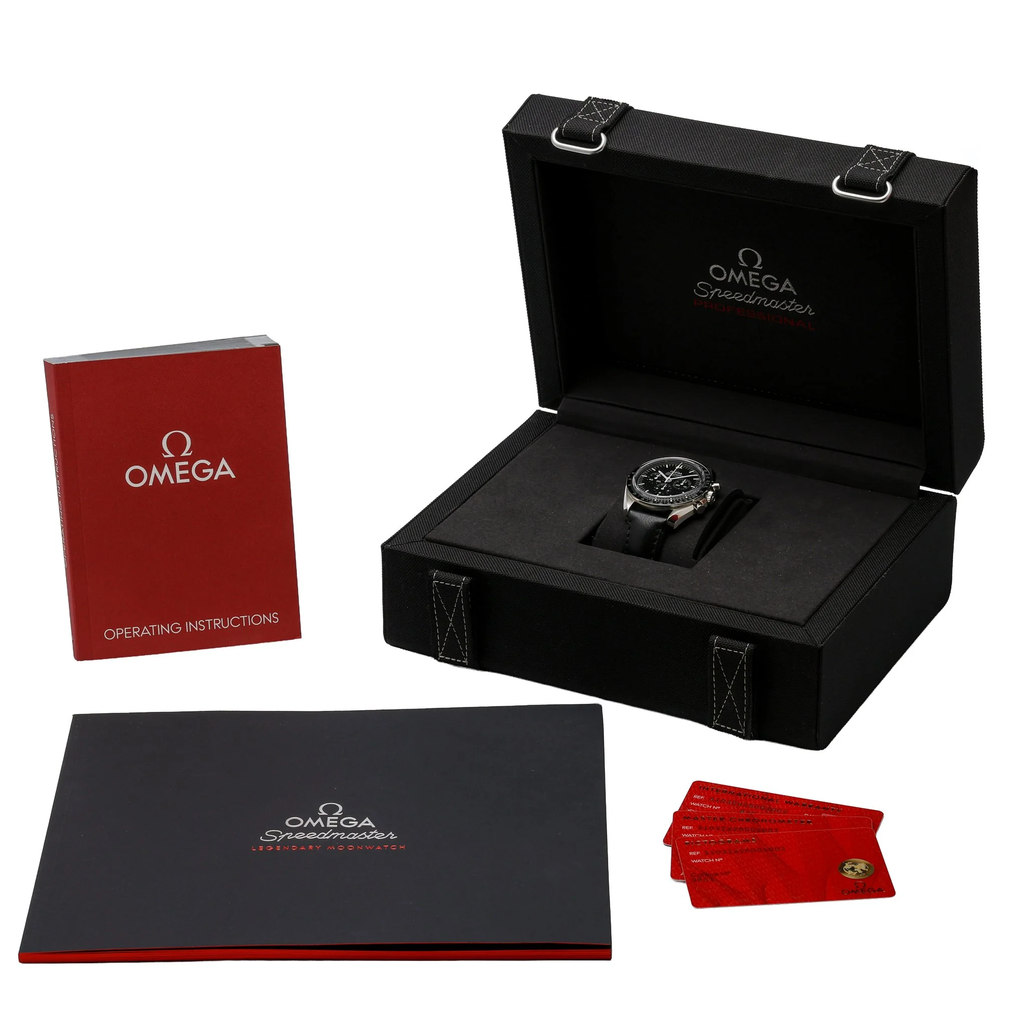 The Omega Speedmaster Moonwatch Professional (Model 310.30.42.50.01.002) is presented here in excellent 2023 condition, complete with box and original papers. Its 42mm stainless-steel case frames a classic black chronograph dial protected by sapphire crystal, paired with a tachymetric scale bezel for precise speed measurements. Powered by a manual-wind movement, this iconic Moonwatch offers the authentic hand-wound experience that defined the chronograph worn on the lunar surface. A robust steel bracelet with folding clasp ensures secure, comfortable wear, while 5 ATM water resistance supports everyday versatility. Supplied with a 2-year warranty, 14-day return policy, and next day delivery, this is a standout example of a modern legend. BQ Ref: 53312.
