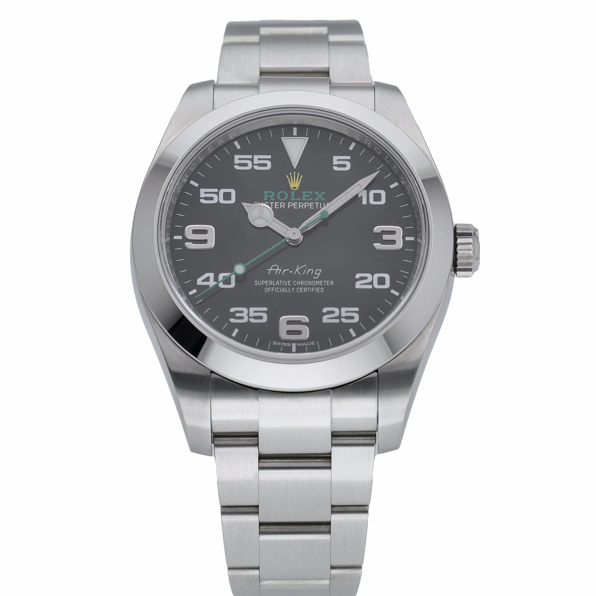 Experience the Rolex Air‑King Ref. 116900, a 2018 piece in excellent condition, crafted in robust Oystersteel with a 40mm case, domed bezel, and black Arabic dial beneath scratch‑resistant sapphire crystal. Its automatic movement delivers dependable precision, complemented by 100M water resistance and an Oyster bracelet with secure folding clasp for everyday versatility. This example (BQ Ref 53253) is supplied as a complete set with original box, papers, and white tag. Enjoy peace of mind with our 2 Year Warranty and 14 Day Return Policy, plus the convenience of Prompt Delivery.
