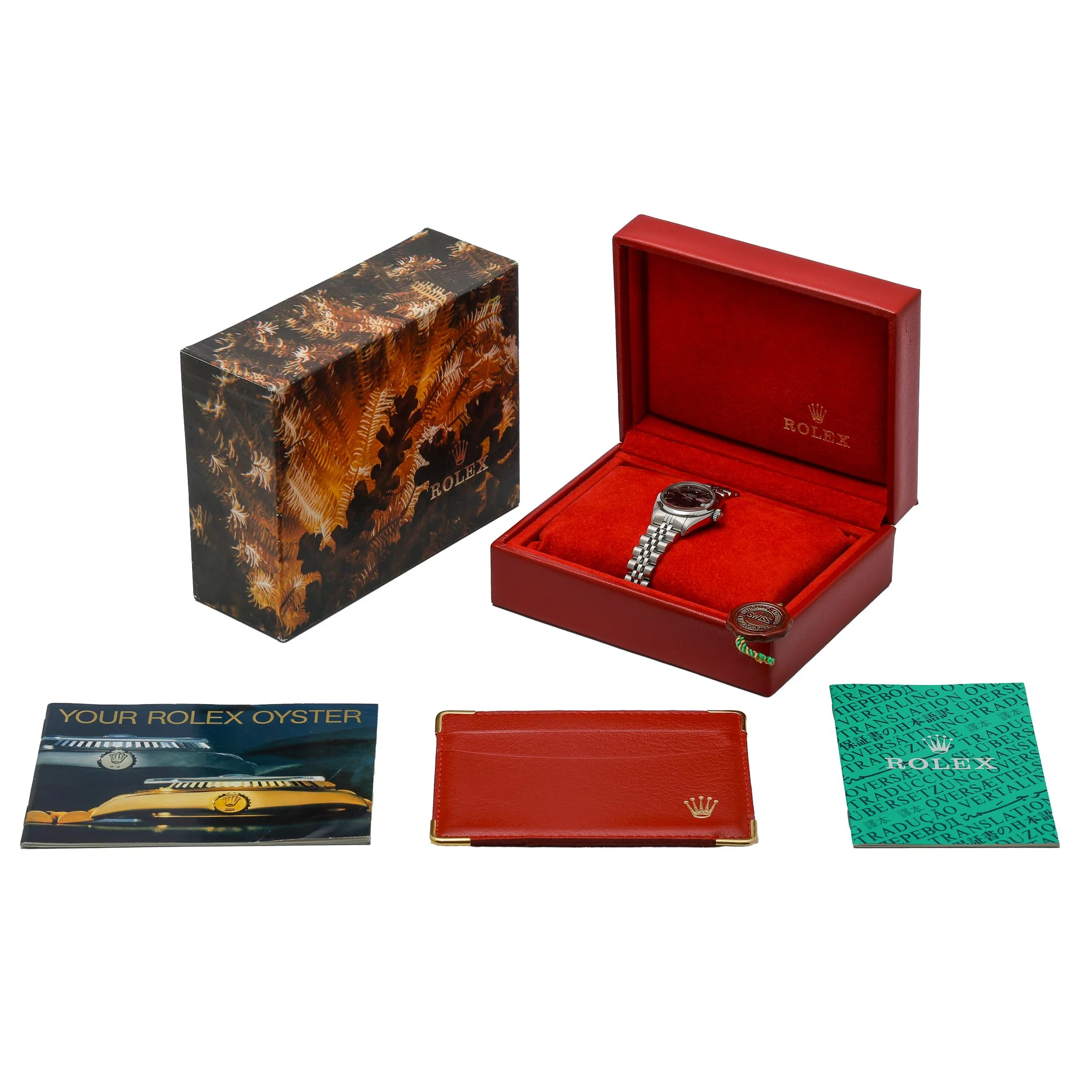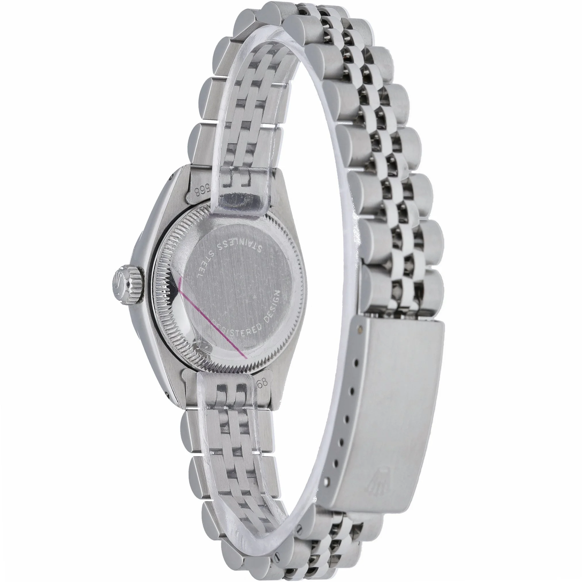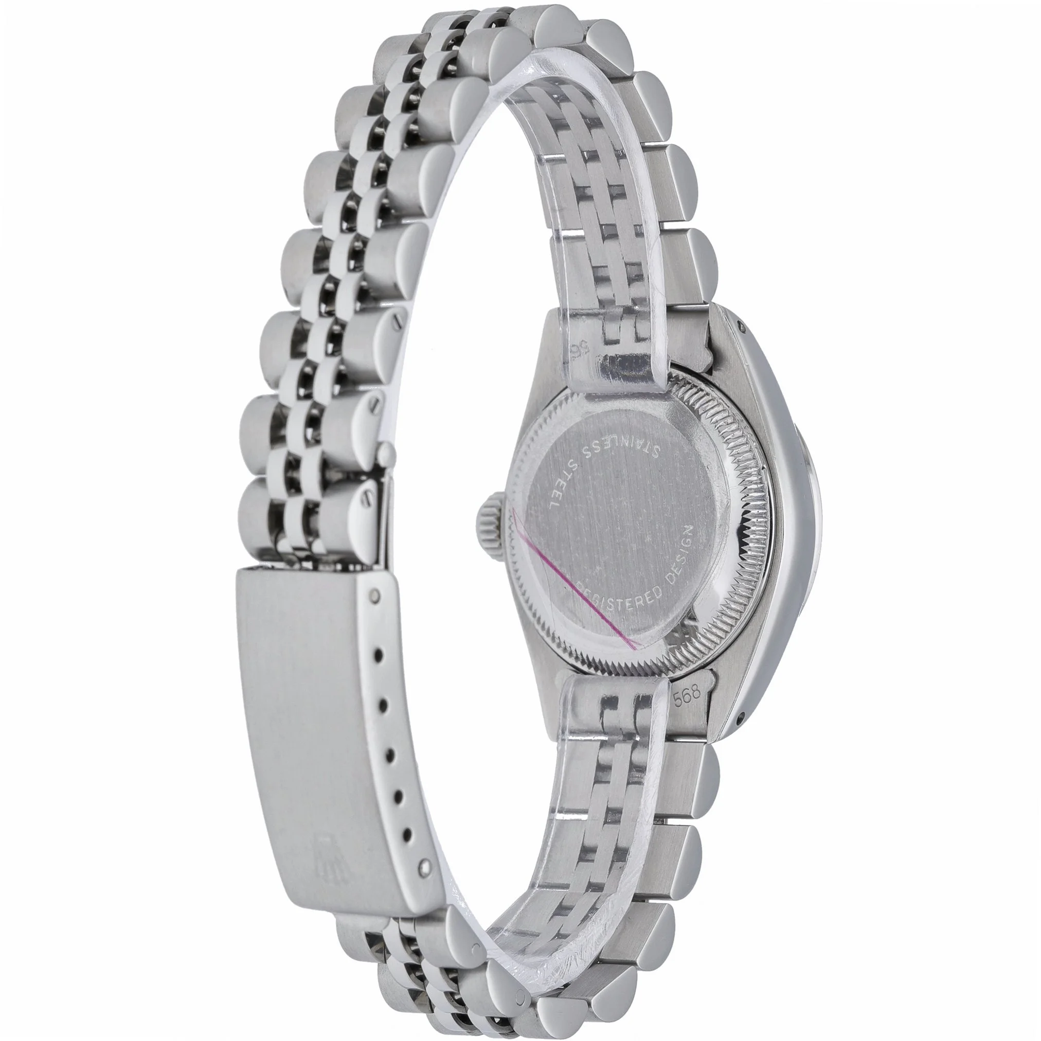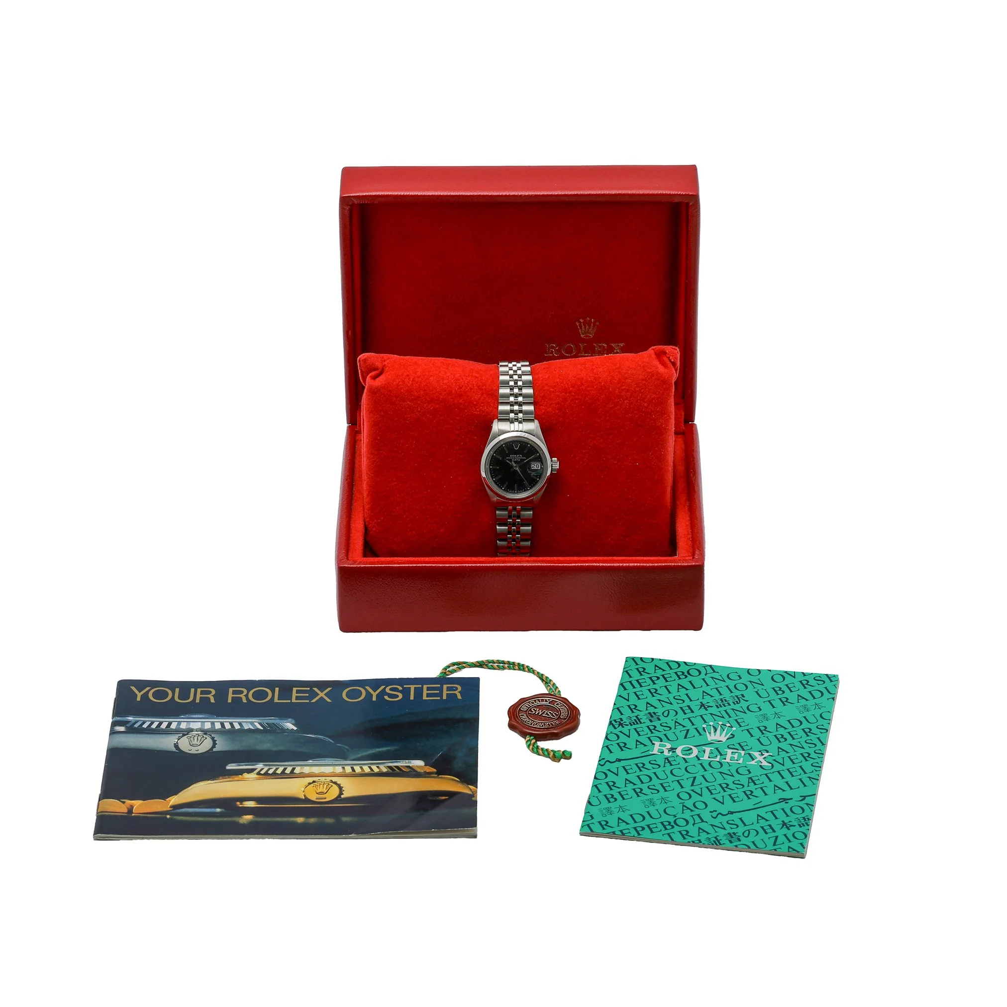 Timeless and refined, this vintage Rolex Date (ref. 6916, BQ Ref 51836) pairs a 26mm stainless steel case and domed bezel with a classic black baton dial beneath scratch-resistant sapphire crystal. The steel Jubilee bracelet and secure folding clasp enhance comfort and elegance, while tasteful diamond-set detailing adds a subtle touch of luxury. Powered by an automatic movement and water resistant to 100M, it’s a versatile everyday companion from 1979, offered in good condition. Supplied with its box, this piece includes next day delivery, a 14-day return policy, and the assurance of a 2-year warranty.