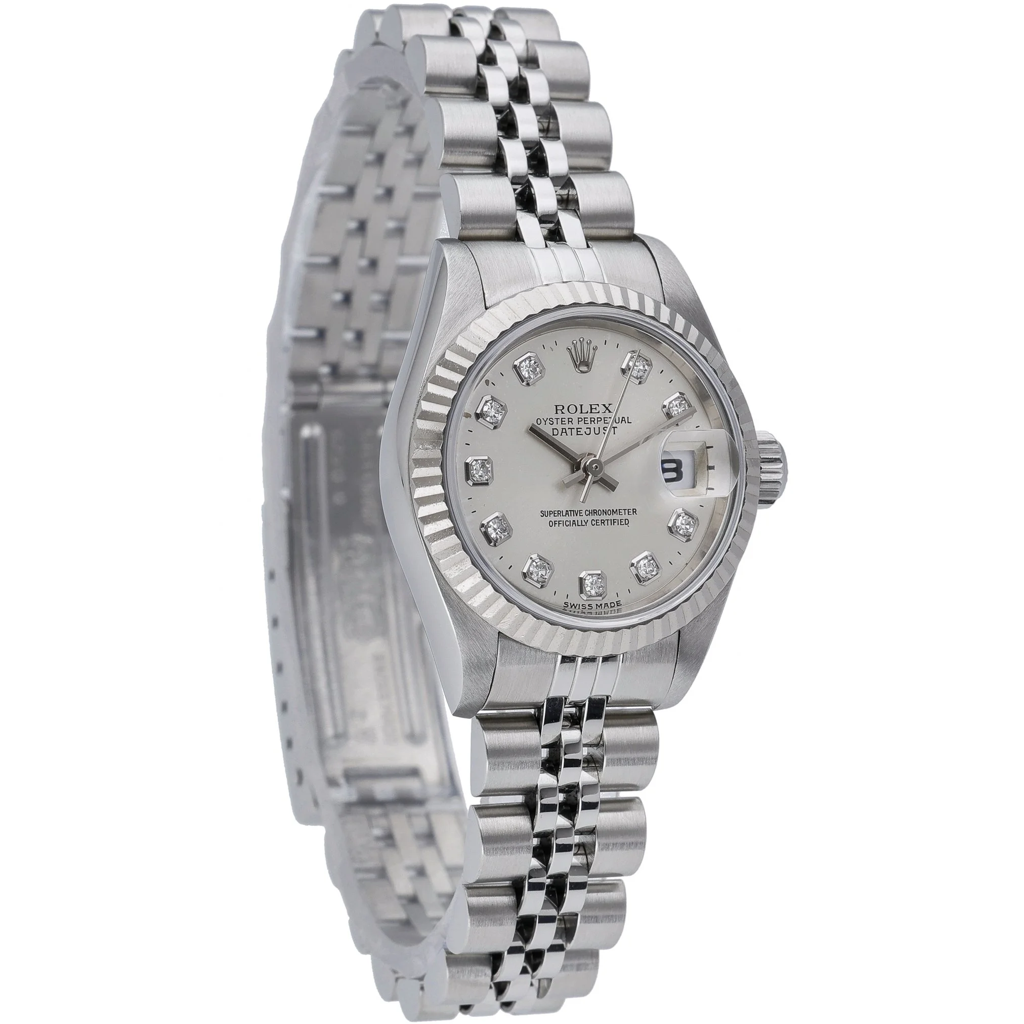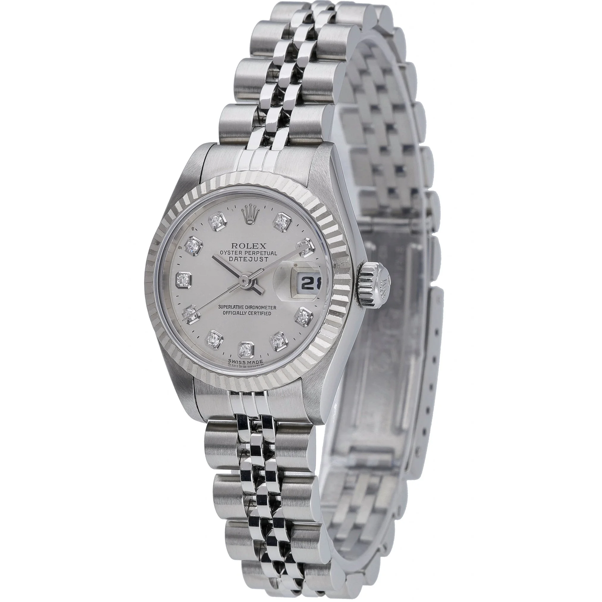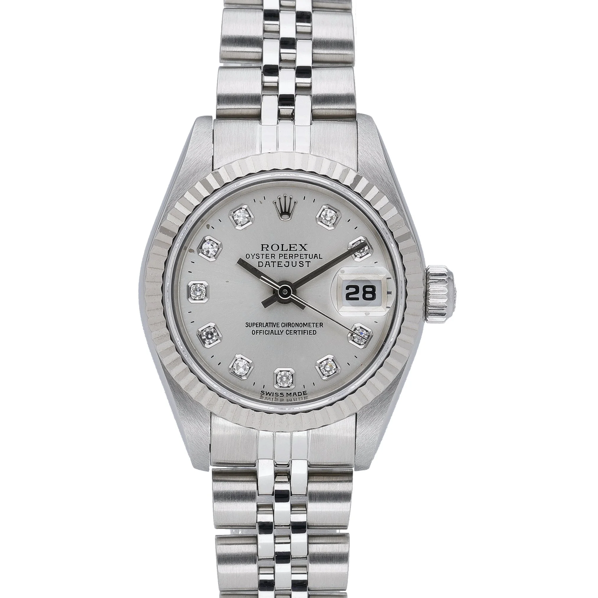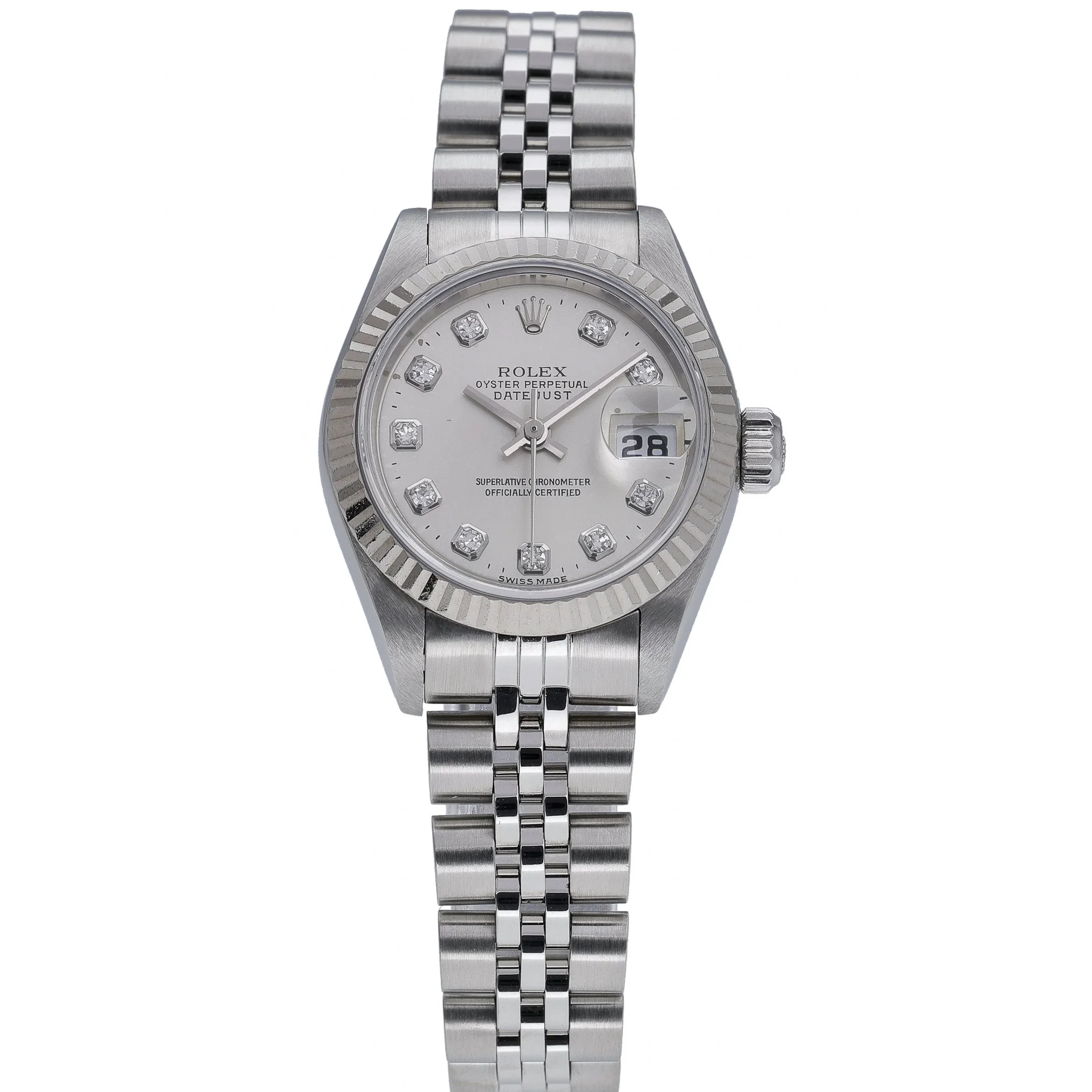 Experience timeless elegance with this ladies’ Rolex Datejust (ref. 69174), a 26mm classic crafted in steel and white gold with the signature fluted bezel. Presented in excellent condition and powered by a reliable automatic movement, it showcases a striking blue baton dial beneath scratch-resistant sapphire crystal and offers 100M water resistance. The steel Jubilee bracelet with folding clasp delivers refined comfort for daily wear. Year of manufacture: 1997. Supplied with its box and original green tag, alongside next day delivery for added convenience. BQ Ref 52826. Backed by a 2-year warranty and a 14-day return policy for complete peace of mind.