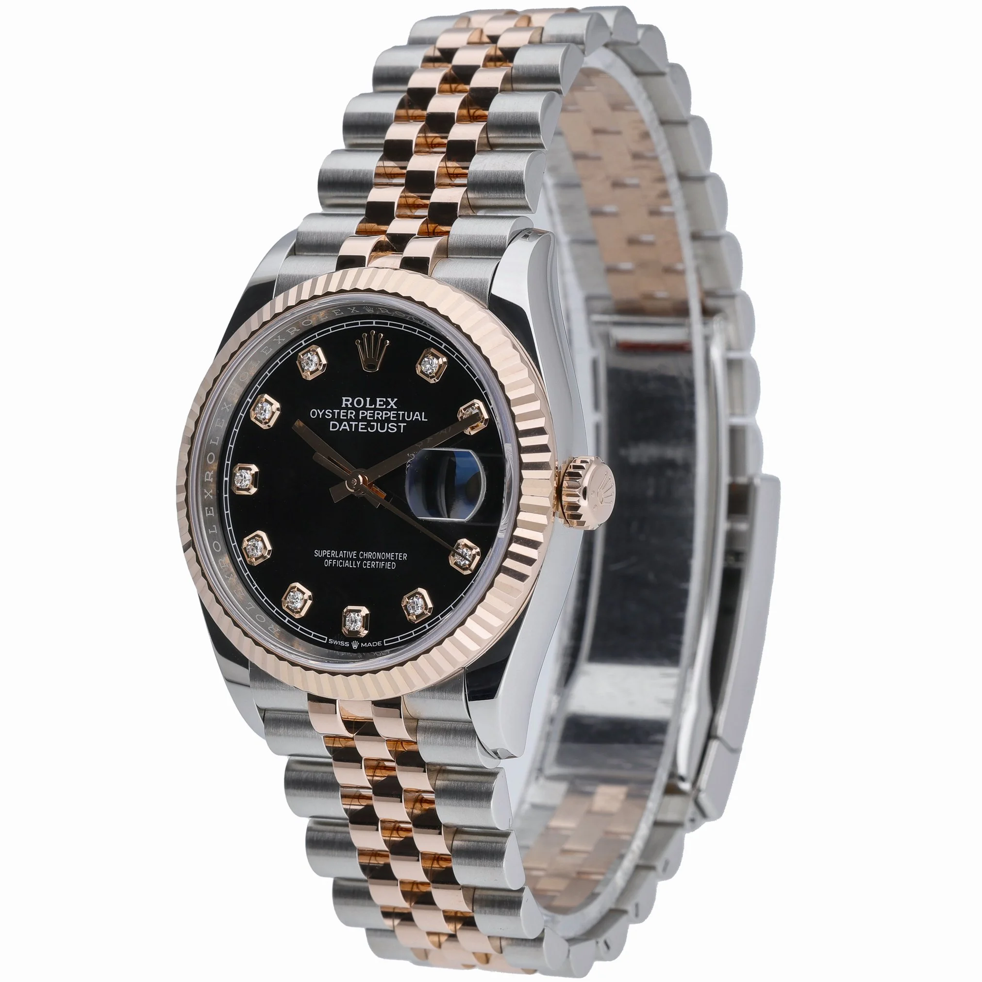 Elevate your collection with this 2021 Rolex Datejust 36 (Model 126231), presented in steel and rose gold and in excellent condition. The classic 36mm case features a fluted bezel and a black dial protected by scratch-resistant sapphire crystal. Powered by an automatic movement and water resistant to 100M, it pairs everyday reliability with timeless elegance. The steel and rose gold Jubilee bracelet secures with an Oysterclasp for refined comfort. Supplied with its original box, papers, and white tag, this gents’ Datejust is offered under our 2 Year Warranty, with a 14 Day Return Policy and Prompt Delivery for your convenience. BQ Ref: 53198.