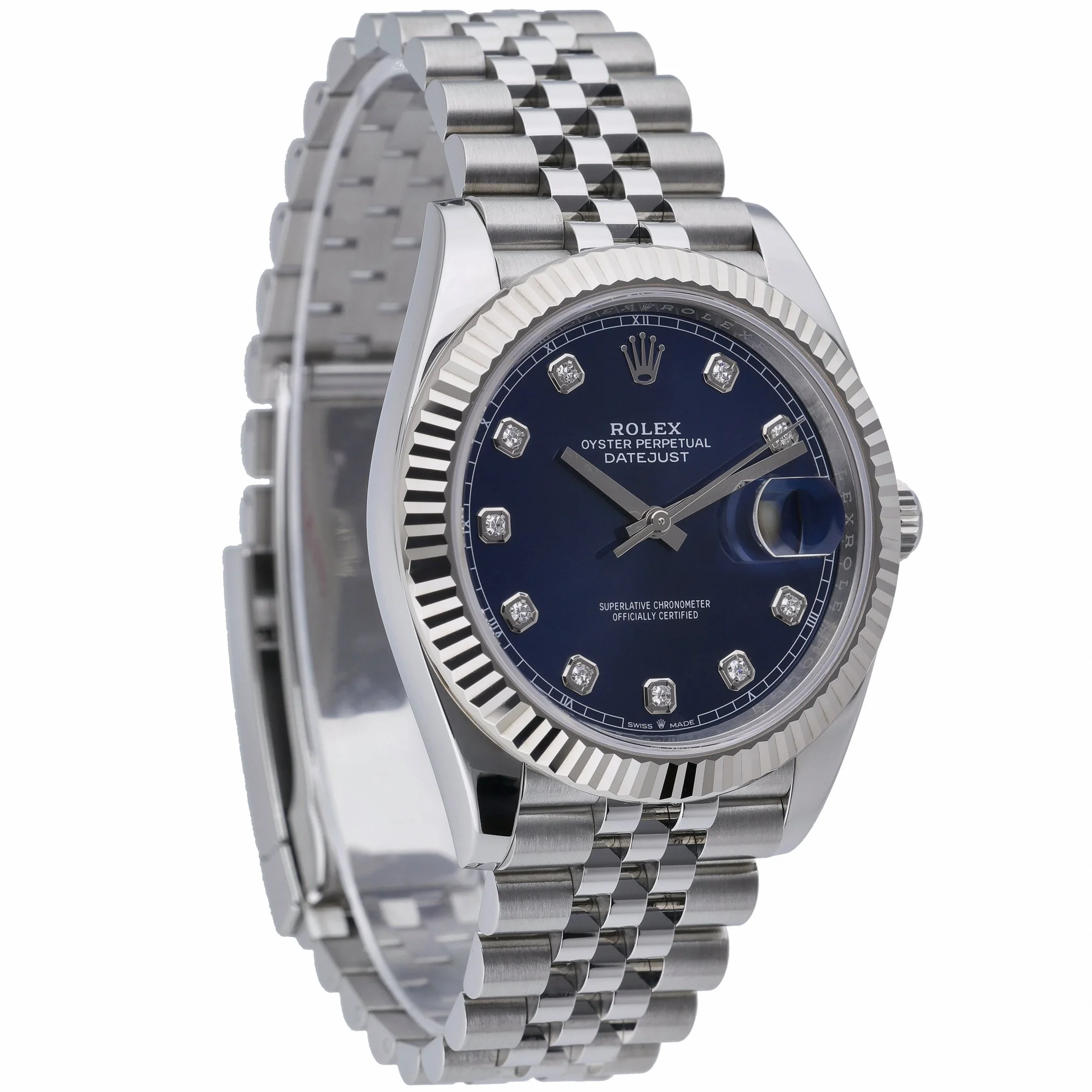 The Rolex Datejust 41 (ref. 126334) is presented in excellent condition, manufactured in 2025 and featuring a 41mm steel and white gold case with a classic fluted bezel and striking blue dial. Powered by an automatic movement and protected by sapphire crystal, it delivers dependable performance and 100m water resistance for confident daily wear. The watch is paired with a Jubilee bracelet in Oystersteel and secured by an Oysterclasp for refined comfort and durability. Supplied with original box, papers, and white tag (BQ Ref 53322). Covered by Rolex’s 5-year manufacturer’s warranty from the 2025 date of manufacture. Enjoy Prompt Delivery and a 14 Day Return Policy.