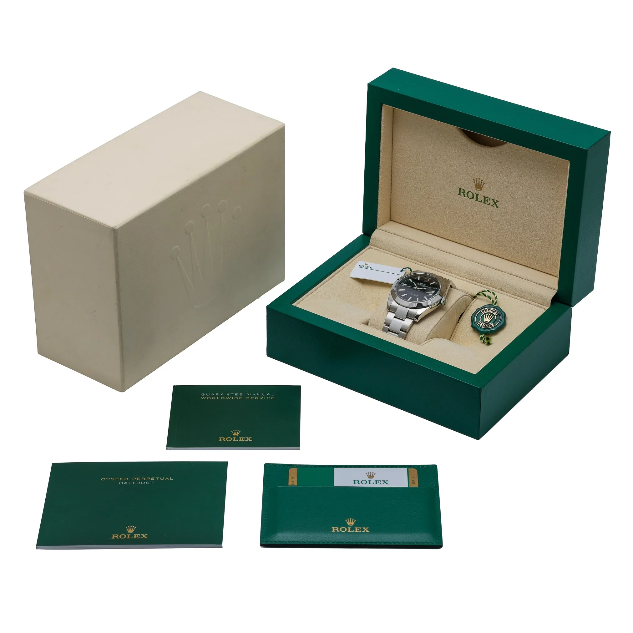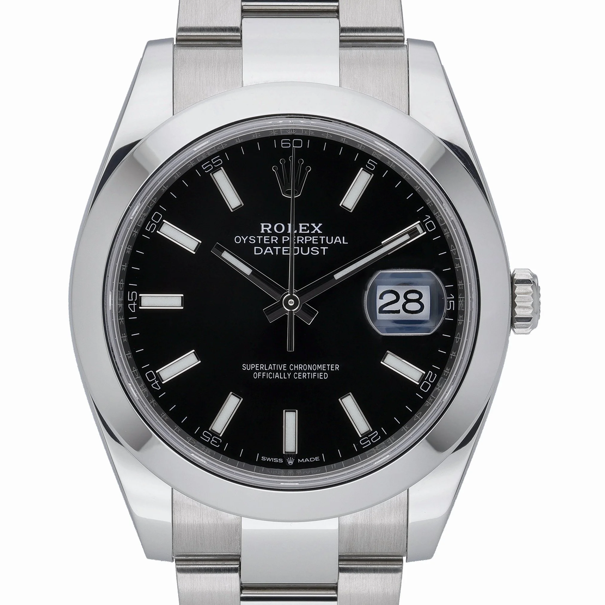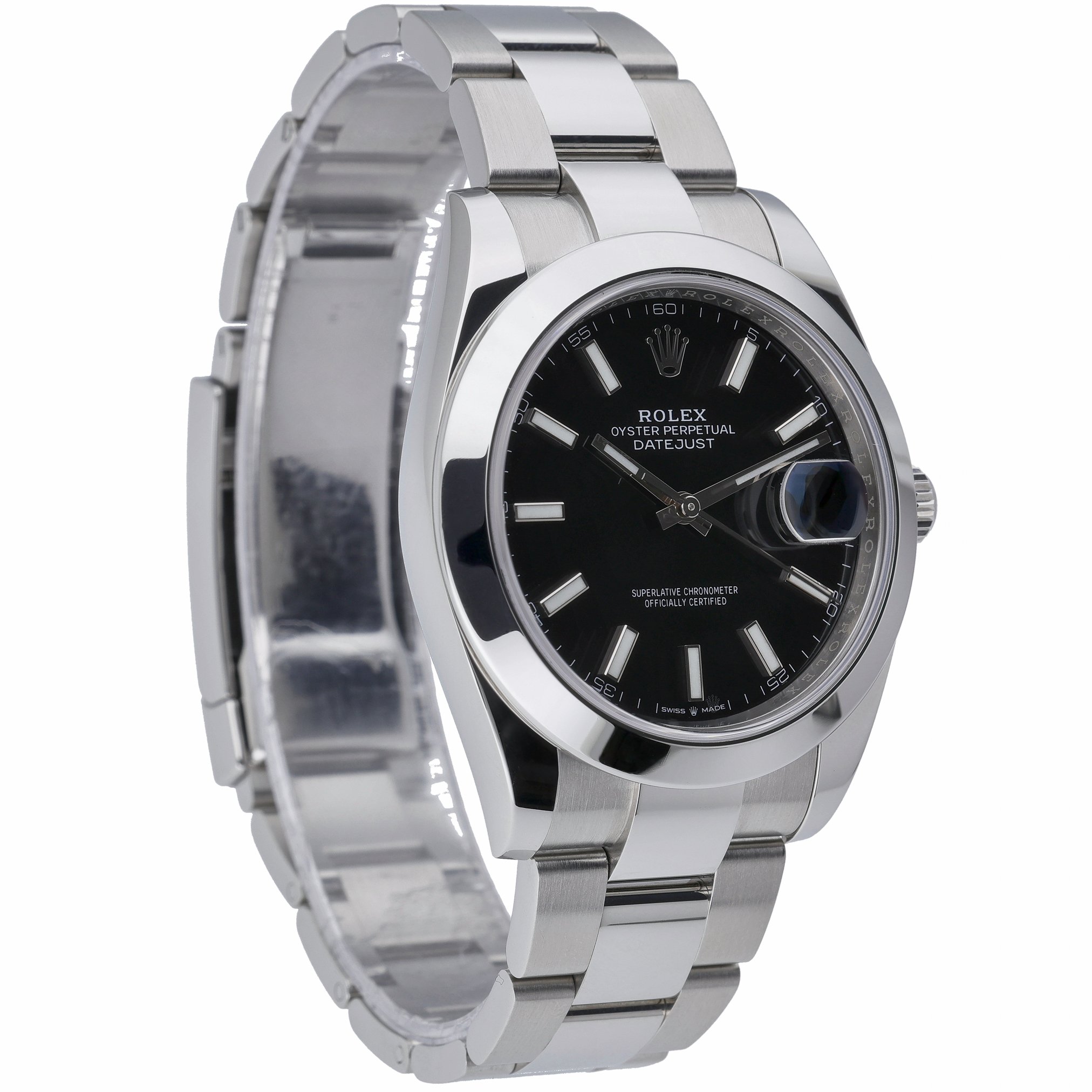 Elevate your collection with this Rolex Datejust 41, reference 126300, a 2019 example presented in excellent condition. Crafted in robust Oystersteel with a 41mm case and smooth bezel, it features a sleek black baton dial safeguarded by scratch‑resistant sapphire crystal. The automatic movement delivers reliable precision, while the Oyster bracelet and Oysterclasp offer secure, everyday comfort. Water resistant to 100M, this versatile gents’ model seamlessly blends refinement and performance. Supplied with Rolex box, original papers, and white tag, BQ Ref 52855. Includes a 2 Year Warranty, plus our 14 Day Return Policy and Prompt Delivery for a seamless purchase experience.