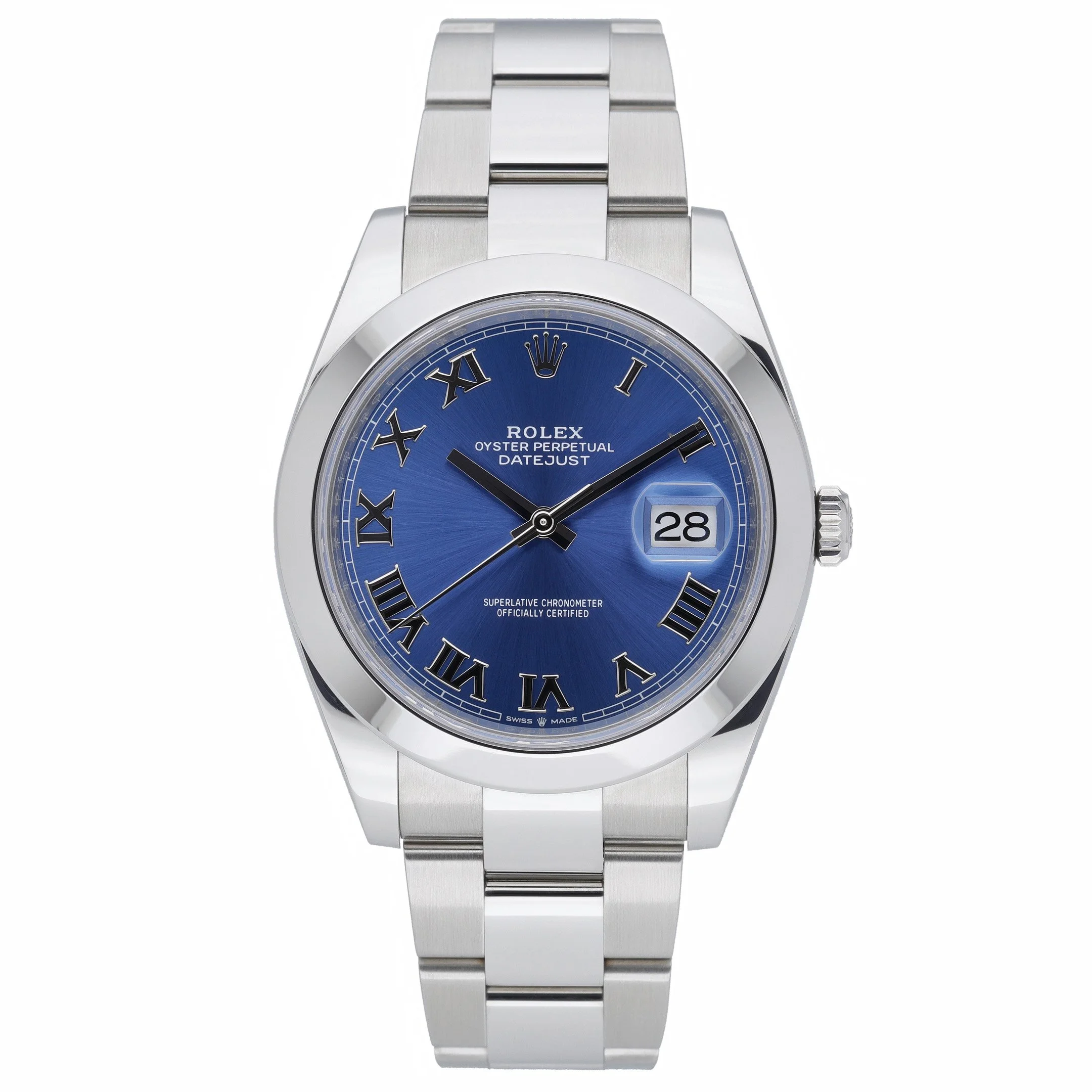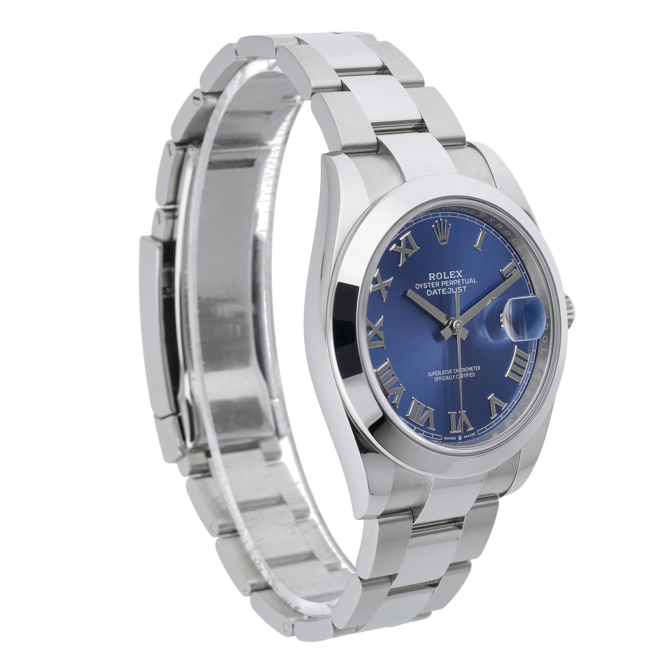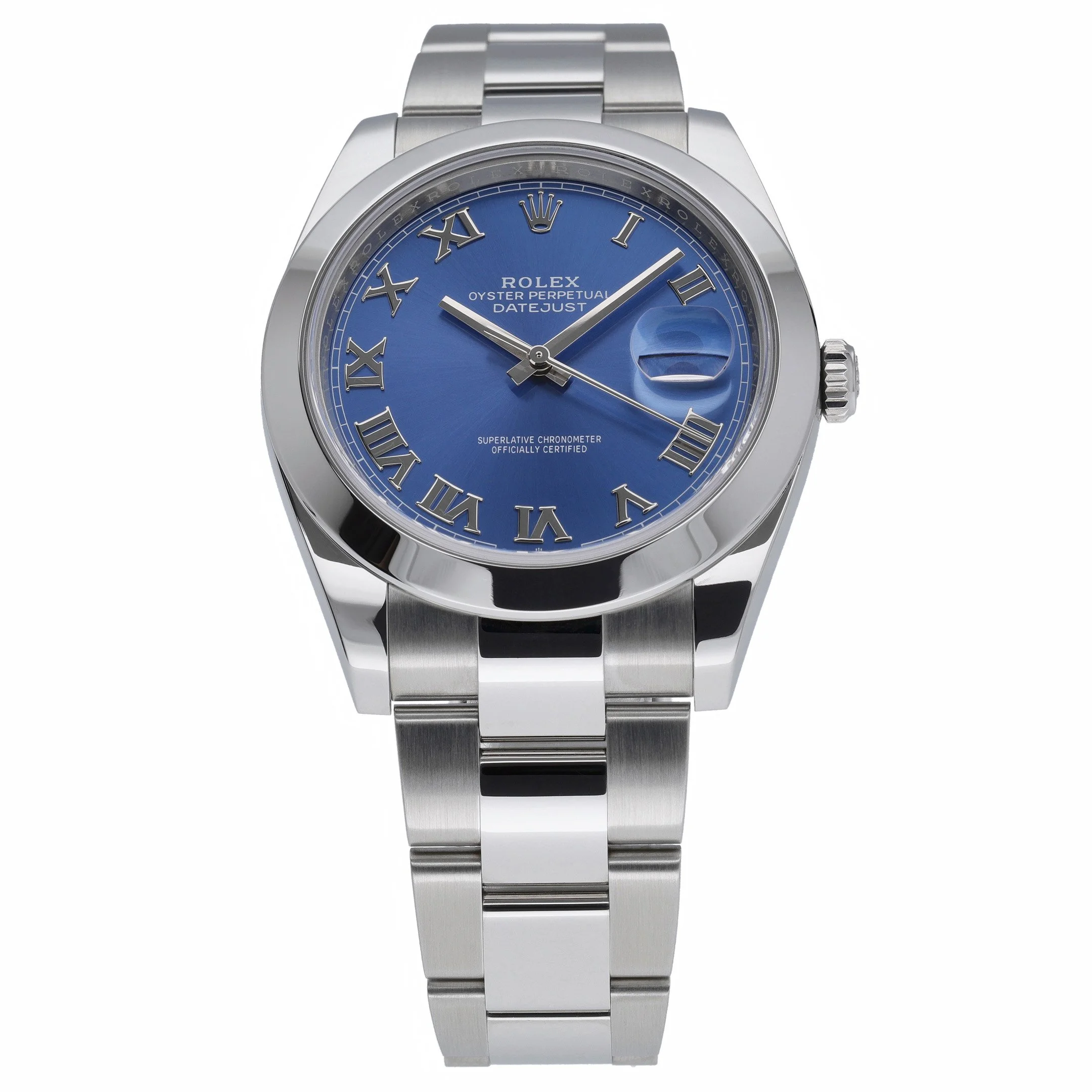 Discover the Rolex Datejust 41 (ref. 126300), a 2024 example in excellent condition, presented in robust Oystersteel with a 41mm case, smooth bezel, and classic Oyster bracelet secured by a folding clasp. Its striking blue Roman dial sits beneath a sapphire crystal, while an automatic movement delivers dependable precision. Water resistant to 100M, this versatile timepiece balances everyday practicality with timeless elegance. Supplied as a complete set with original box, original papers, and the original white tag, it also benefits from the Rolex 5-year manufacturer’s warranty running from its 2024 date of manufacture. Enjoy peace of mind with our 14-day return policy and fast, next day delivery. BQ Ref: 52642.