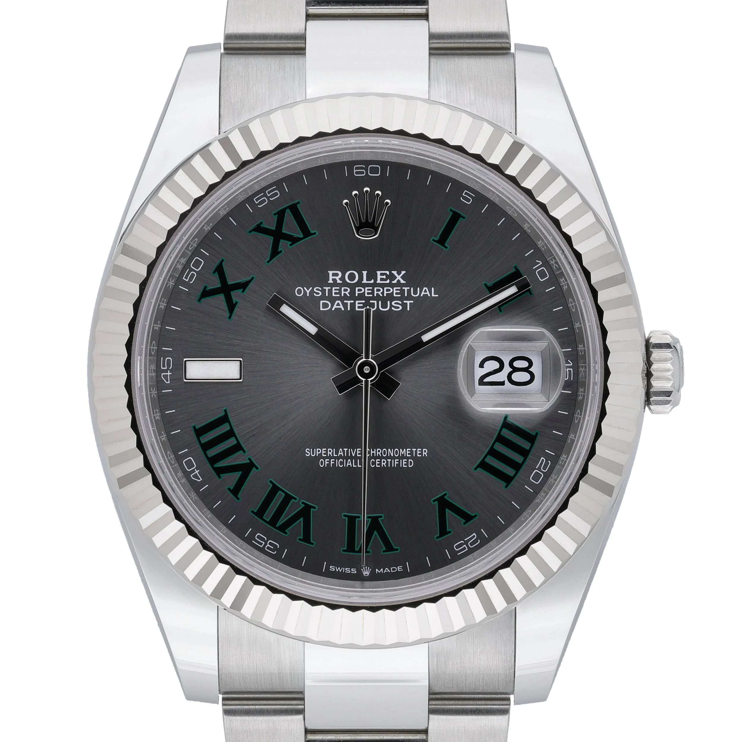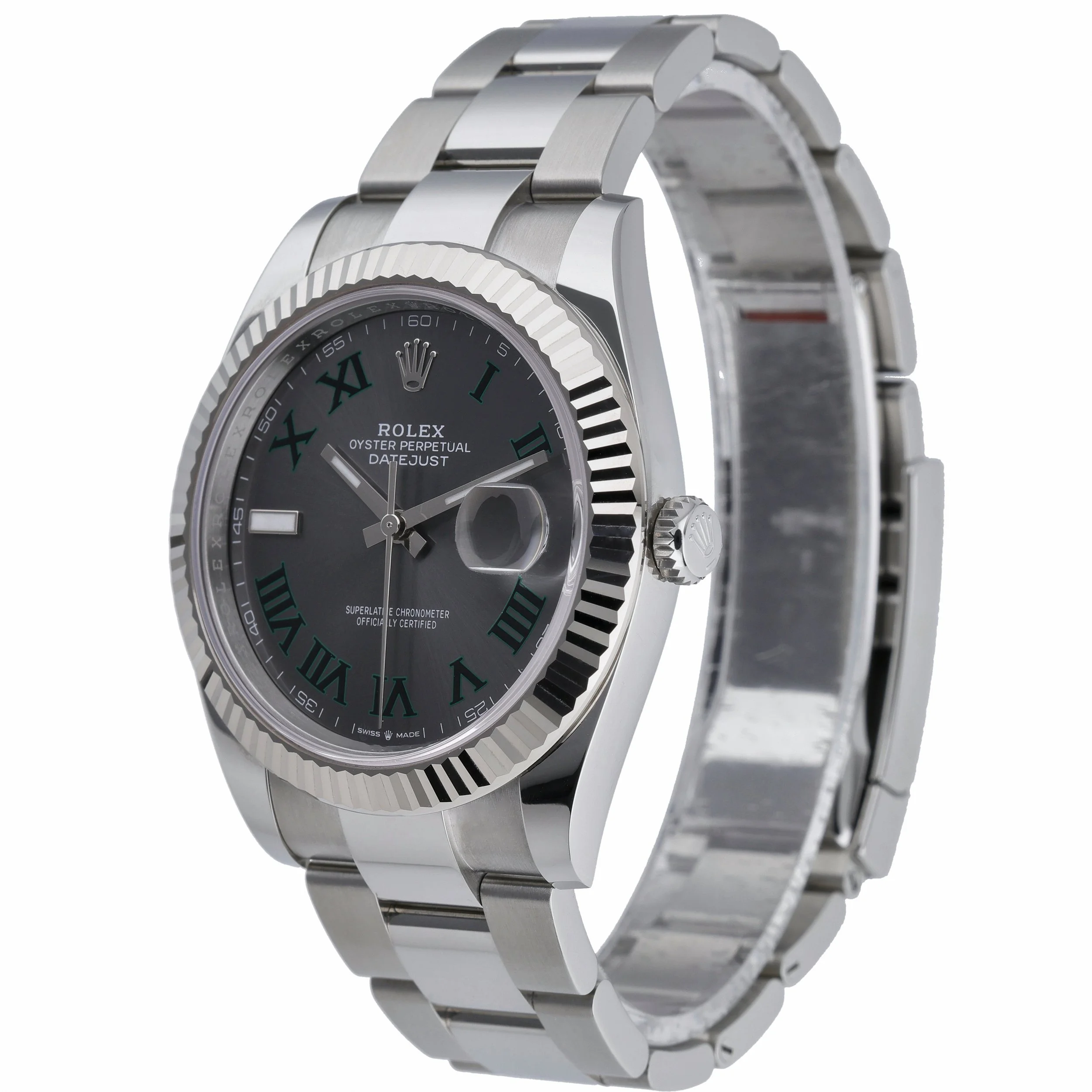 Discover the Rolex Datejust 41, reference 126334—new/unworn and complete. Its 41mm Oyster case pairs robust steel with a white gold fluted bezel, framing a slate dial with Roman numerals beneath scratch‑resistant sapphire crystal. An automatic Rolex movement ensures dependable precision, complemented by 100m water resistance for everyday versatility. The watch is fitted with the classic Oyster bracelet in Oystersteel secured by an Oysterclasp. Supplied with original Rolex box, papers, and white tag (BQ Ref 52997). Covered by a 5-year manufacturer’s warranty from the date of manufacture. Enjoy Prompt Delivery and a 14 Day Return Policy.