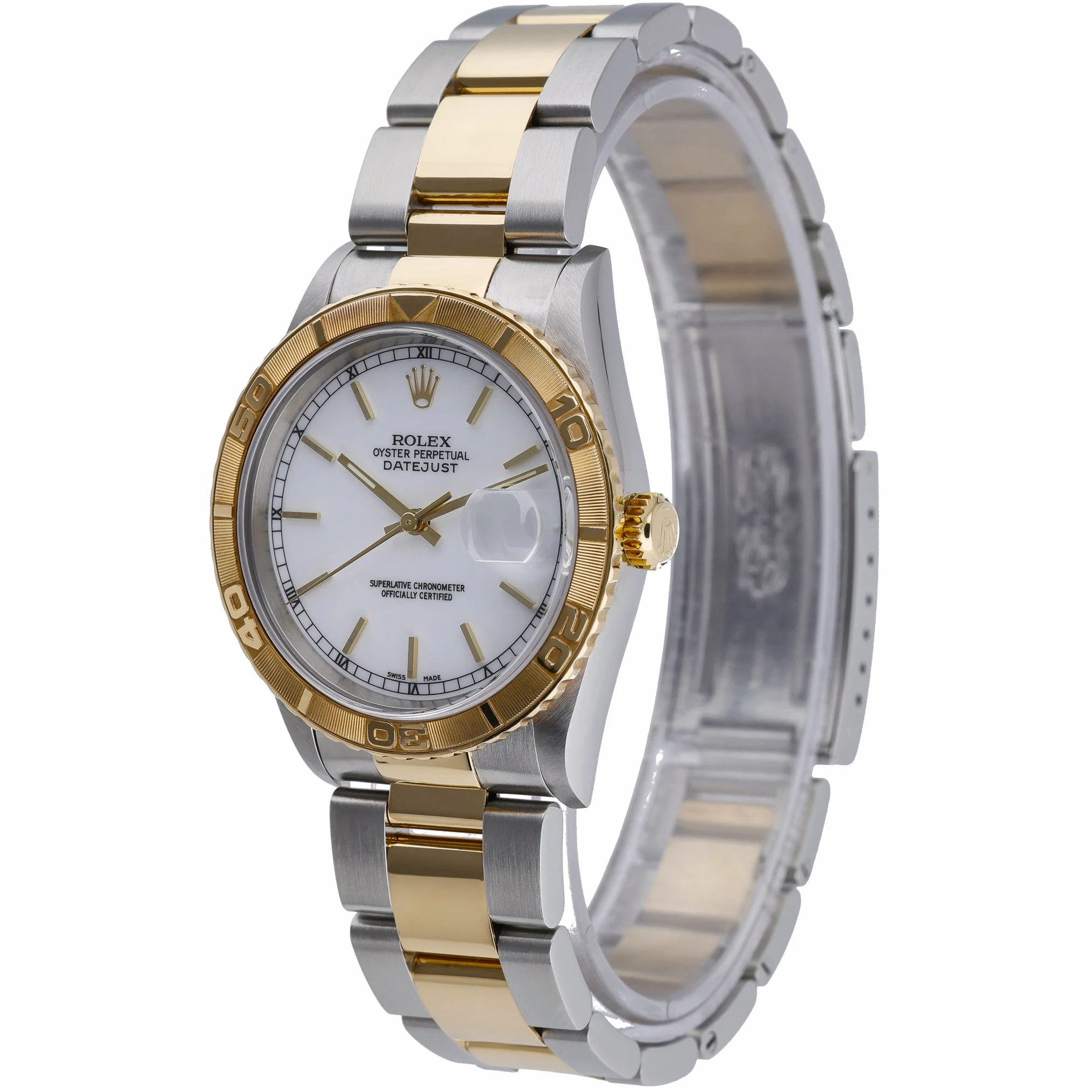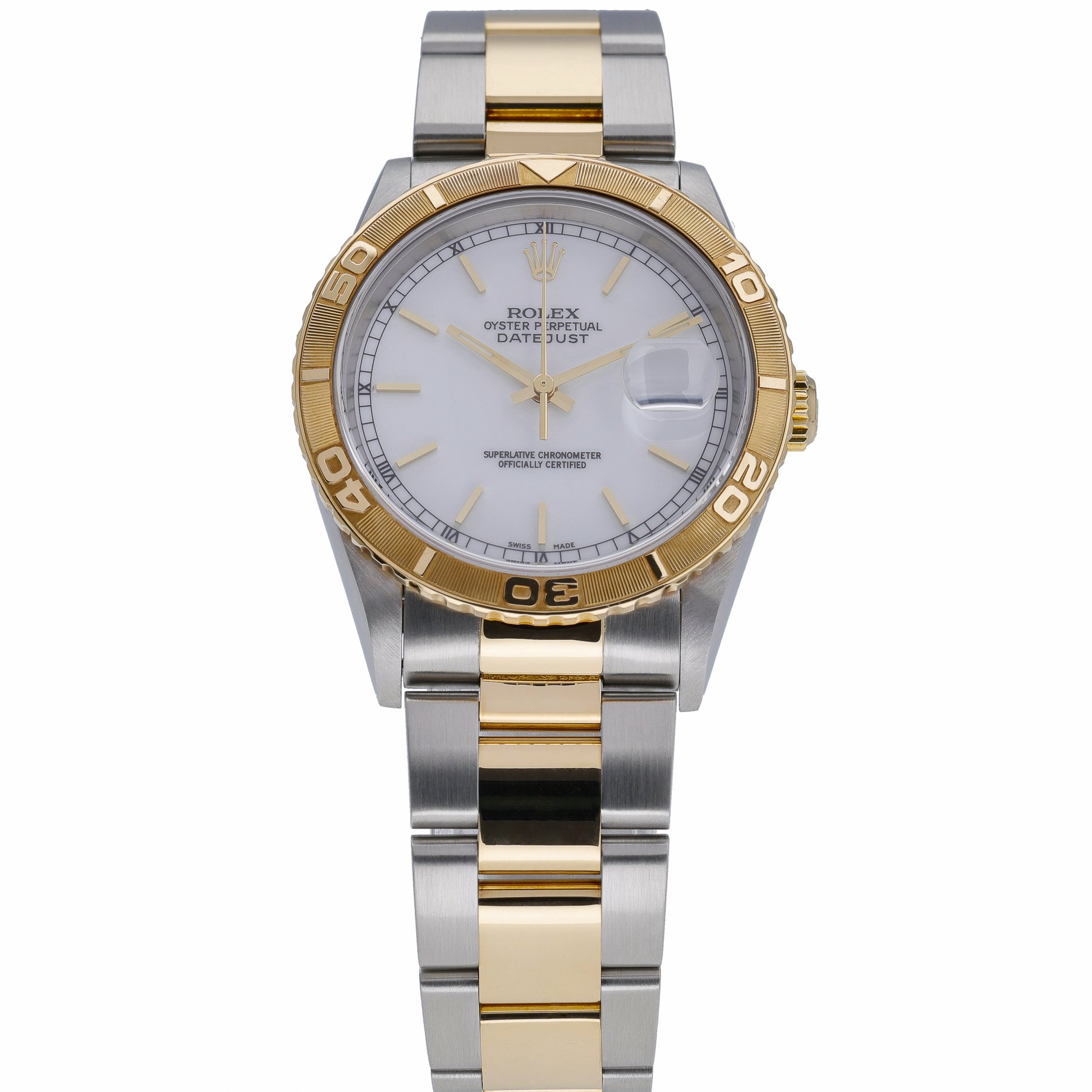 Elevate your collection with the Rolex Datejust Turn-O-Graph ref. 16263, a 36mm steel and yellow gold classic from 2000 in excellent condition. The signature rotating Turn-O-Graph bezel frames a crisp white baton dial beneath durable sapphire crystal, while the automatic movement ensures dependable precision. Finished with a two-tone Oyster bracelet and secure folding clasp, this versatile piece blends sporty functionality with timeless elegance and is water resistant to 100M. Supplied with its Rolex box and original papers. BQ Ref: 53016. Enjoy peace of mind with our 2-year warranty, a 14-day return policy, and next day delivery.