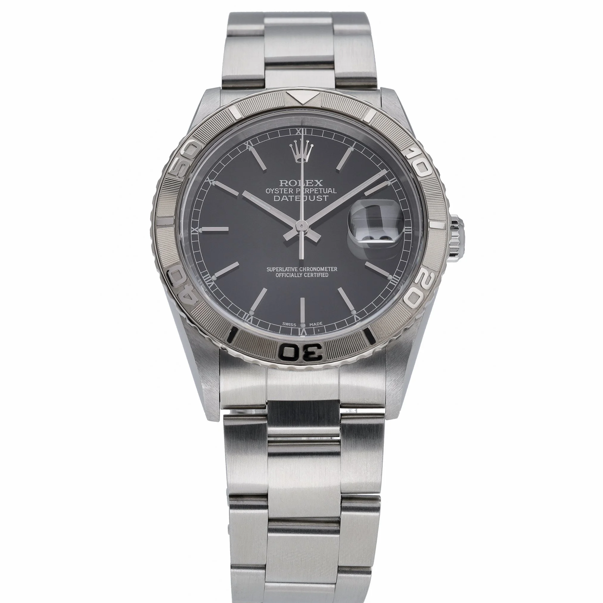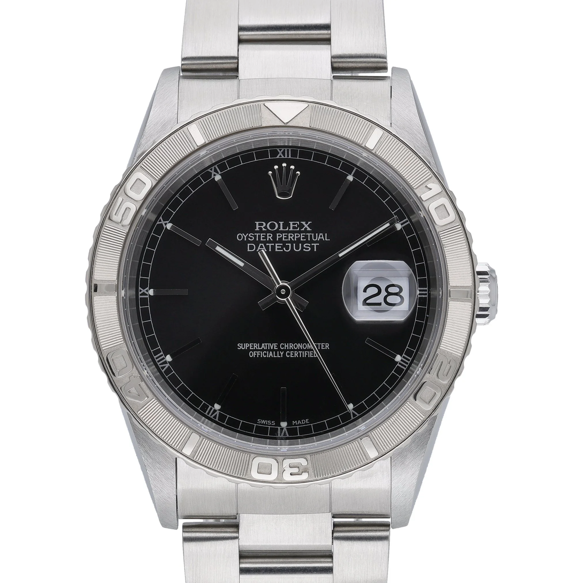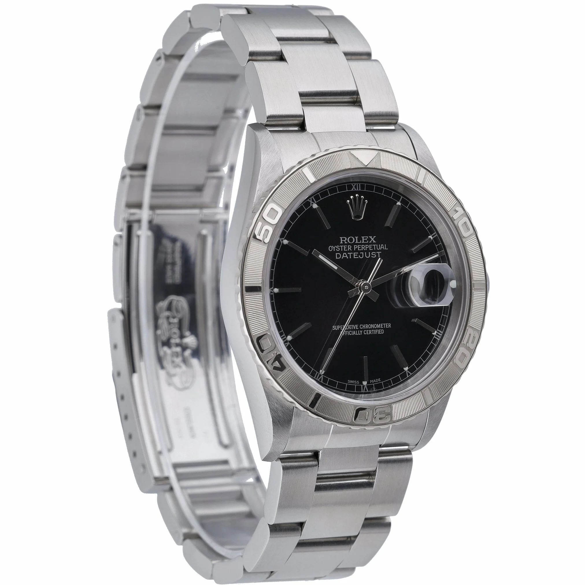Rolex Datejust Turn‑O‑Graph ref. 16264 pairs the iconic Datejust versatility with a functional rotating Turn‑O‑Graph bezel for effortless timing. This 36mm Oystersteel example from 2003 features a sleek black baton dial beneath scratch‑resistant sapphire crystal, fitted to the robust Oyster bracelet with folding clasp. Powered by a reliable automatic movement and water resistant to 100m, it’s a refined everyday companion with sporty utility. Presented in excellent condition with original box and papers, BQ Ref 53022 is supplied with our 2 Year Warranty, Prompt Delivery, and a 14 Day Return Policy for complete peace of mind.