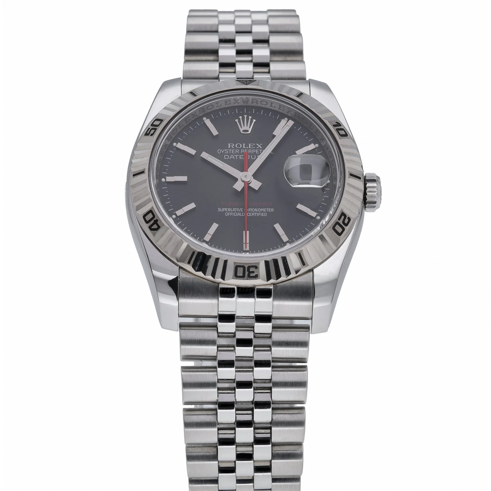 Rolex Datejust Turn‑O‑Graph, ref. 116264 (BQ Ref 51147), pairs timeless style with practical functionality. This 36mm gents model features an Oystersteel case and Jubilee bracelet with a concealed clasp, a sleek black baton dial protected by sapphire crystal, and the signature Turn‑O‑Graph bezel for effortless timing. Powered by an automatic movement and water resistant to 100M, it’s a versatile daily companion. Manufactured in 2004 and presented in excellent condition, this example is supplied with its original box and papers. Enjoy peace of mind with our 2 Year Warranty, plus convenient Prompt Delivery and a 14 Day Return Policy.
