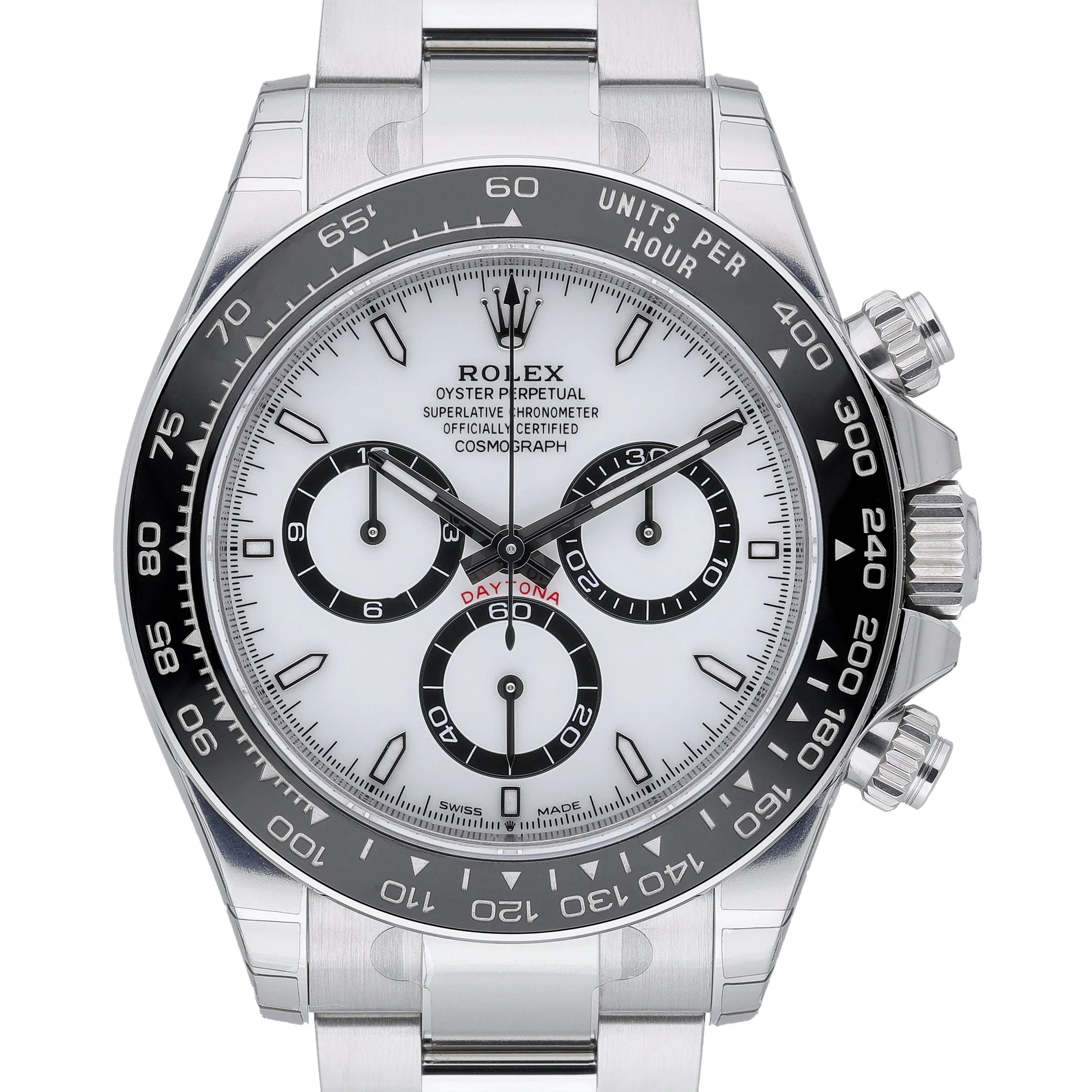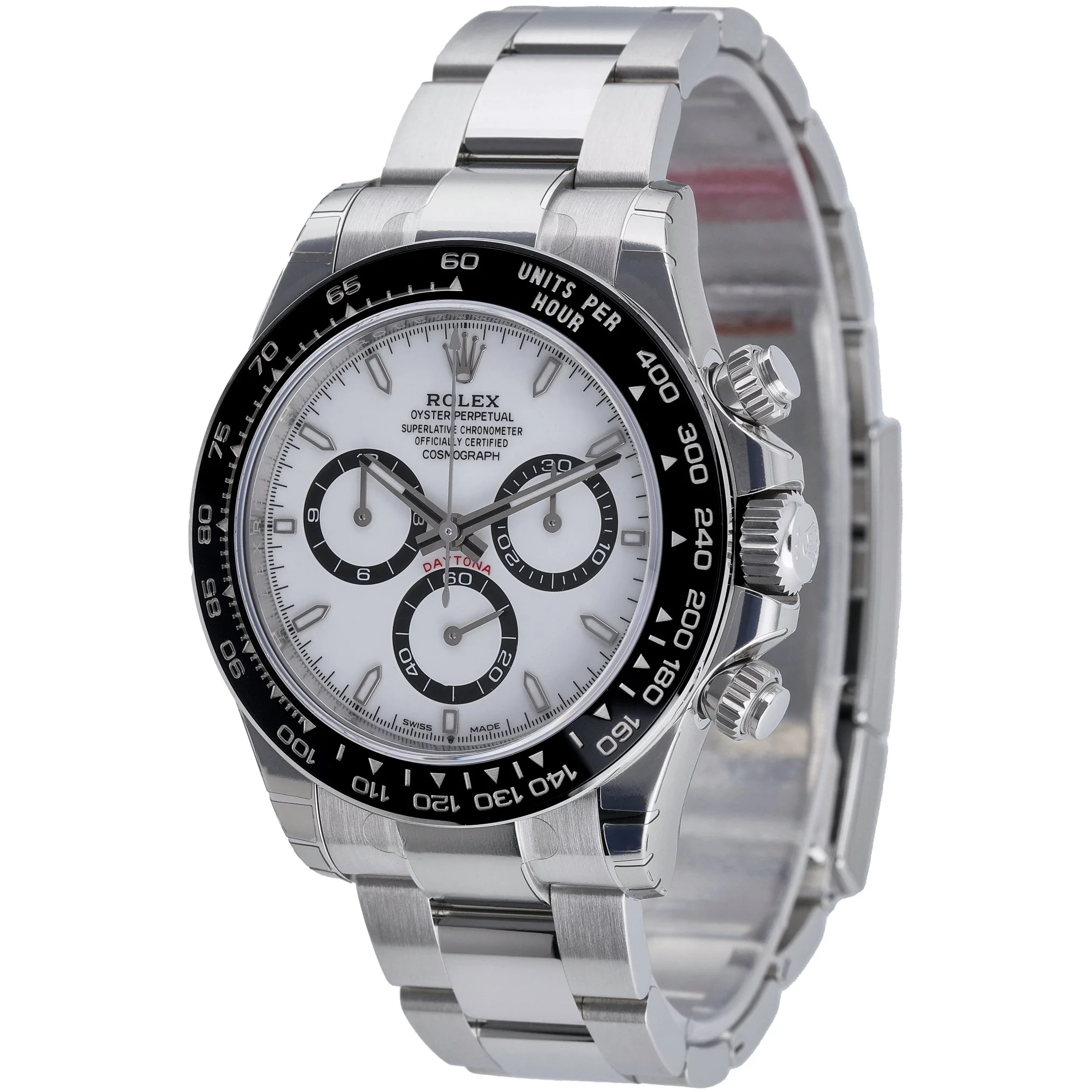 Experience the legend with this Rolex Daytona (Ref. 126500LN), BQ Ref 53287. Produced in 2025 and presented unworn with stickers, it arrives complete with Rolex box, original papers, and white tag. The 40mm Oystersteel case frames a crisp white chronograph dial protected by sapphire crystal, while the tachymetric scale bezel underscores the model’s racing heritage. Powered by an automatic movement and secured by the robust Oyster bracelet with Oysterlock clasp, this Daytona offers everyday versatility with 100M water resistance. Covered by a 5 Years Manufacturers warranty from the 2025 date of manufacture, it’s a pristine example ready for immediate enjoyment. Benefit from our Prompt Delivery and 14 Day Return Policy for complete peace of mind.