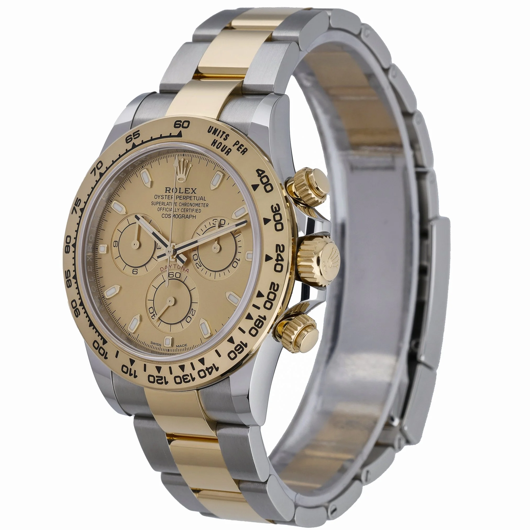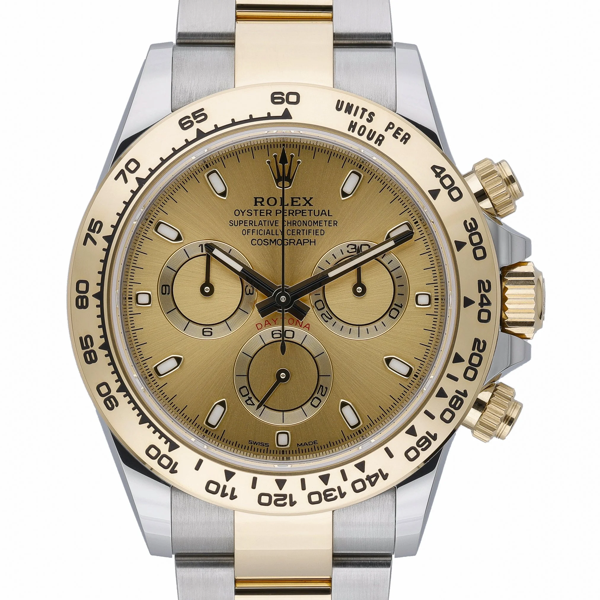 Rolex Daytona ref. 116503 (BQ Ref 53356) in steel and yellow gold, year 2022, showcasing a radiant champagne chronograph dial. Powered by a precise automatic movement, this 40mm icon features a tachymetric scale bezel, sapphire crystal, and the robust Oyster bracelet with Oysterlock clasp. Water resistant to 100M, it blends sport performance with timeless elegance. Presented in excellent condition, this example is supplied with its original box, original papers, and white tag. Included: 2-year warranty, next day delivery, and a 14-day return policy for complete peace of mind.