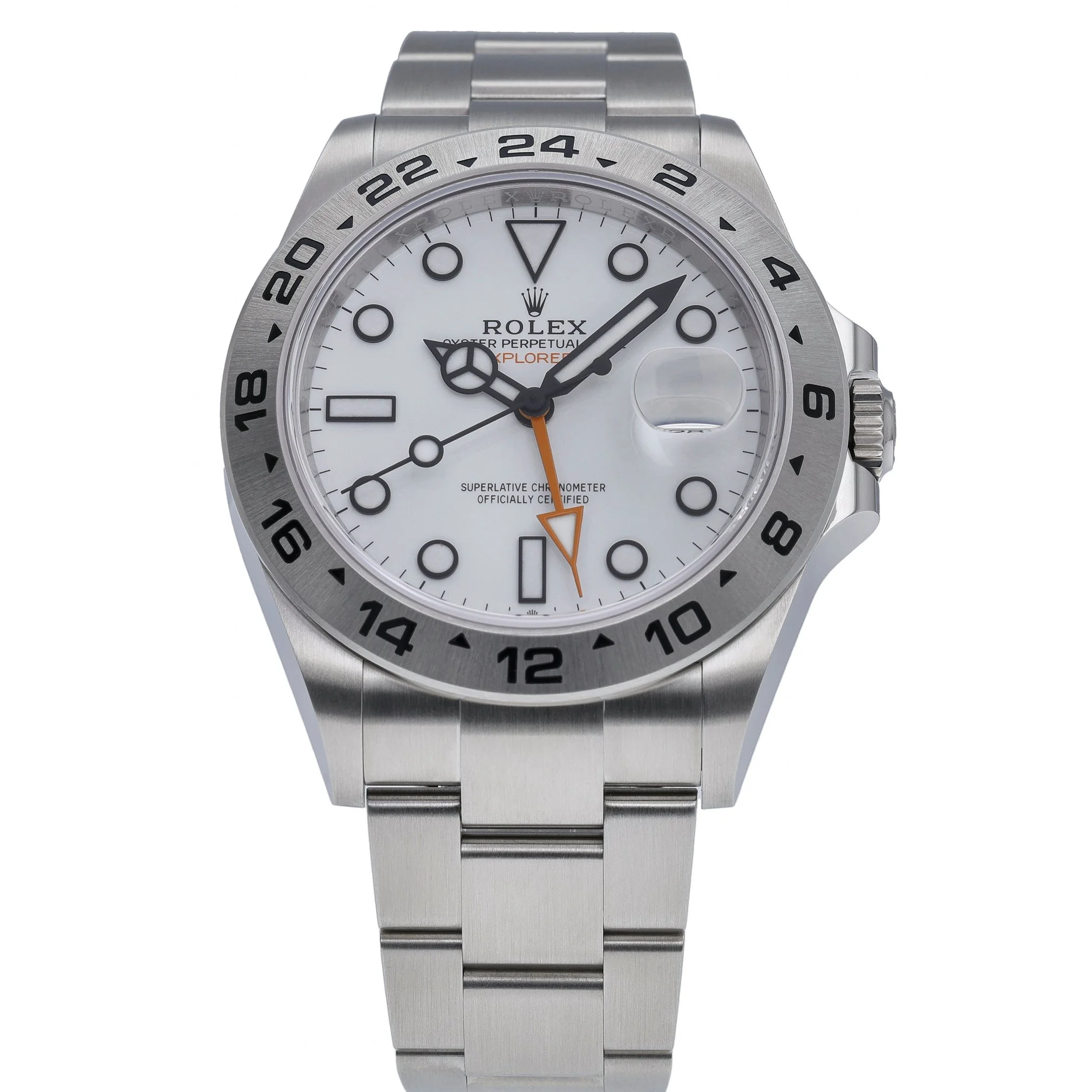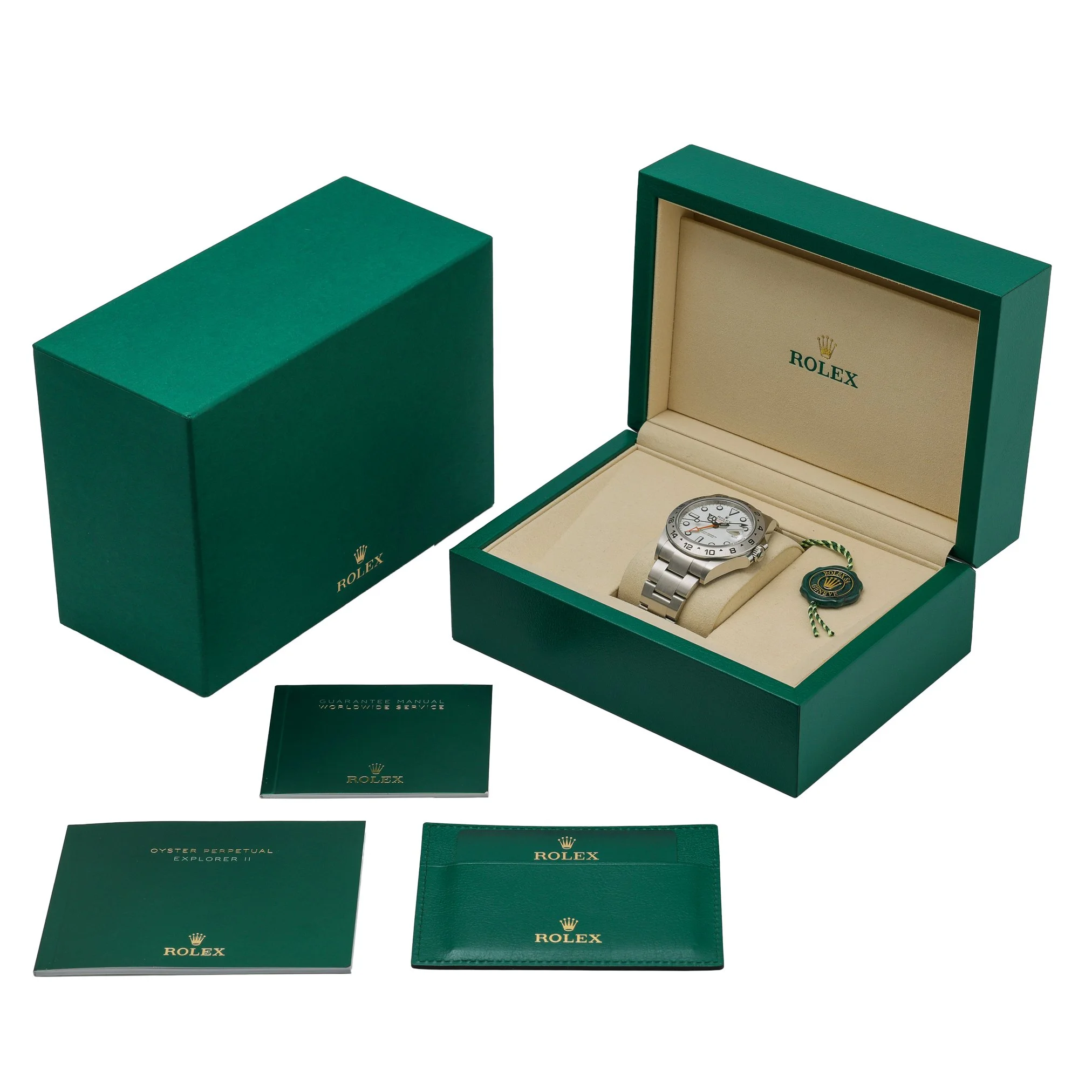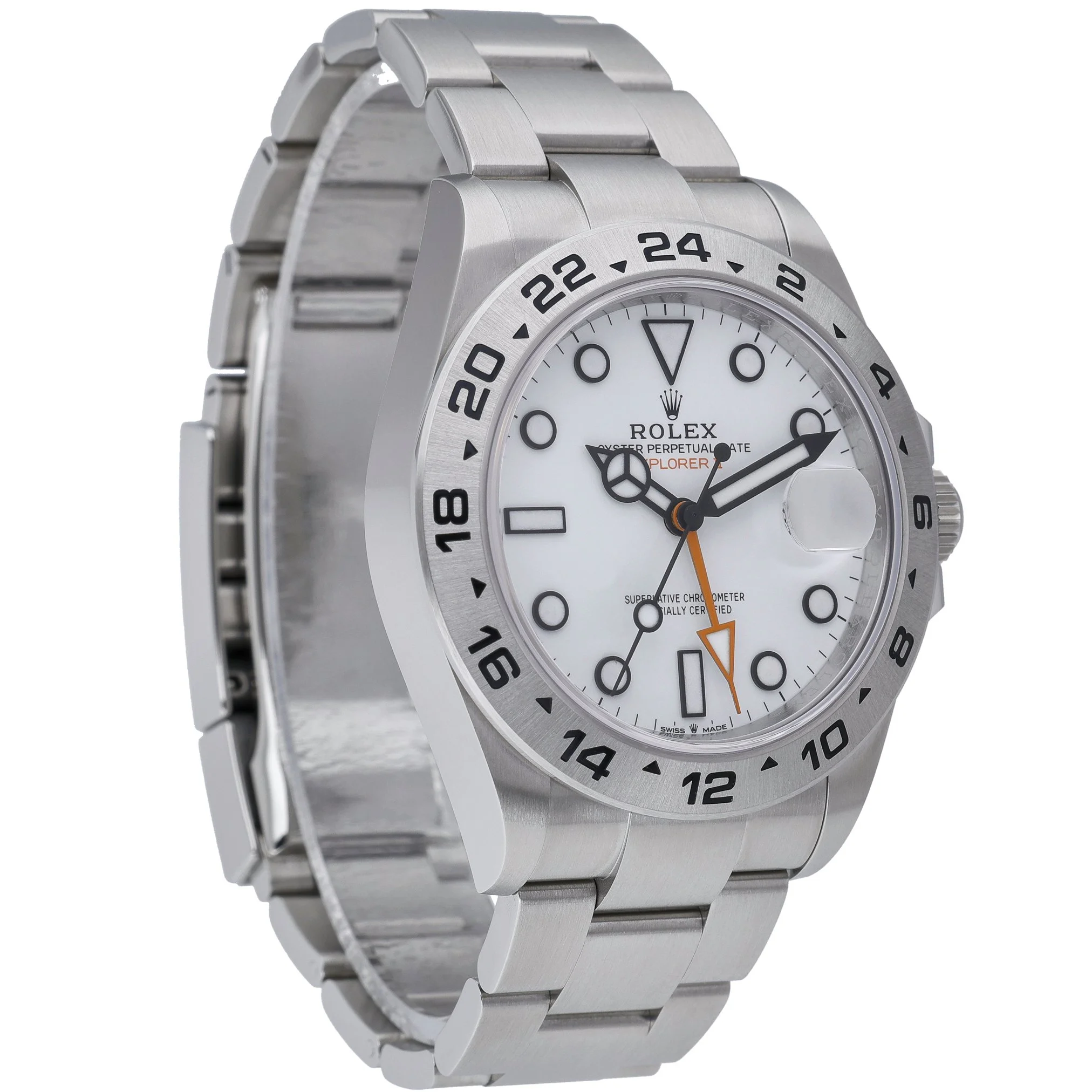 Discover the Rolex Explorer II, reference 226570, a 42mm tool watch in resilient Oystersteel with a crisp white dial and a fixed 24-hour graduated bezel for assured legibility around the clock. This New/Unworn 2026 example features an automatic movement, scratch-resistant sapphire crystal, and 100m water resistance, paired with the robust Oyster bracelet and secure Oysterlock clasp. Supplied as a complete set with Rolex box, original papers, and white tag (BQ Ref 53205). Enjoy peace of mind with a 5-year manufacturer’s warranty from the 2026 date of manufacture, alongside our 14 Day Return Policy. In stock for Prompt Delivery.