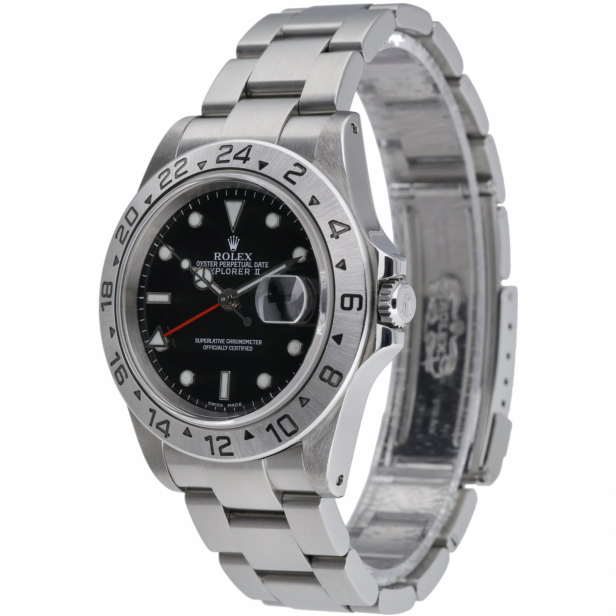 Discover the Rolex Explorer II, reference 16570 (BQ Ref 53032), a timeless tool watch in excellent condition from 2000. Crafted in robust 40mm Oystersteel with a black dial under scratch-resistant sapphire crystal, it features an automatic movement and a 24-hour graduated bezel designed for tracking a second time zone. The classic Oyster bracelet with Oysterlock clasp ensures secure, comfortable wear, while 100M water resistance readies it for everyday adventure. This gents Explorer II is supplied with its original box, original papers, and green tag, and is backed by our 2 Year Warranty for added peace of mind. Enjoy convenient next day delivery and shop with confidence thanks to our 14 Day Return Policy. A refined blend of durability and understated style, the Explorer II remains an essential choice for collectors and enthusiasts alike.
