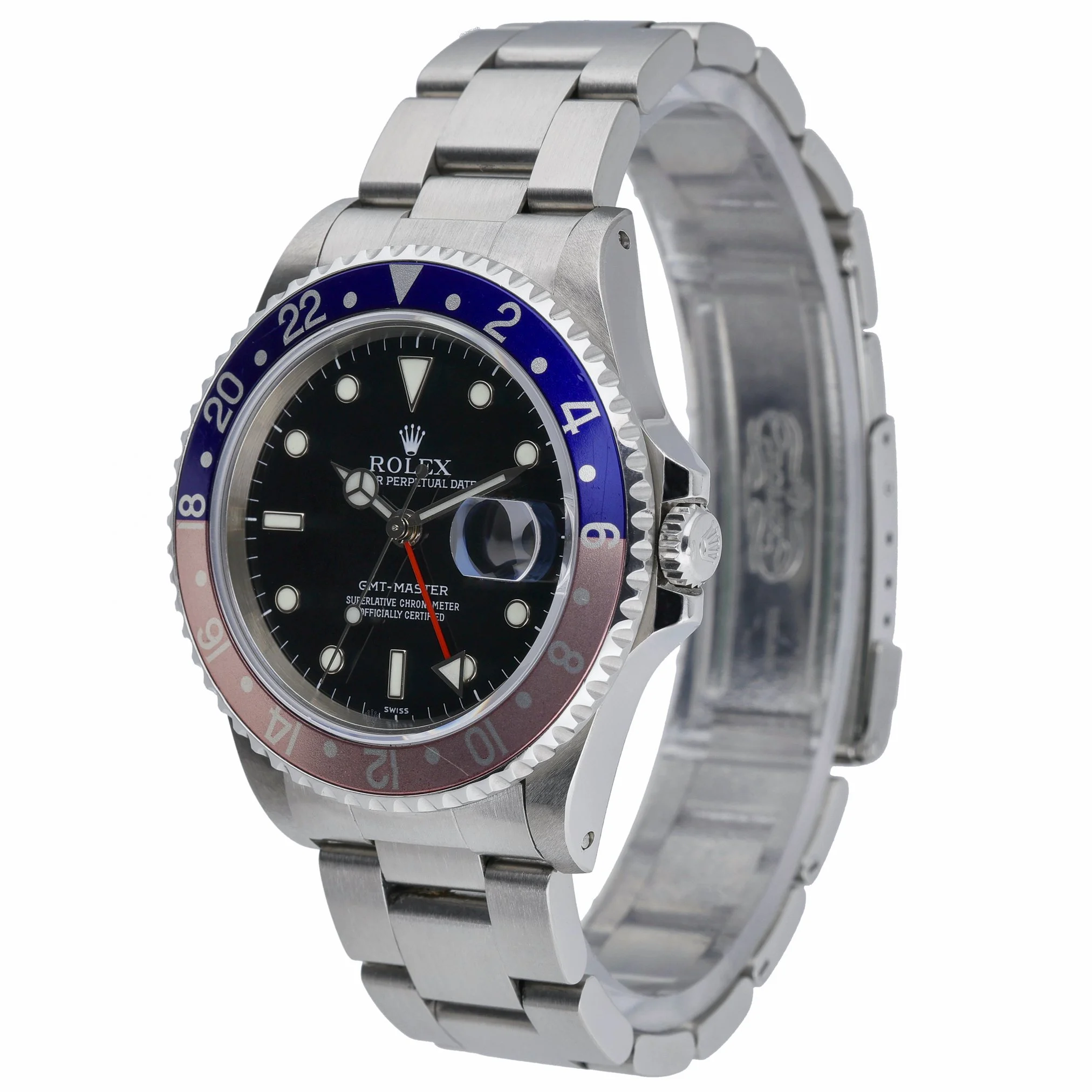 Rolex GMT-Master Ref. 16700 (BQ Ref 52680), a classic 1997 gents model pairing robust functionality with timeless style. Crafted in 40mm Oystersteel with a black dial and sapphire crystal, it features an automatic movement and a bidirectional rotatable 24-hour bezel for dual-time tracking. The watch is presented on a durable Oyster bracelet with a secure folding clasp and offers 100M water resistance, making it ideal for travel and daily wear. This example is in good condition and includes its box. Supplied with a 2 Year Warranty, plus a 14 Day Return Policy for peace of mind. Prompt Delivery available.