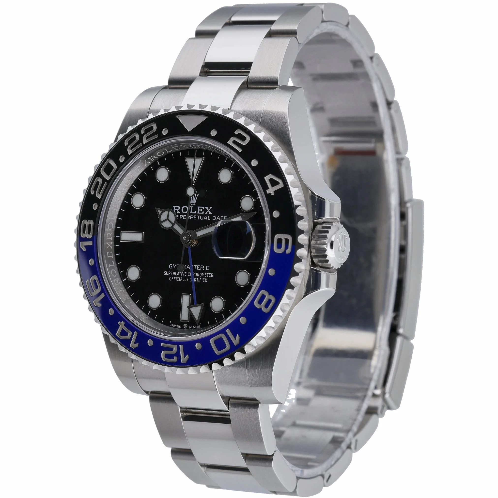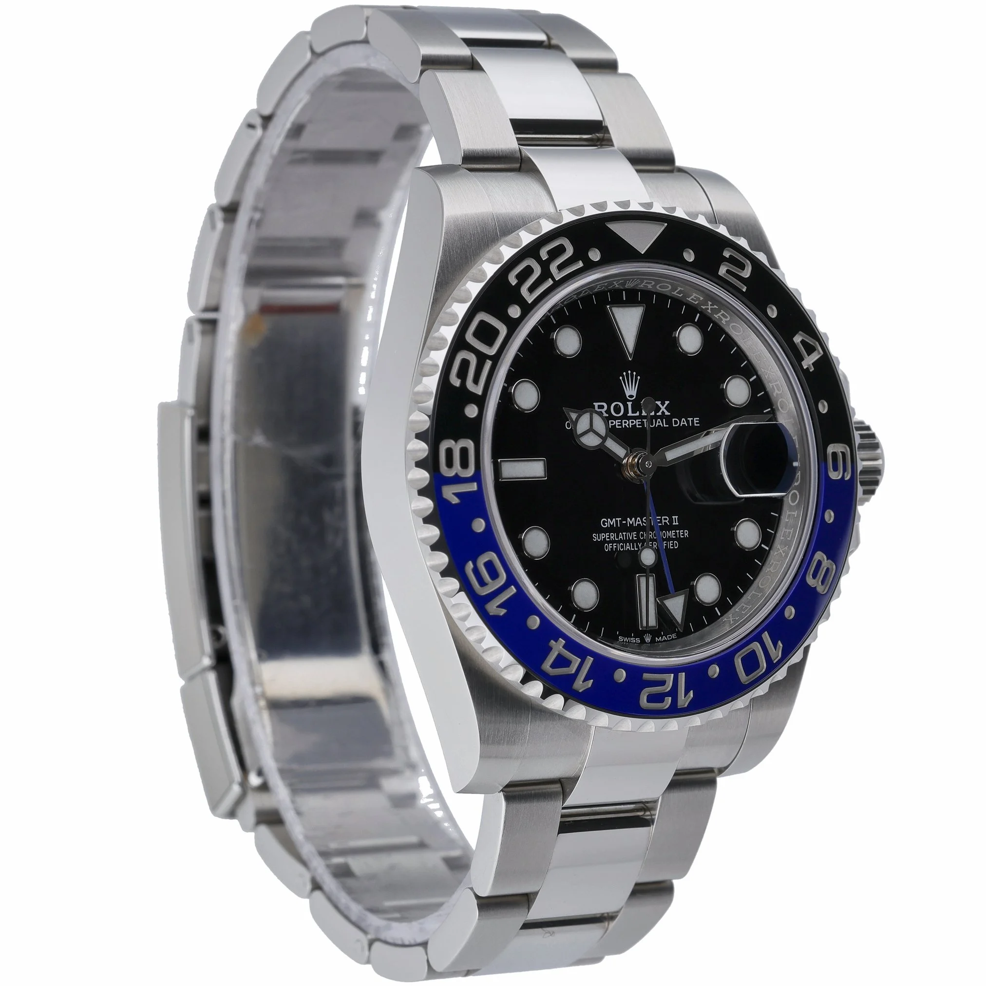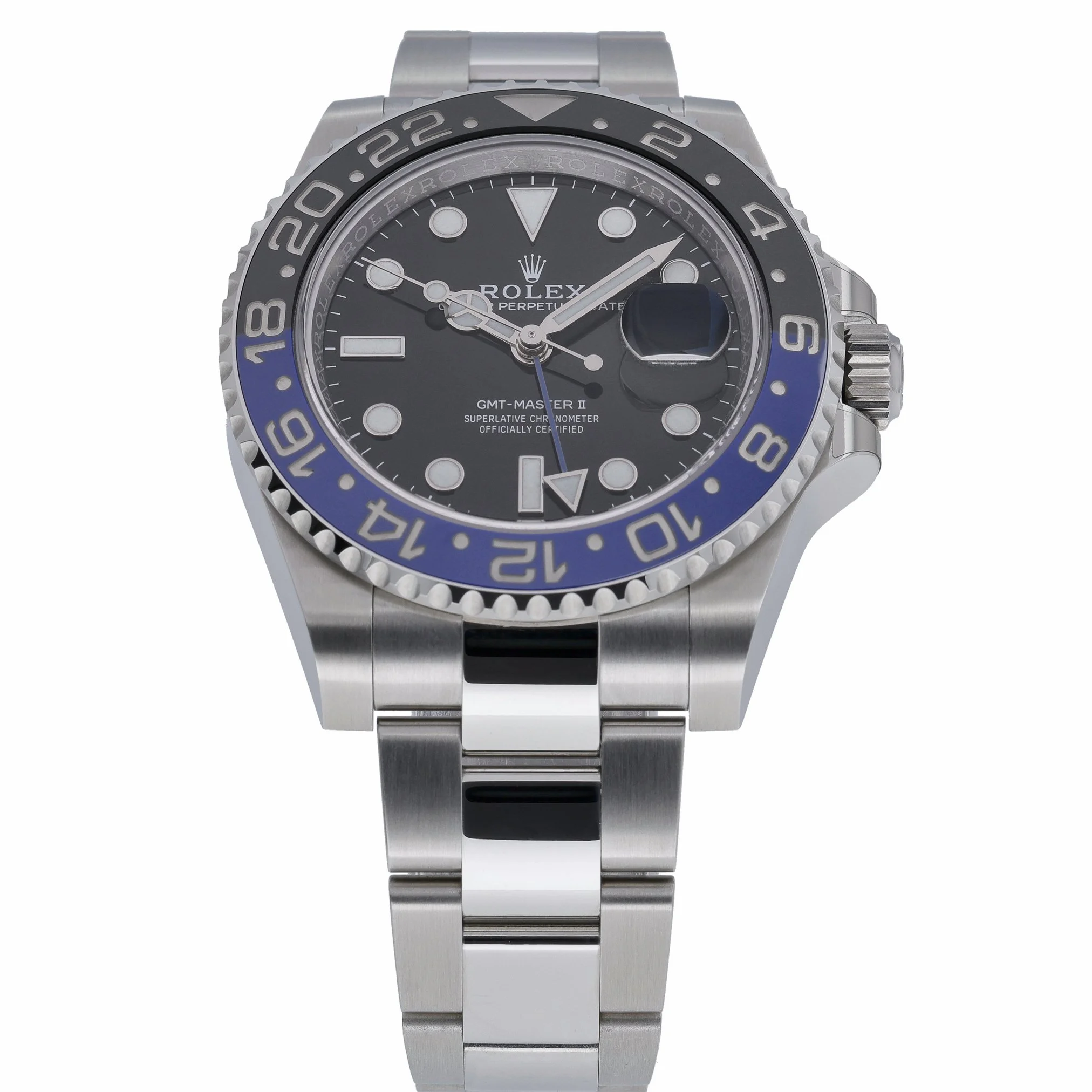 Rolex GMT-Master II “Batman” 126710BLNR (BQ Ref 53179), year 2022, presented in excellent condition. This iconic travel watch features a 40mm Oystersteel case with a black dial protected by sapphire crystal, a bidirectional rotatable bezel, and an automatic movement for reliable GMT functionality. It is fitted with the robust Oyster bracelet and secure Oysterlock clasp, and is water resistant to 100M. Supplied as a complete set with Rolex box, original papers, and white tag, this gents model is backed by our 2 Year Warranty for peace of mind. Enjoy the convenience of Prompt Delivery and a 14 Day Return Policy.