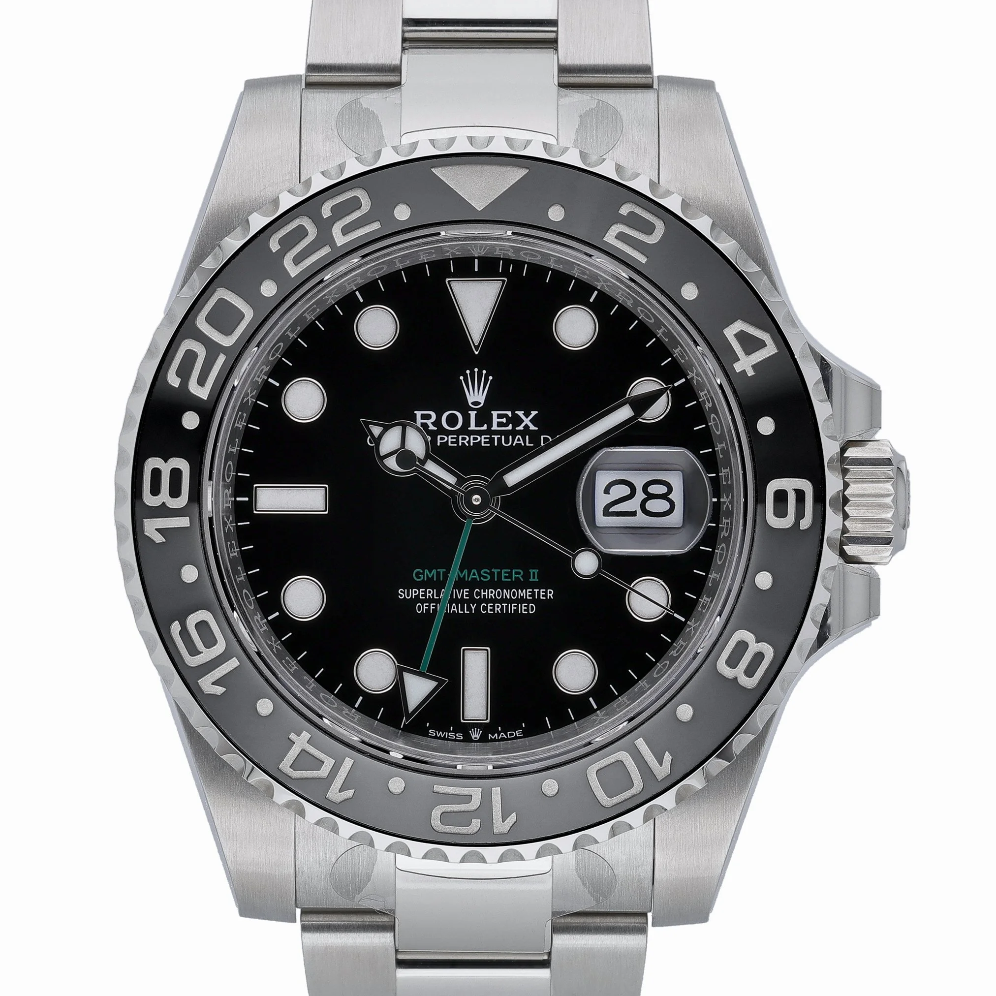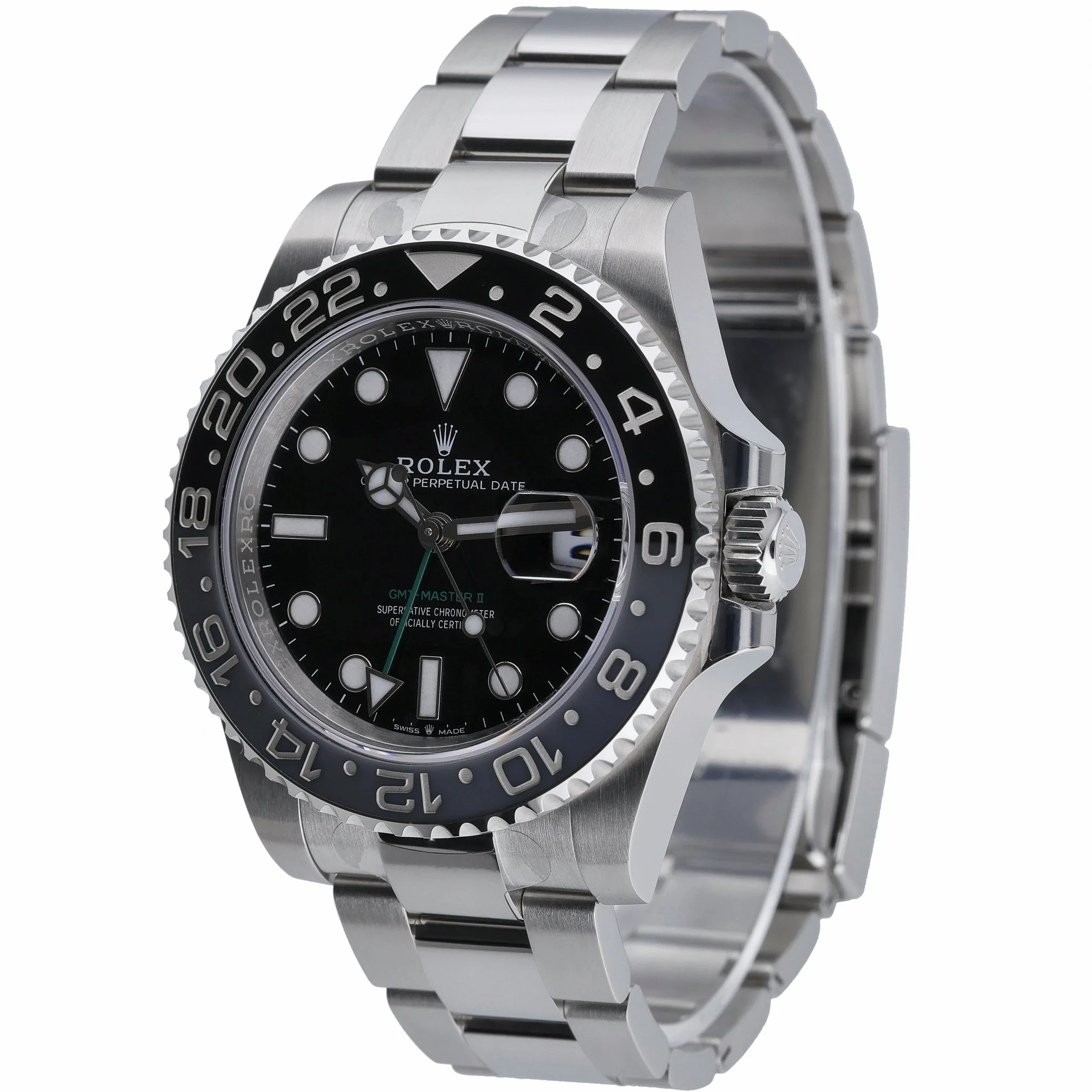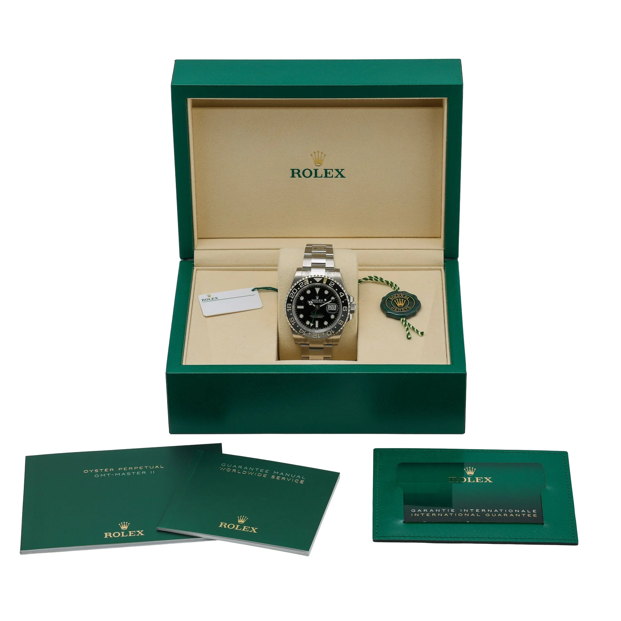 Introducing the Rolex GMT-Master II “Bruce Wayne” (Ref. 126710GRNR, BQ Ref 53107), a 2026 new/unworn example built for precision travel timekeeping. The 40mm Oystersteel case and matching Oyster bracelet with secure Oysterlock clasp frame a clean black dial beneath scratch-resistant sapphire crystal. A bidirectional rotatable 24-hour bezel pairs with the automatic movement to track a second time zone effortlessly, while 100m water resistance ensures robust everyday versatility. Supplied complete with Rolex box, original papers, and white tag, this piece carries the full 5-year manufacturer’s warranty from the date of manufacture (2026). Gents sizing, plain dial for optimal legibility, Prompt Delivery, and a 14 Day Return Policy make this a refined, immediately available choice for discerning collectors and frequent flyers alike.
