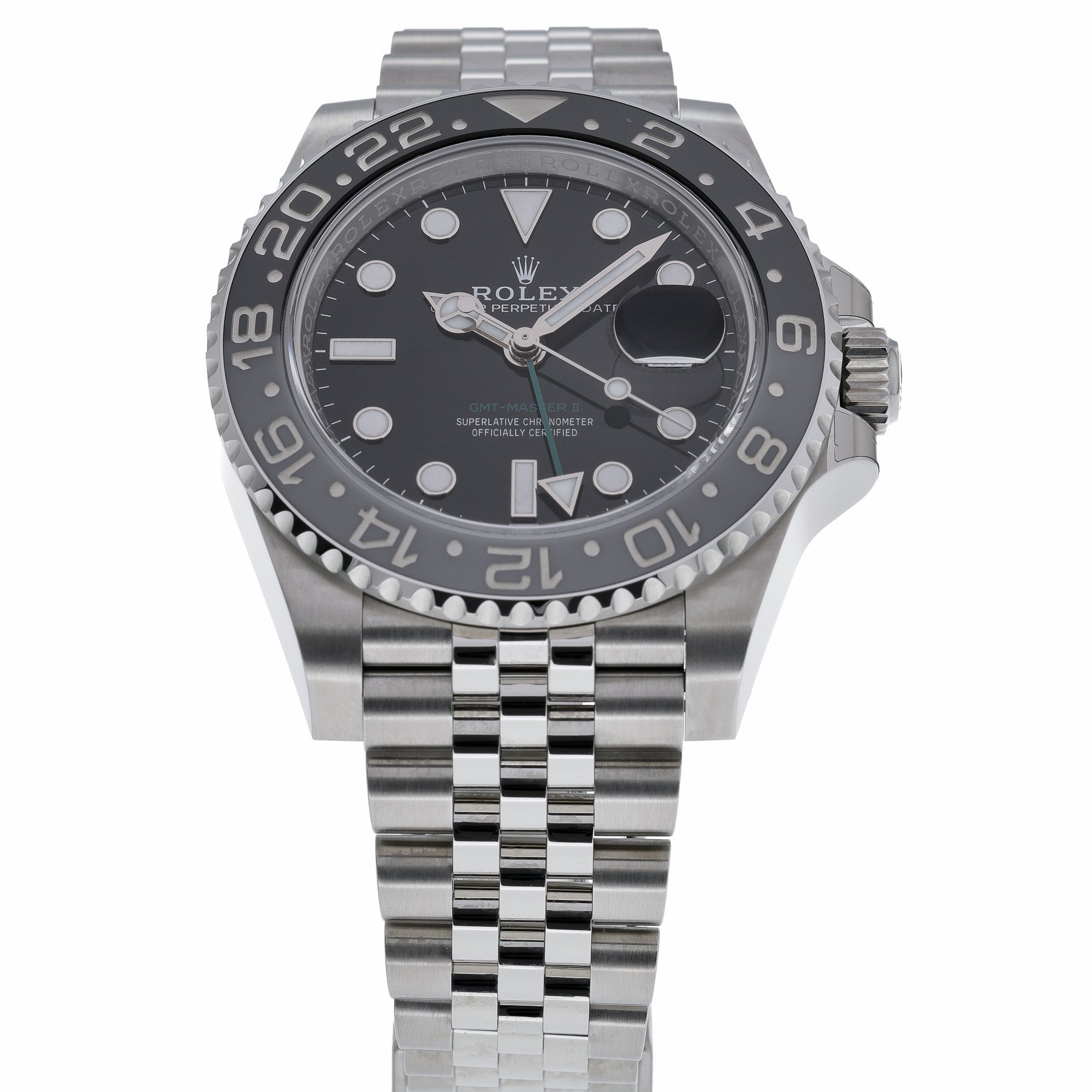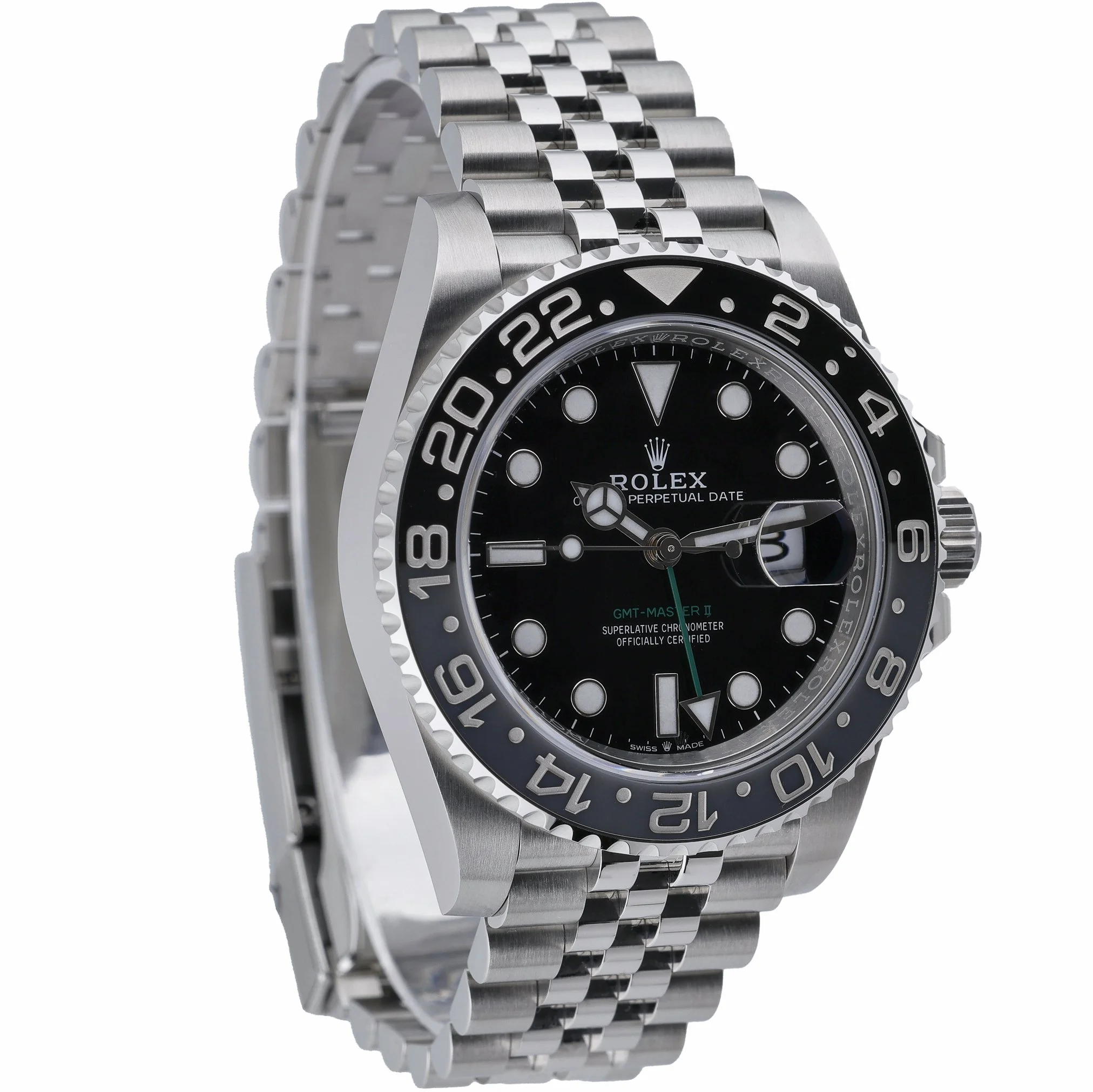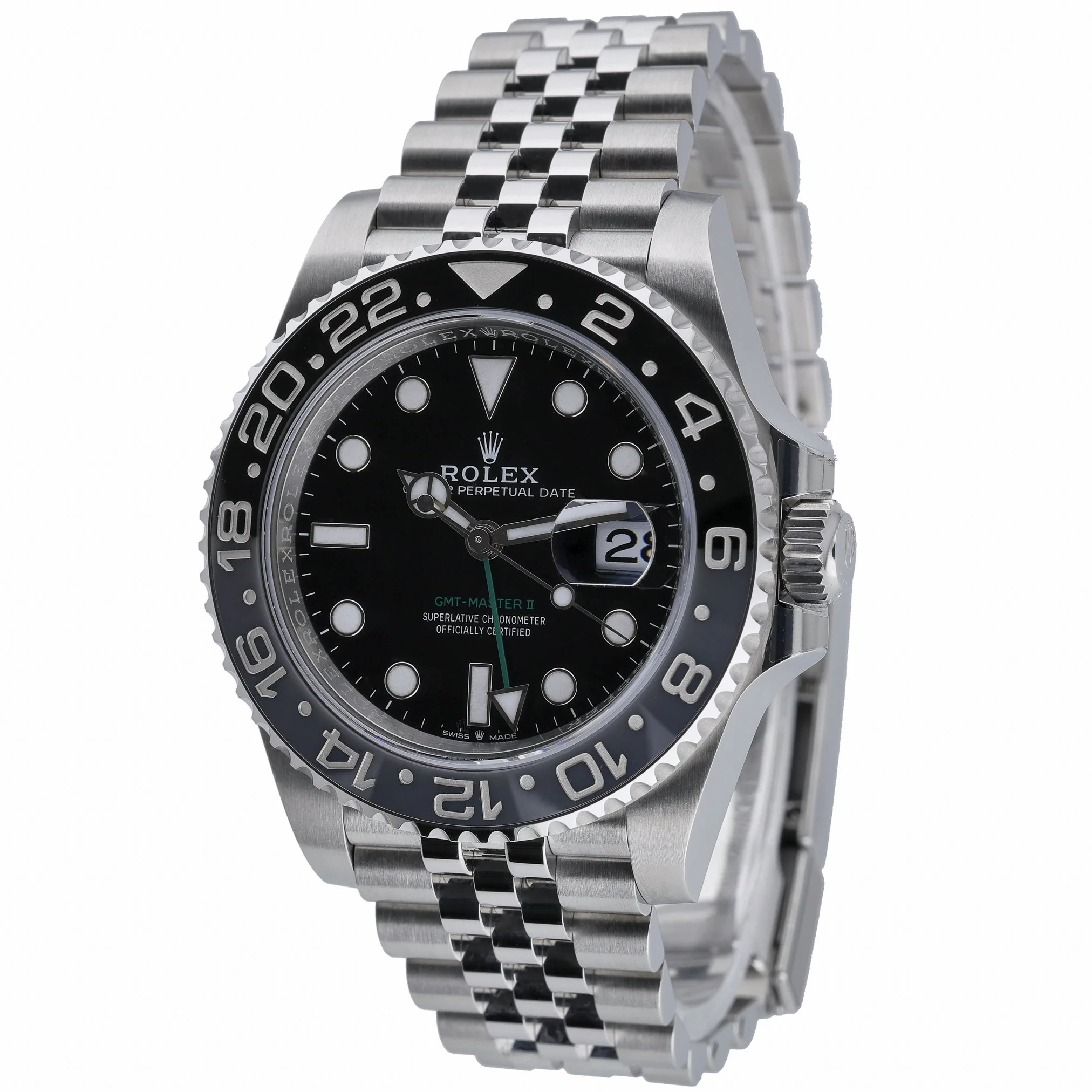 Discover the Rolex GMT-Master II “Bruce Wayne” (Ref. 126710GRNR), a 2026 new/unworn gents’ model pairing professional utility with iconic style. Its 40mm Oystersteel case is topped with a sapphire crystal protecting a sleek black dial, while the bidirectional rotatable GMT bezel and automatic movement deliver seamless dual time-zone tracking. The robust Jubilee bracelet with Oysterlock clasp ensures secure, all-day comfort, and 100m water resistance readies it for travel and daily wear alike. Supplied with Rolex presentation box, original papers, and white tag. Covered by a 5-year manufacturer’s warranty from the 2026 date of manufacture. Model: 126710GRNR. BQ Ref: 53137. Prompt Delivery available and backed by our 14 Day Return Policy.