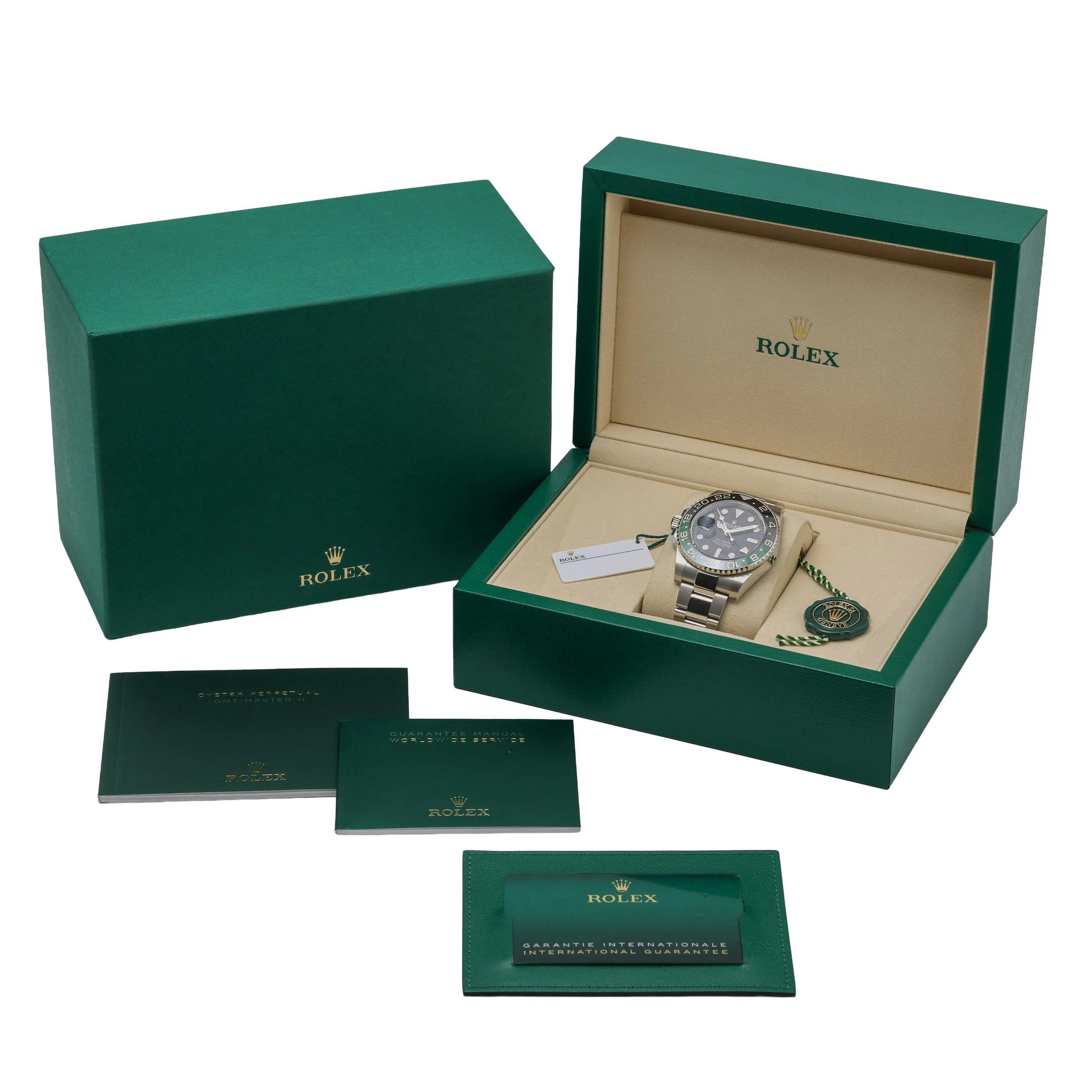 Rolex GMT-Master II “Sprite” (Ref. 126720VTNR), BQ Ref 53383. This new/unworn 2026 model pairs a 40mm Oystersteel case with a black dial beneath sapphire crystal, complemented by a bidirectional rotatable 24-hour bezel for seamless dual-time tracking. Powered by Rolex’s automatic movement and fitted with the robust Oyster bracelet and Oysterlock safety clasp, it delivers precision, comfort, and everyday durability with 100m water resistance. Supplied with its box, original papers, and white tag. Includes a 5-year manufacturers warranty from the date of manufacture (2026). Next day delivery and a 14-day return policy for your peace of mind. A contemporary, travel-ready classic for gents seeking performance and prestige.