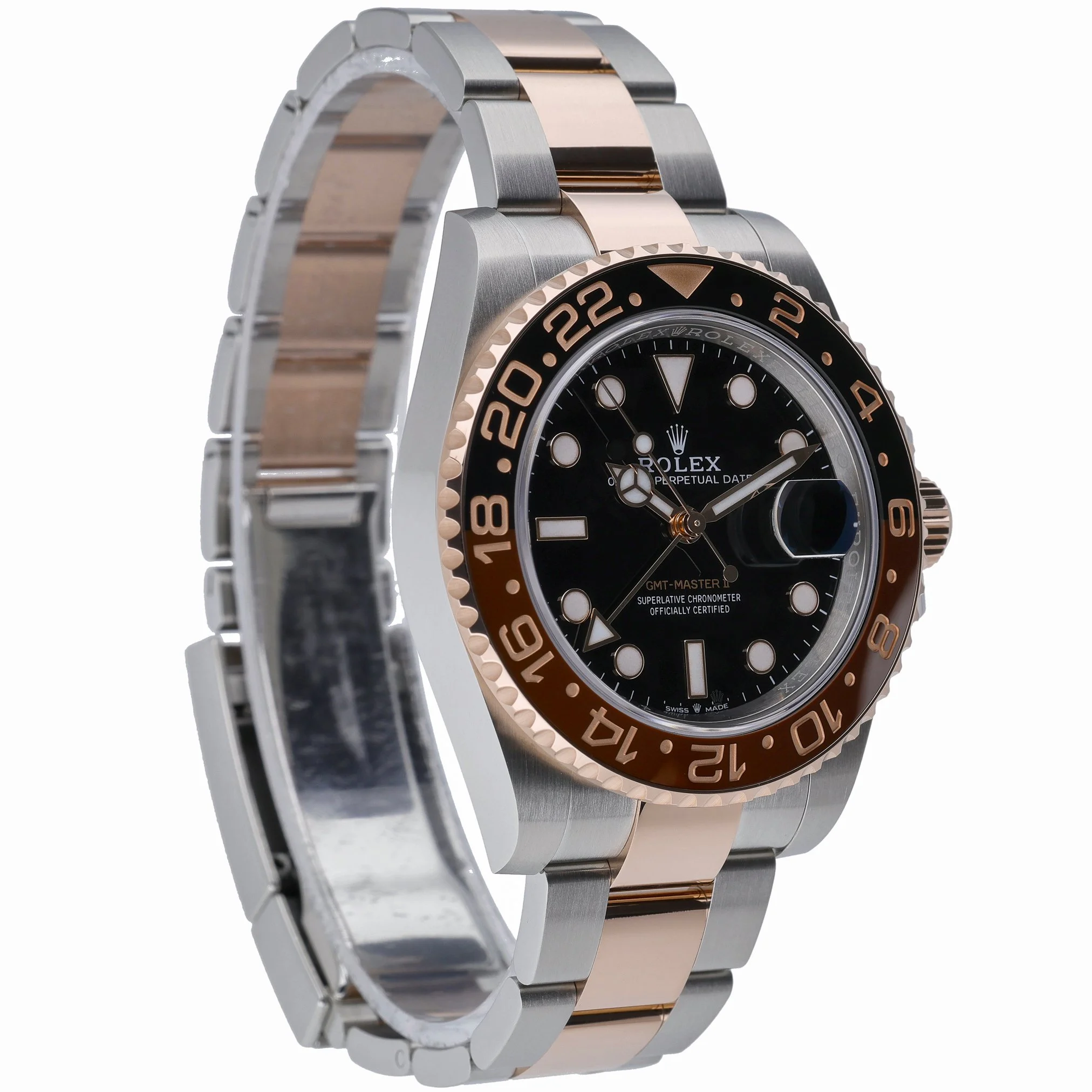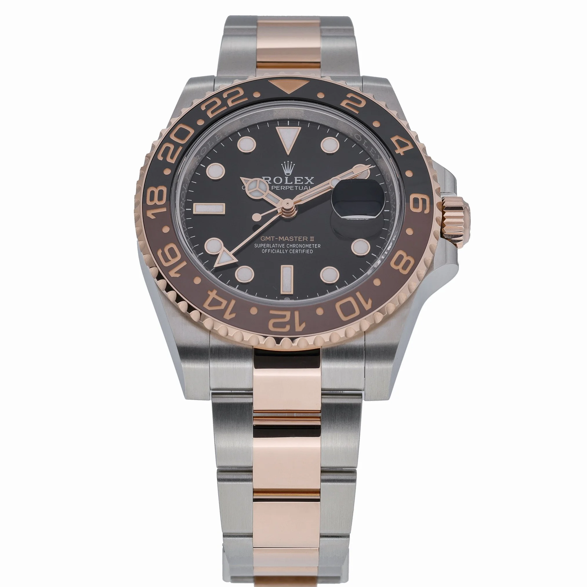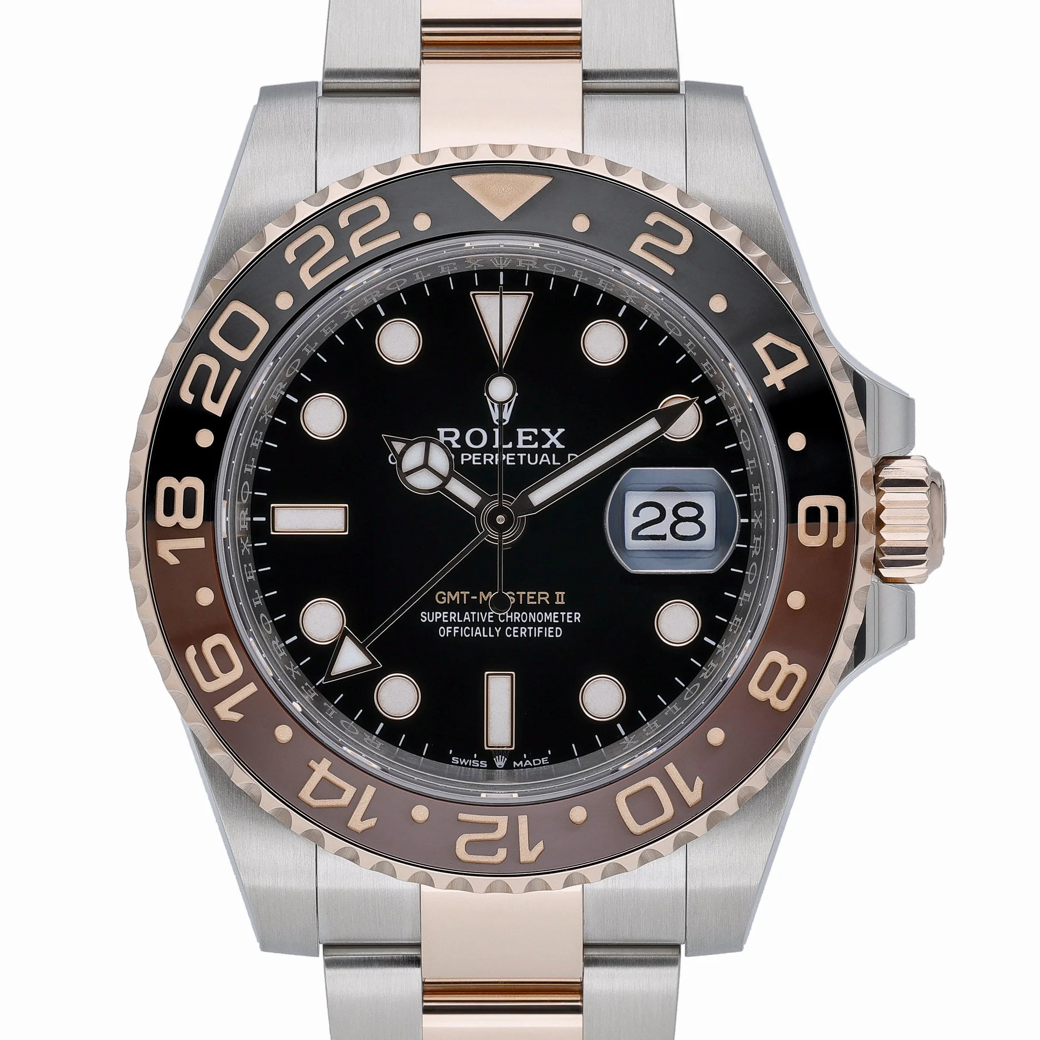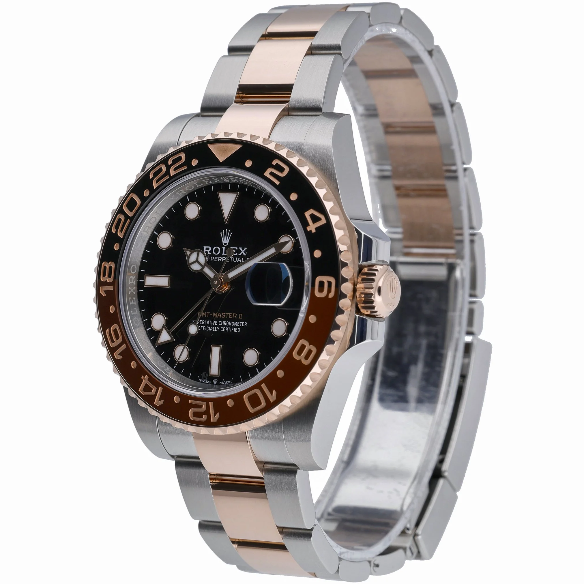 Presenting the Rolex GMT-Master II 126711CHNR “Root Beer” (BQ Ref 53239), a 40mm gents’ model in Steel & Rose Gold with a black dial, Oyster bracelet, and secure Oysterlock clasp. Its automatic movement delivers practical dual-time functionality, complemented by a bidirectional rotatable bezel for effortless travel timing. Protected by scratch-resistant sapphire crystal and water resistant to 100M, this watch is offered in excellent condition. Supplied with Rolex box, original papers, and white tag. Year of manufacture: 2025, with a 5-year Rolex manufacturer’s warranty running from the 2025 production date. Enjoy Prompt Delivery and a 14 Day Return Policy.
