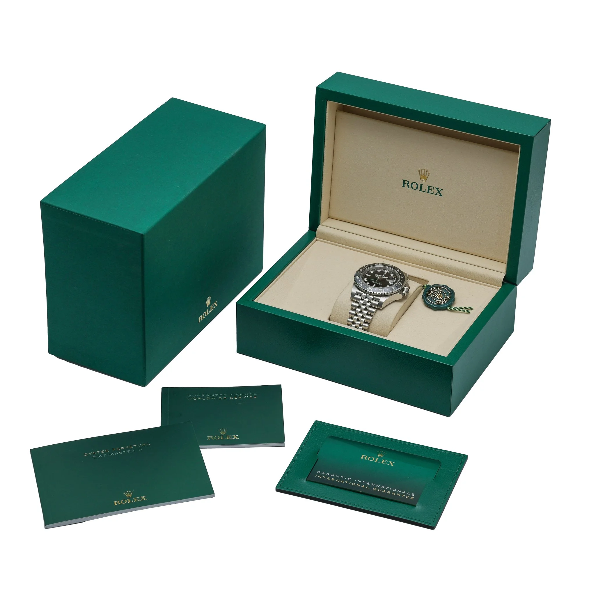 Rolex GMT‑Master II “Bruce Wayne” (Ref. 126710GRNR, BQ Ref 52870) pairs travel‑ready functionality with refined Rolex craftsmanship. Presented in excellent condition, this 40mm Oystersteel model features a black dial protected by sapphire crystal and a bidirectional rotatable GMT bezel for effortless tracking of a second time zone. The automatic movement delivers reliable precision, while the Oystersteel Jubilee bracelet with Oysterlock clasp ensures secure, all‑day comfort. Water resistant to 100M, it’s built for performance without compromising elegance. Supplied complete with its box, original papers, and white tag, this 2026 example benefits from a 5‑year manufacturer’s warranty running from its 2026 date of manufacture. Enjoy next day delivery and shop with confidence under our 14‑day return policy.