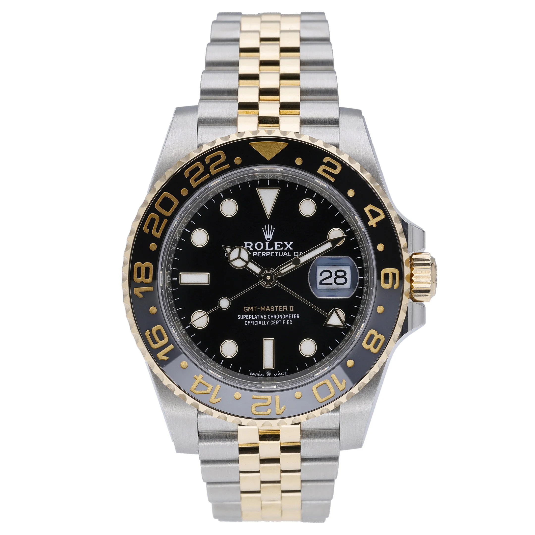 Rolex GMT-Master II Ref. 126713GRNR (BQ Ref. 52690) is a 2024 Steel & Yellow Gold travel icon, featuring a 40mm case, black dial beneath scratch-resistant sapphire crystal, and a bidirectional rotatable bezel. Driven by an automatic movement, it is paired with a Steel & Yellow Gold Jubilee bracelet and secure Oysterlock clasp, offering 100m water resistance. Presented in excellent condition, this gents model is supplied with its original Rolex box, original papers, and the original white tag. Backed by a 5-year manufacturer’s warranty from the 2024 date of manufacture. Next day delivery available, with a 14-day return policy for peace of mind.