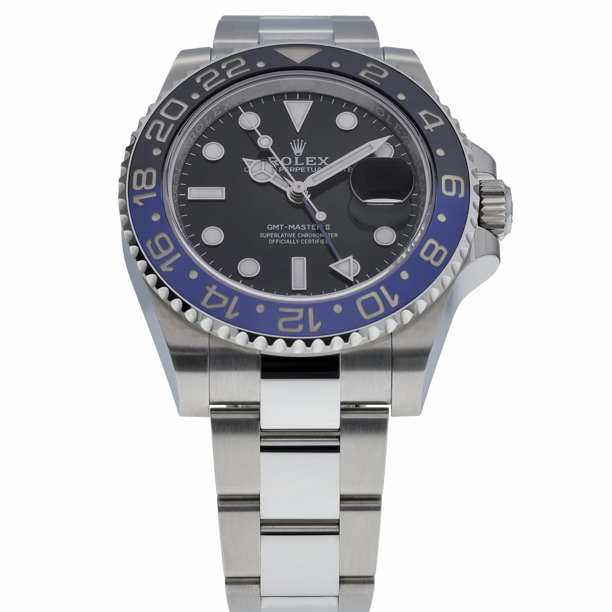 Presenting the Rolex GMT-Master II 126710BLNR “Batman” (BQ Ref 52775). This 2026 piece is unworn with factory stickers and arrives complete with original box, papers, and green tag. Crafted in 40mm Oystersteel with a black dial beneath scratch-resistant sapphire crystal, it features the Oyster bracelet with Oysterlock clasp and a bidirectional rotatable bezel for seamless dual‑time tracking. Powered by an automatic movement and water resistant to 100m, it’s built for precision and everyday durability. Includes next day delivery and a 14-day return policy. Covered by a 5-year manufacturer’s warranty from the 2026 date of manufacture.