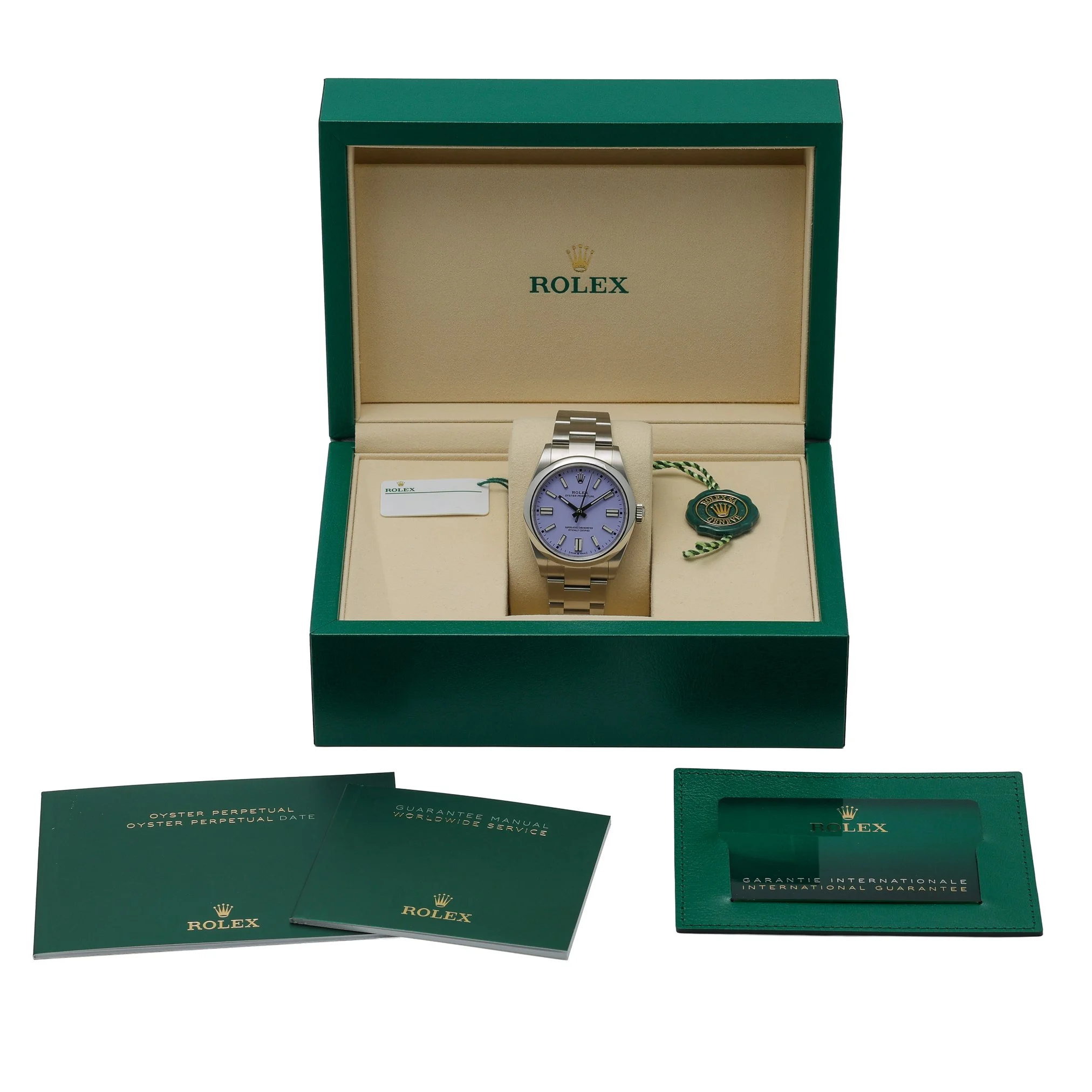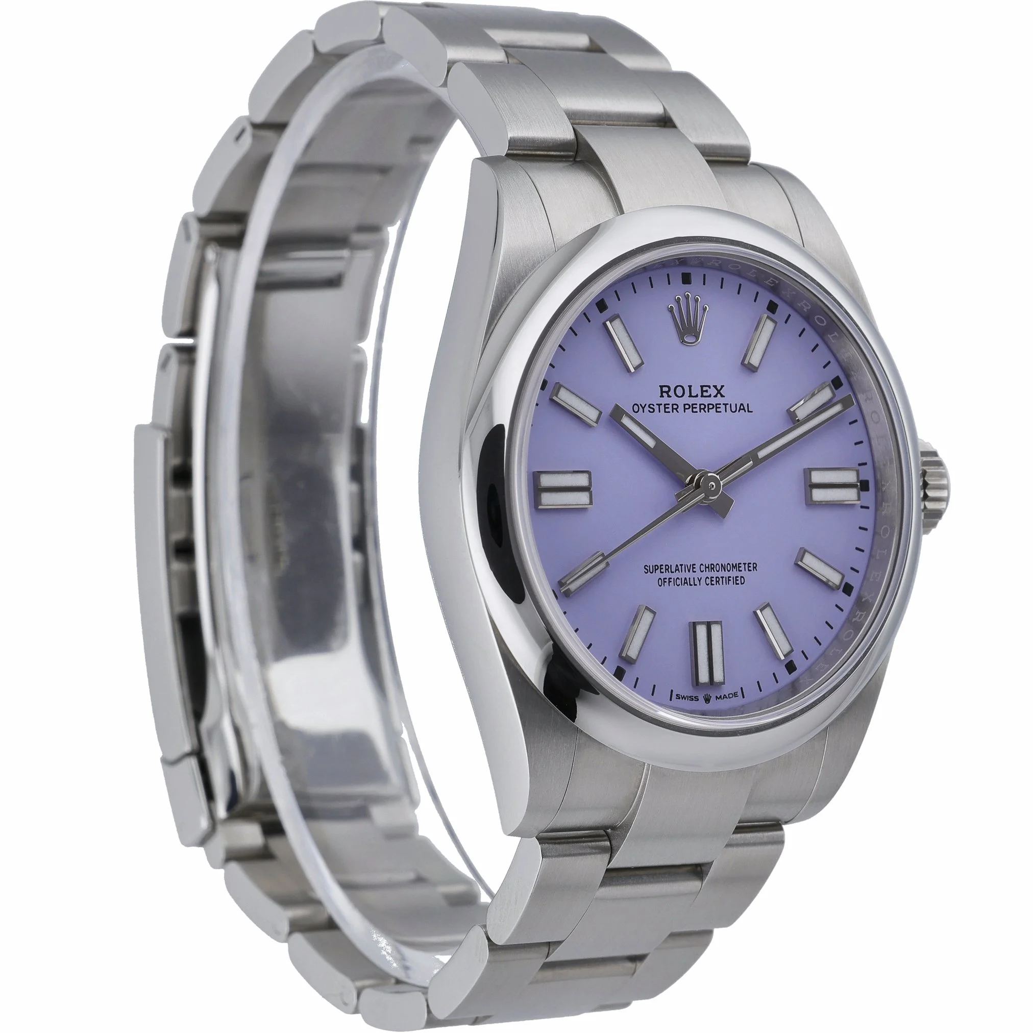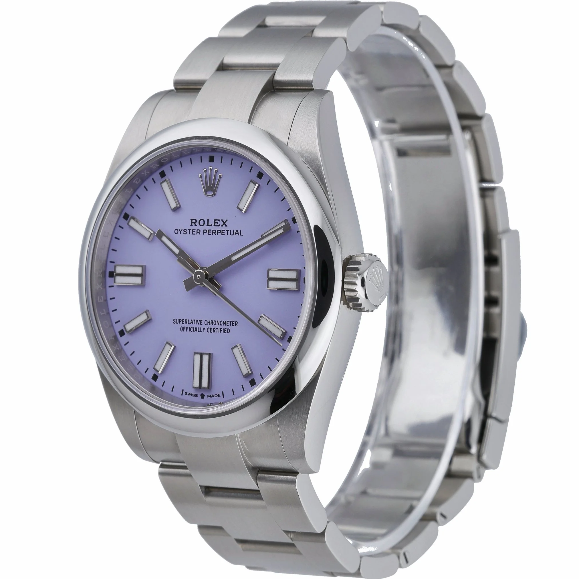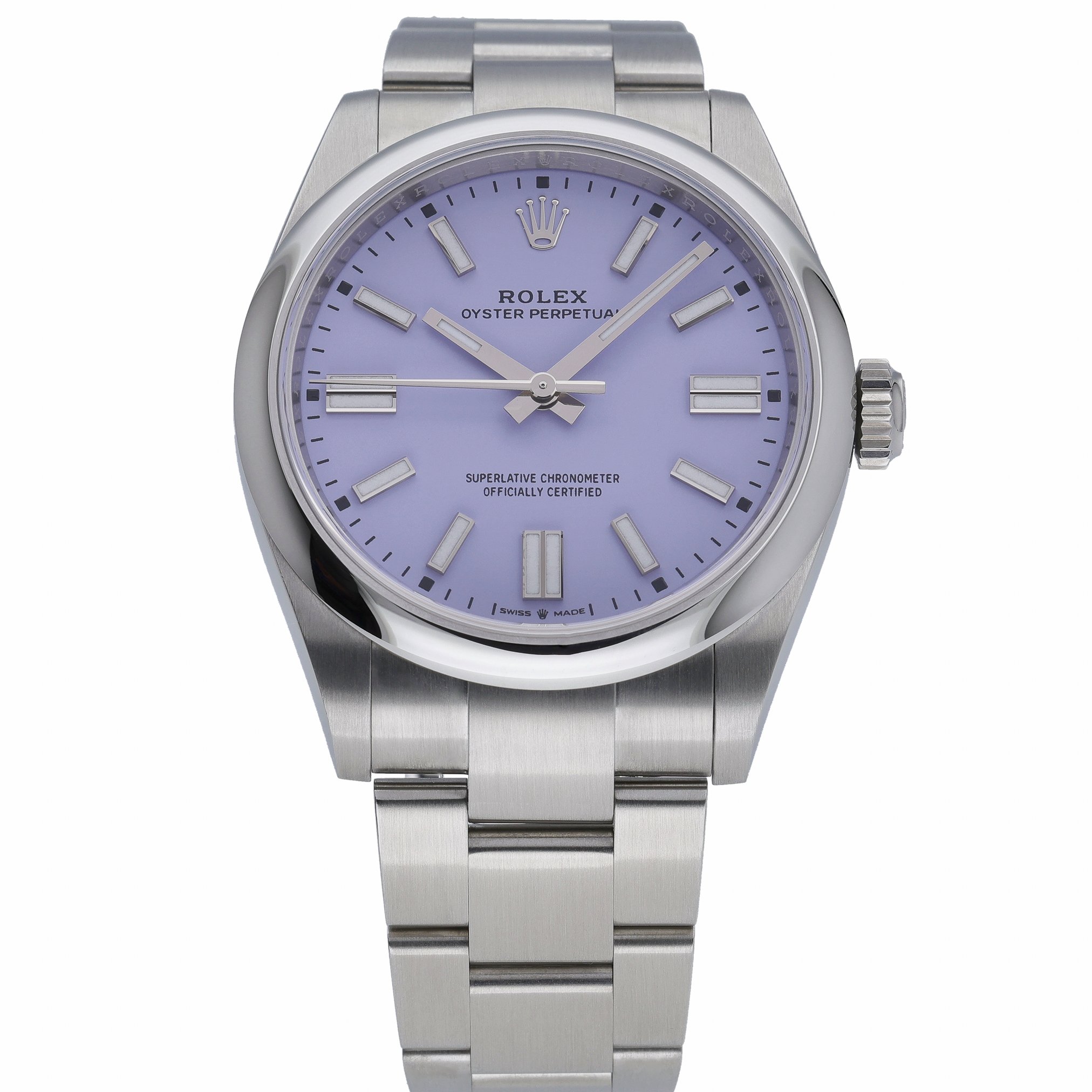 Presenting the Rolex Oyster Perpetual 41 (Model 134300), a new/unworn 2026 piece crafted in robust Oystersteel. Its refined lavender dial with baton hour markers sits beneath scratch-resistant sapphire crystal, framed by a sleek domed bezel. Powered by an automatic movement and water resistant to 100 meters, it’s engineered for reliable, everyday performance. The classic Oyster bracelet with Oysterclasp completes the timeless design. Supplied with Rolex box, original papers, and original white tag. Includes a 5-year manufacturer’s warranty from the 2026 date of manufacture. Case size: 41mm. BQ Ref: 53153. Prompt Delivery available and supported by our 14 Day Return Policy.