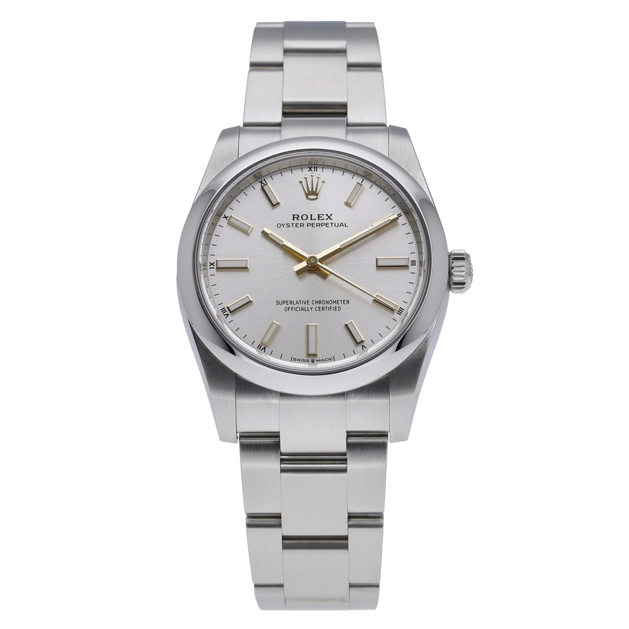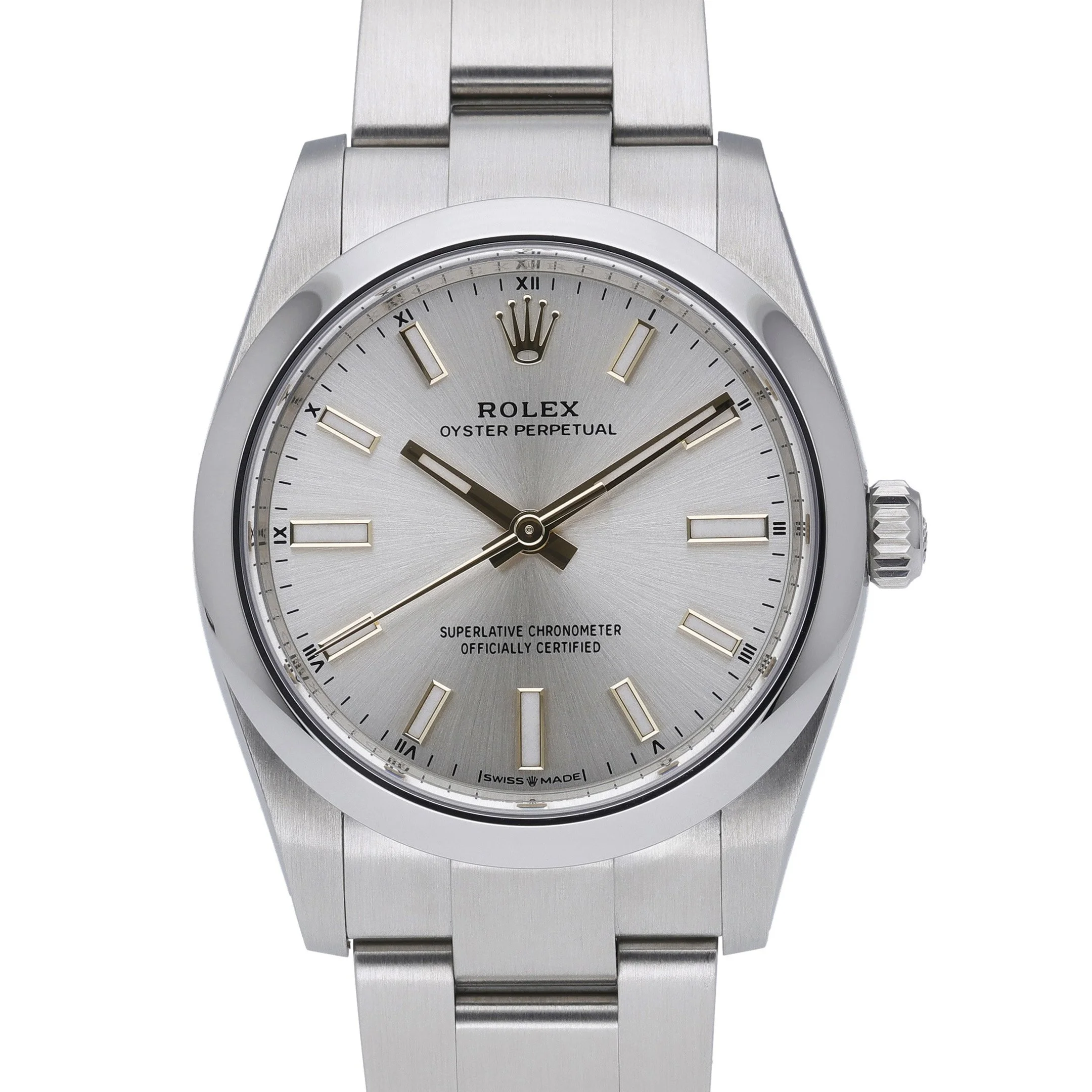 Introducing the Rolex Oyster Perpetual 34, reference 124200 (BQ Ref 52895), a 2024 example in excellent condition. Crafted in robust Oystersteel with a 34mm case, smooth domed bezel, and classic Oyster bracelet secured by an Oysterclasp, it balances everyday versatility with timeless Rolex design. The silver dial with baton hour markers is protected by sapphire crystal, while the automatic movement delivers reliable performance and 100m water resistance for confident daily wear. Supplied complete with Rolex box, original papers, and original white tag, this watch is covered by the 5-year manufacturer’s warranty running from its 2024 manufacture date. Ideal as a midsize option, it offers understated elegance, practicality, and immediate availability with Prompt Delivery and a 14 Day Return Policy—a refined, modern classic ready for any occasion.
