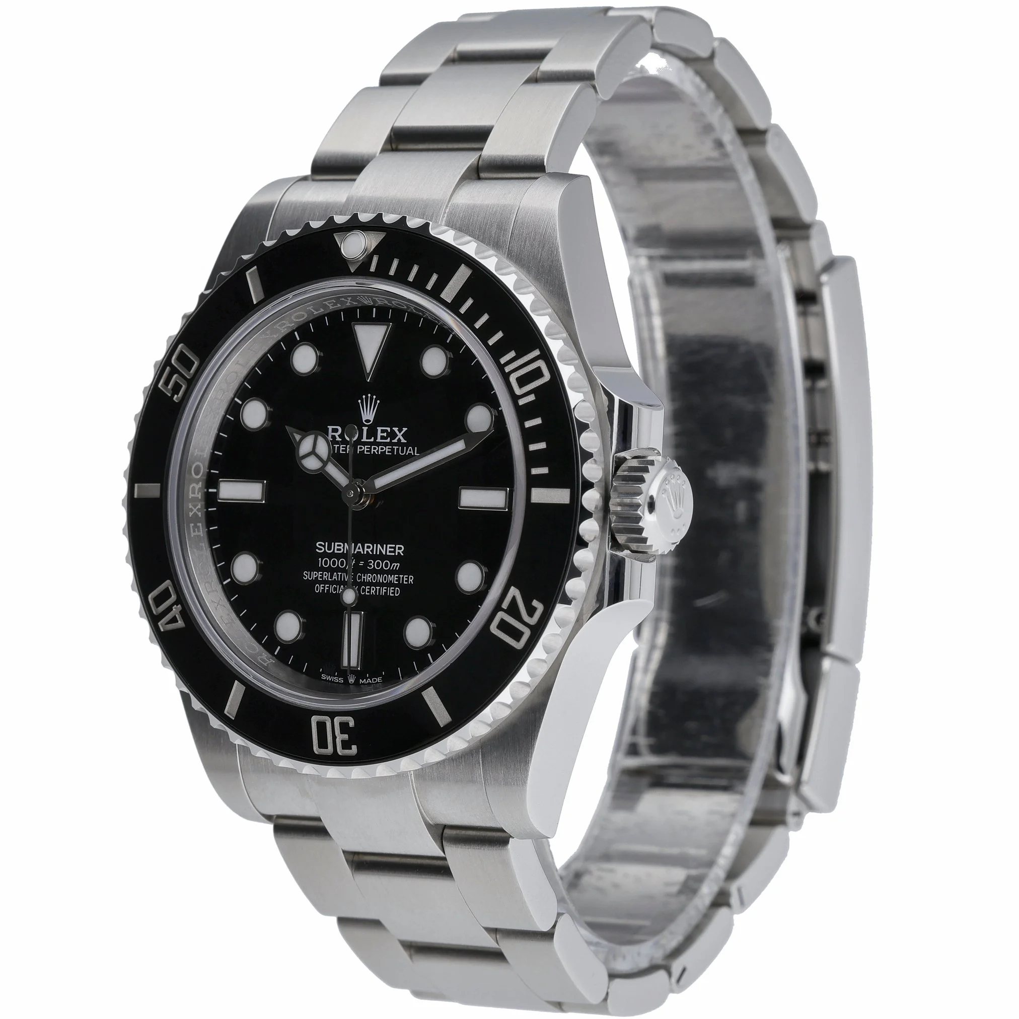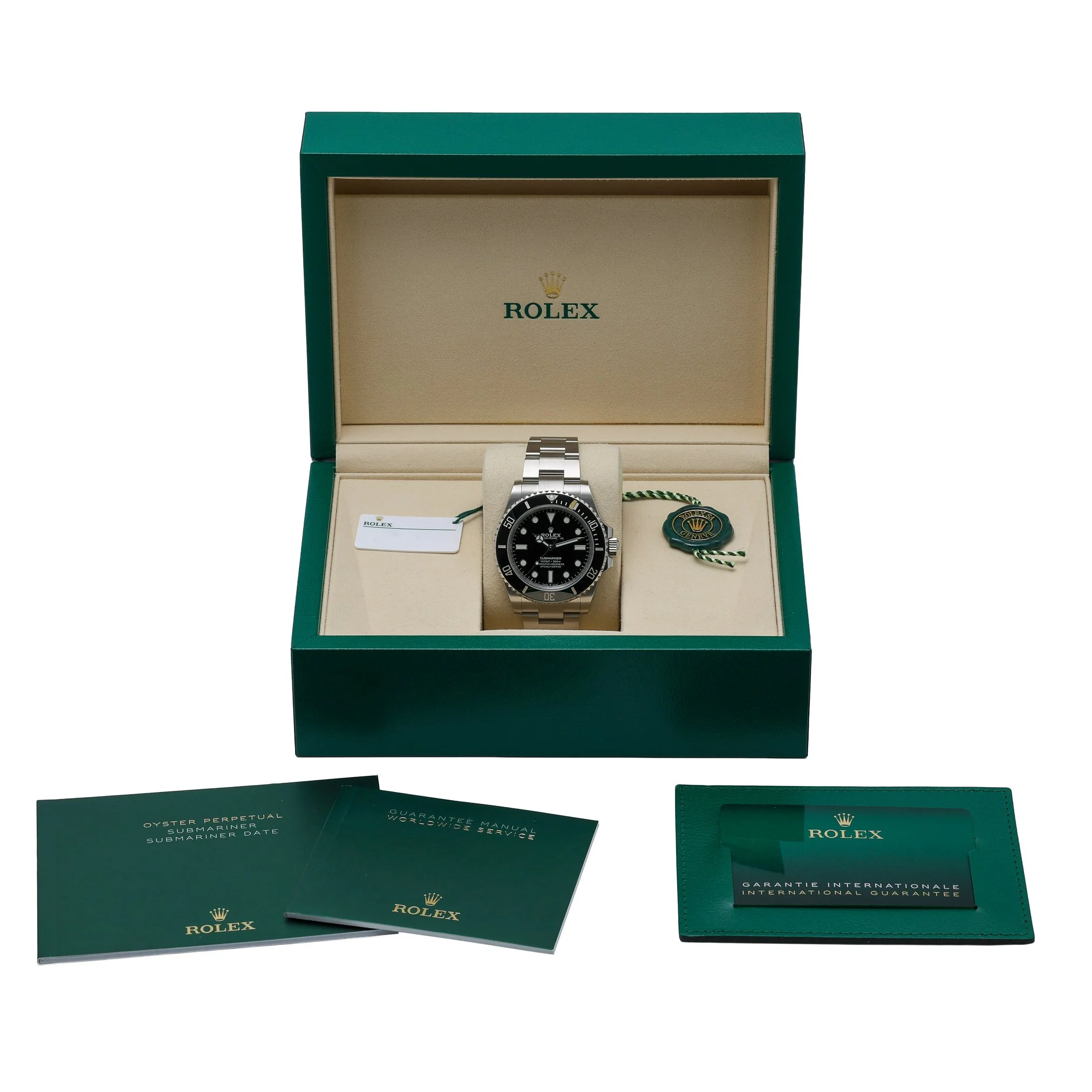 Discover the Rolex Submariner 124060 (BQ Ref. 53196), a 41mm icon in robust Oystersteel, presented new/unworn with box, original papers, and white tag. Powered by a precise automatic movement, this 2026 reference pairs a sleek black dial beneath scratch-resistant sapphire crystal with a unidirectional rotatable bezel for dependable dive timing. The Oyster bracelet and secure Oysterlock clasp ensure comfort and confidence, while 300m water resistance underscores its professional capability. Offered with next day delivery and a 14-day return policy, this Submariner is covered by a 5-year Rolex manufacturer’s warranty from the date of manufacture. A timeless, versatile tool watch refined for everyday wear.