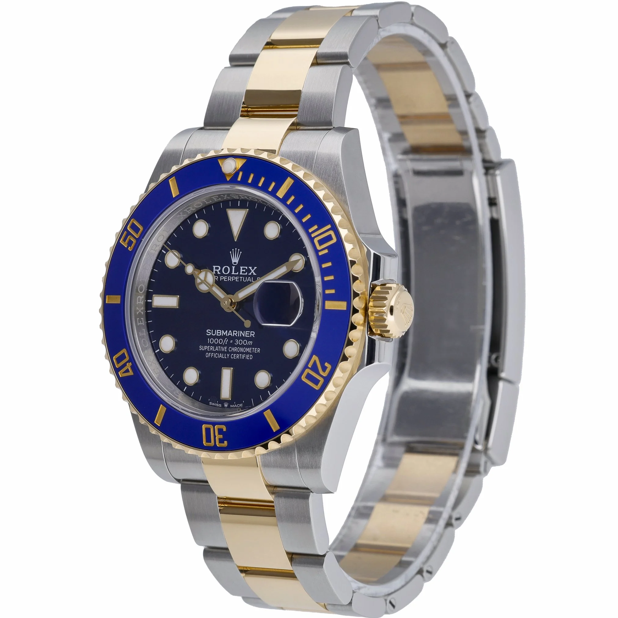 The Rolex Submariner 126613LB “Bluesy” pairs iconic dive-watch pedigree with refined luxury. This 41mm model in steel and yellow gold features a striking blue dial beneath scratch-resistant sapphire crystal, a unidirectional rotatable bezel, and the robust Oyster bracelet secured by an Oysterlock clasp. Powered by an automatic movement and water resistant to 300M, it’s built for precision and durability. Year of manufacture: 2025. Presented in excellent condition, complete with Rolex box, original papers, and original white tag. Covered by the Rolex 5-year manufacturer’s warranty from the 2025 date of manufacture. BQ Ref: 52846. Enjoy next day delivery and a 14 day return policy for added peace of mind.