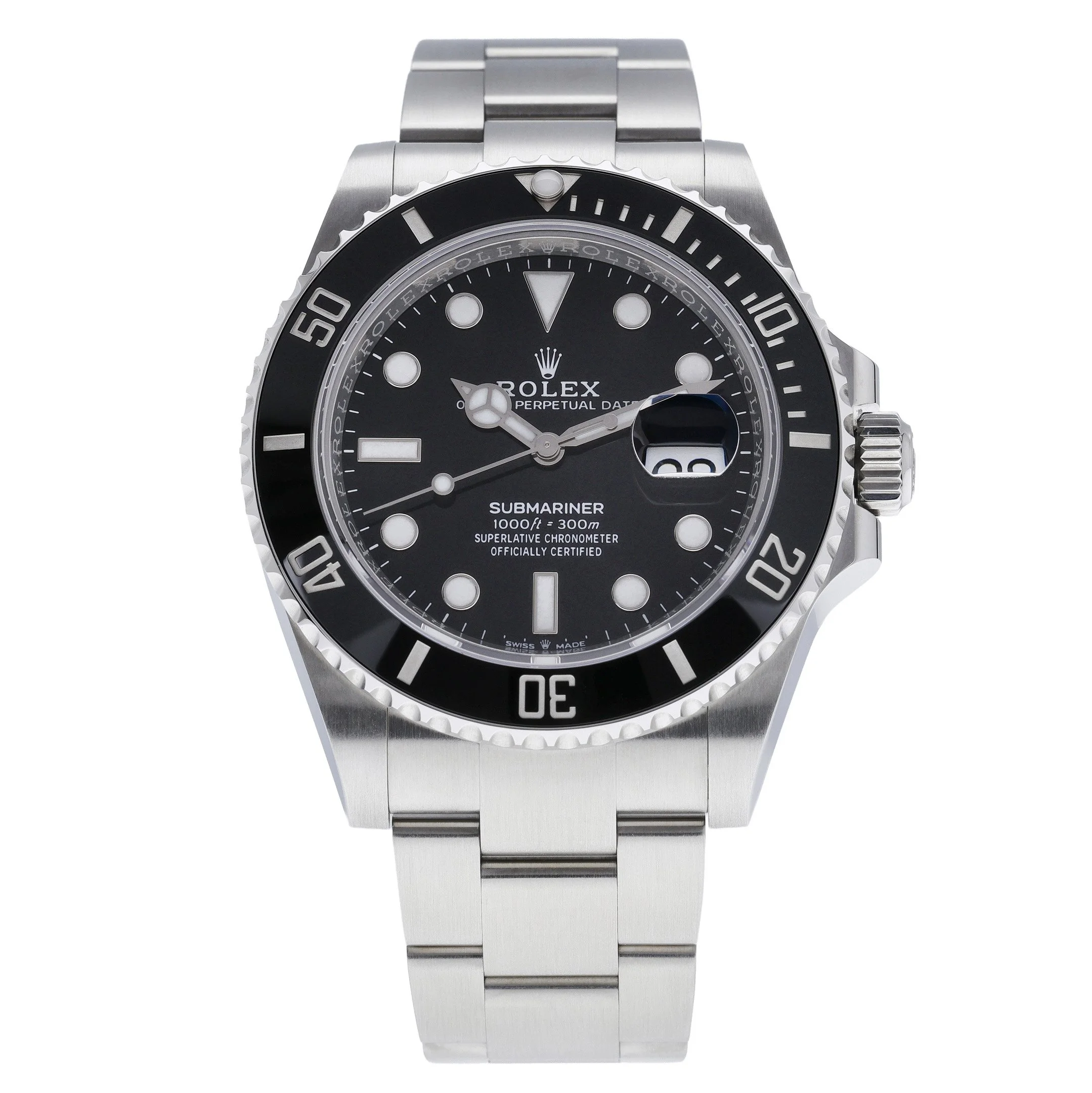 Presenting the Rolex Submariner 126610LN (BQ Ref 52659), a 2024 example in excellent condition. Crafted in durable Oystersteel with a 41mm case and Oyster bracelet secured by an Oysterlock clasp, it features a black dial under sapphire crystal and a unidirectional rotatable bezel for precise timing. Powered by an automatic movement and water resistant to 300M, this Submariner embodies the performance and reliability of Rolex’s iconic diver. Supplied complete with its box, original papers, and white tag, and covered by a 5-year manufacturer’s warranty from the 2024 date of manufacture. Enjoy next day delivery and shop with confidence with our 14-day return policy.