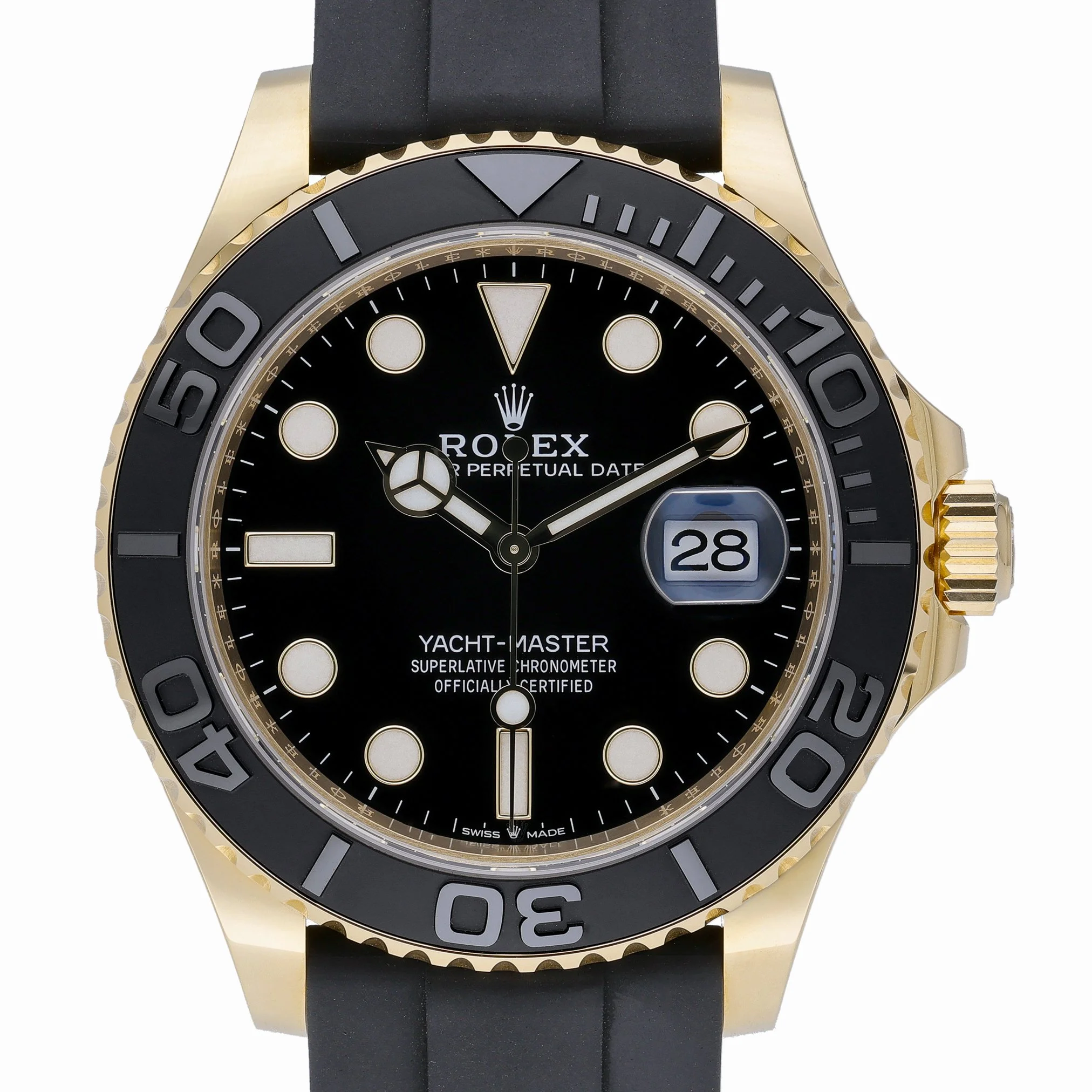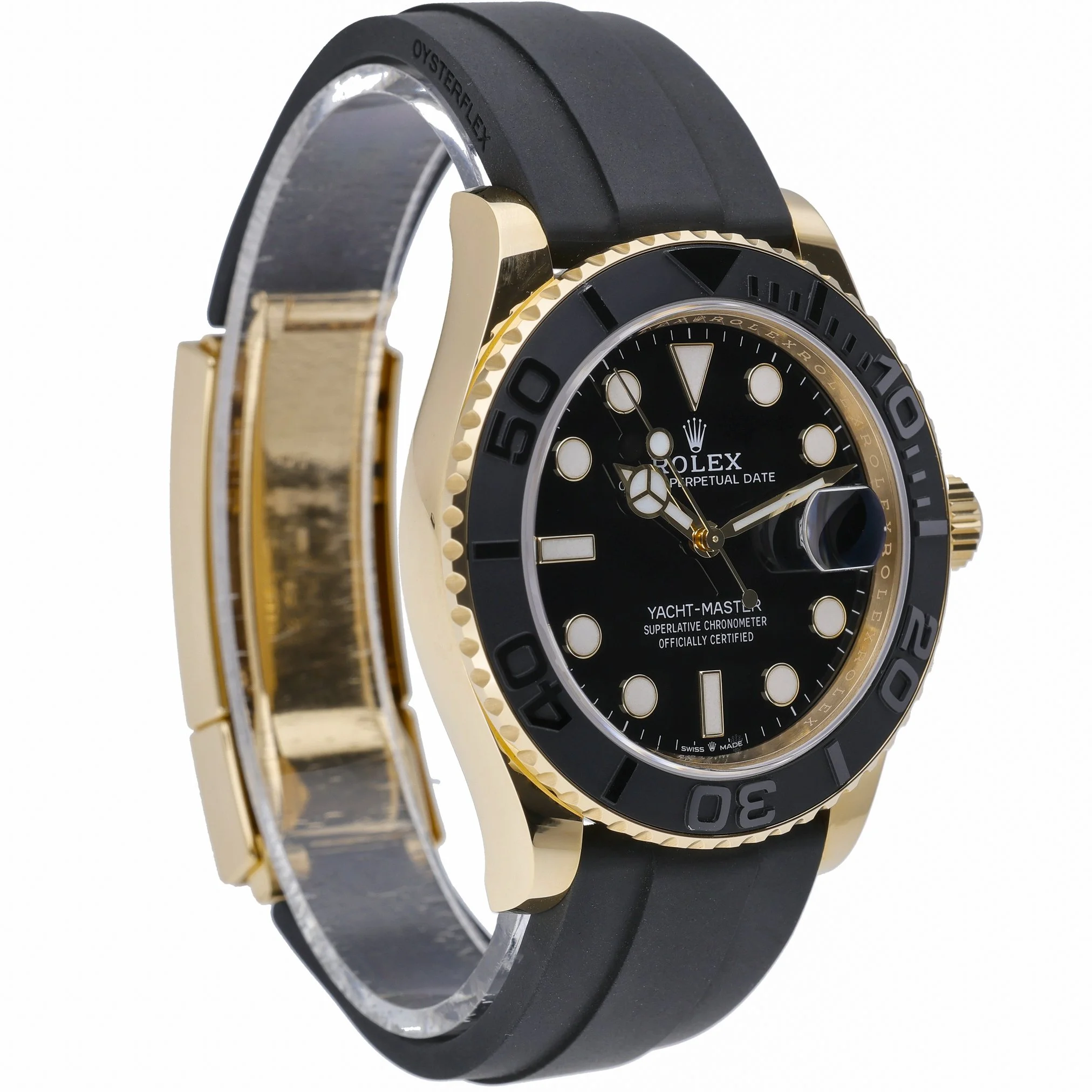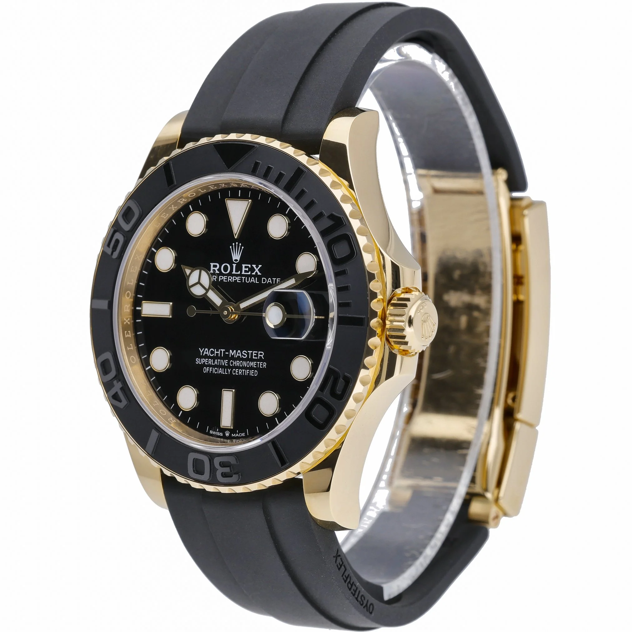 Experience the Rolex Yacht-Master 42 (Ref. 226658), a 2023 gents model crafted in 18ct yellow gold with a 42mm case and bidirectional rotatable bezel. Presented in excellent condition, it features a black dial beneath scratch-resistant sapphire crystal and is powered by a reliable automatic movement. The Oysterflex rubber bracelet with folding clasp offers exceptional comfort and a refined sport aesthetic, while 100 m water resistance readies it for life on and off the water. Supplied with original Rolex box, papers, and white tag, and referenced under our BQ Ref 53104. Covered by the 5-year manufacturer’s warranty from the date of manufacture (2023). Enjoy next day delivery and a 14-day return policy.