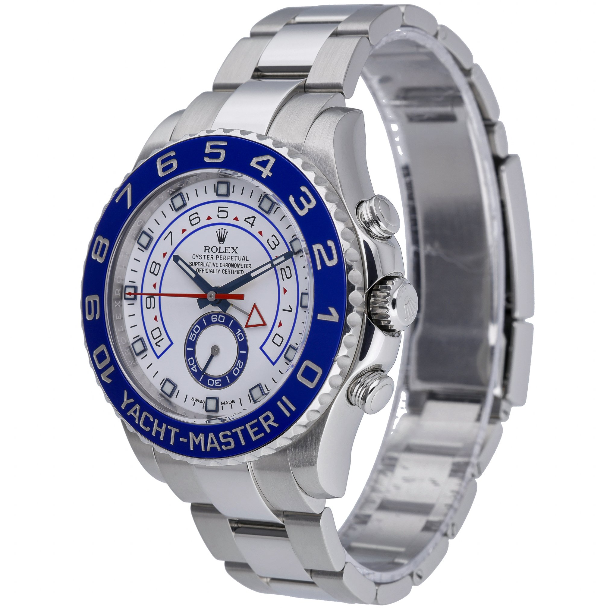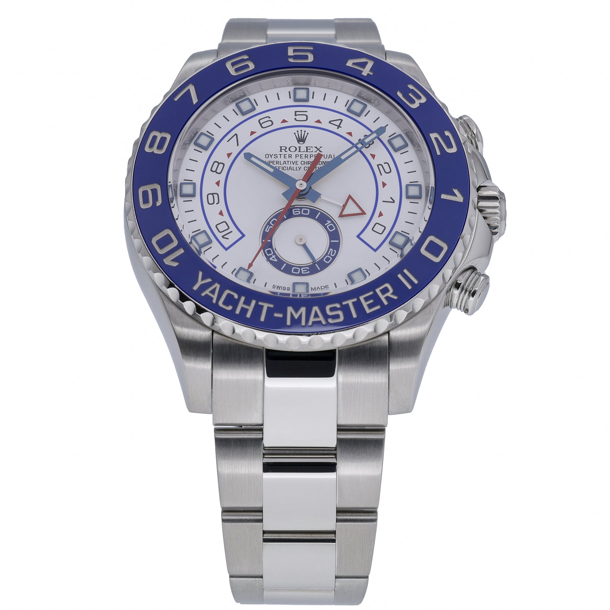 Rolex Yacht-Master II, reference 116680 (BQ Ref 52607), is a commanding 44mm regatta chronograph crafted in robust Oystersteel. Presented in excellent condition, it features a crisp white dial beneath scratch‑resistant sapphire crystal, a bidirectional rotatable bezel, and the secure Oysterlock clasp on an Oyster bracelet for confident wear. Powered by a reliable automatic movement and water resistant to 100M, it blends professional capability with unmistakable Rolex style. This 2016 example is supplied with its Rolex box, original papers, and white tag. Enjoy added peace of mind with a 2 Year Warranty, a 14 Day Return Policy, and Prompt Delivery.