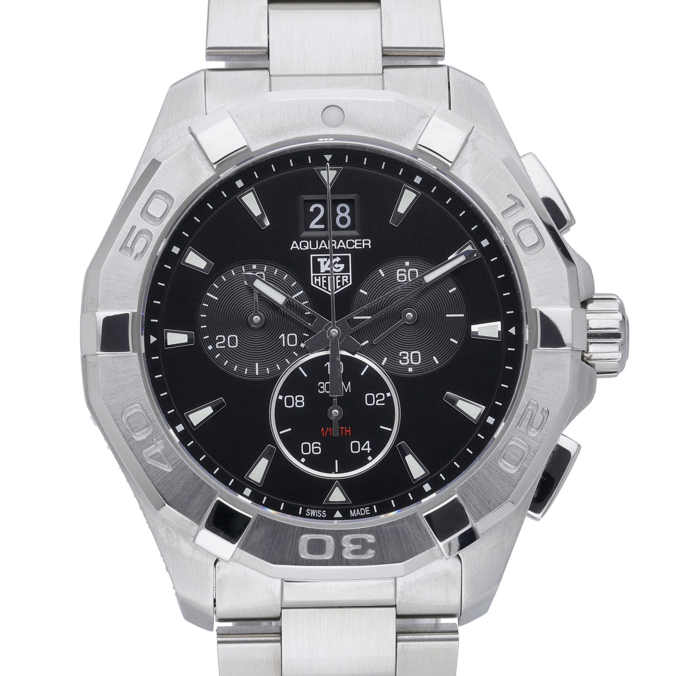 Engineered for precision and endurance, the TAG Heuer Aquaracer 300M (CAY1110) combines a 43mm stainless steel case and bracelet with a black chronograph dial under scratch‑resistant sapphire crystal. Powered by a reliable quartz movement, it features a unidirectional rotating bezel, 300M water resistance, and a secure folding clasp—equally at home underwater or in the city. Manufactured in 2023, this gents model is offered in excellent condition and supplied with its box and original papers. Includes a 2-year warranty, next day delivery, and a 14-day return policy. BQ Ref: 52836.