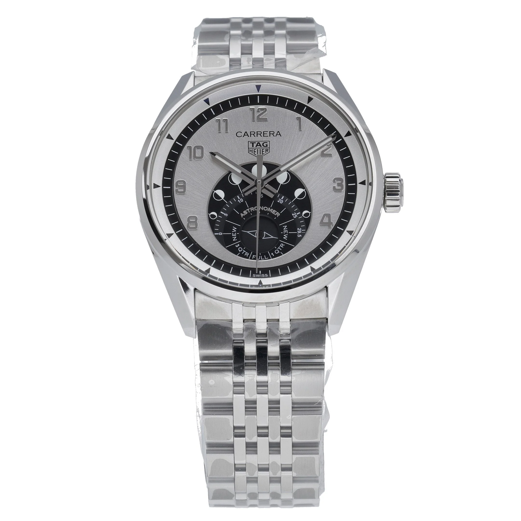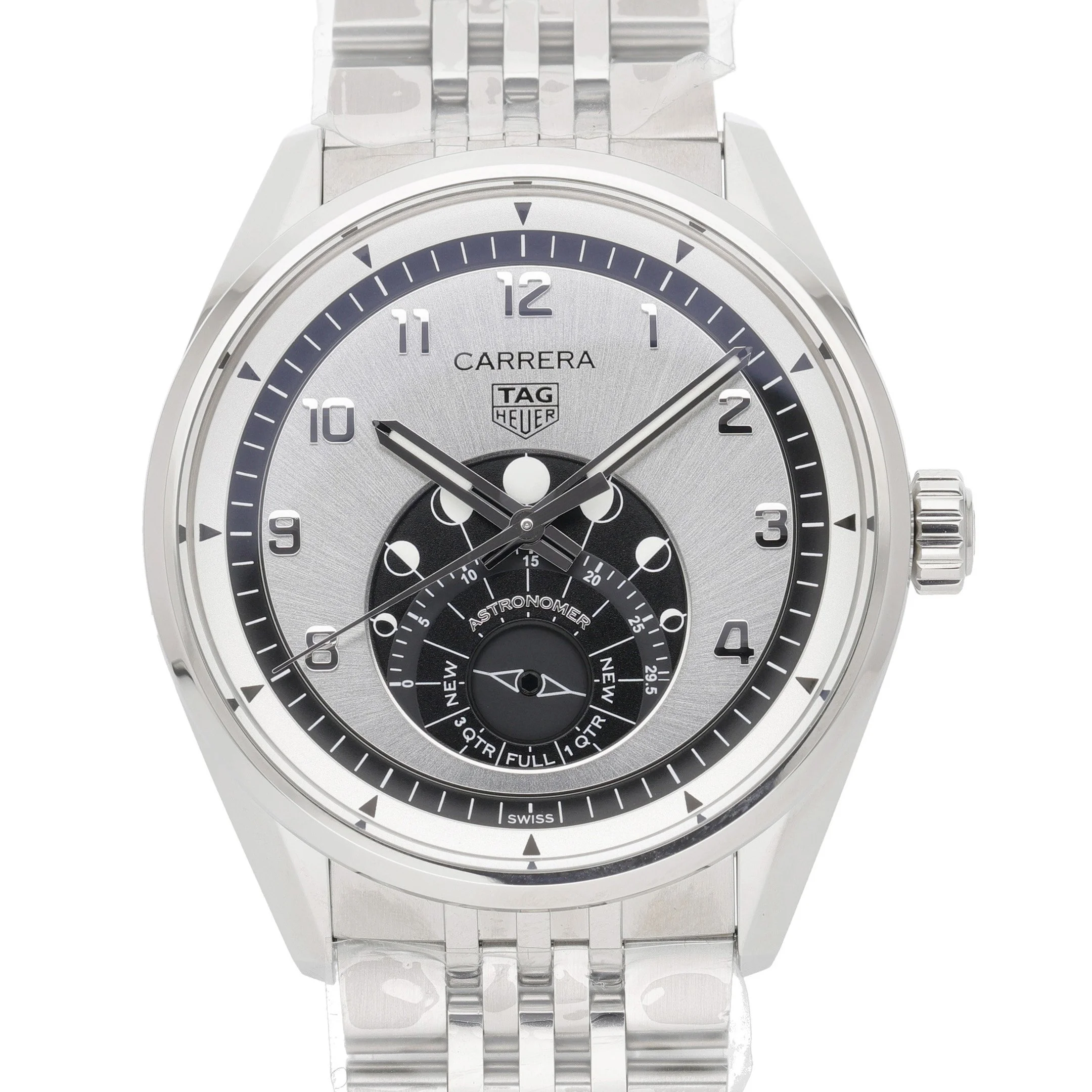 Elevate your collection with the TAG Heuer Carrera Astronomer (WBX2110). This new/unworn 2025 gents timepiece features a 39mm stainless-steel case and matching bracelet with a clean, plain bezel. A refined silver Arabic dial sits beneath sapphire crystal, powered by a precise automatic movement. Practicality meets elegance with 100M water resistance and a secure folding clasp, making it ideal for everyday wear. Supplied with TAG Heuer box and original papers, and backed by a 2-year warranty. Prompt Delivery available and a 14-day return policy for peace of mind. BQ Ref: 53193.