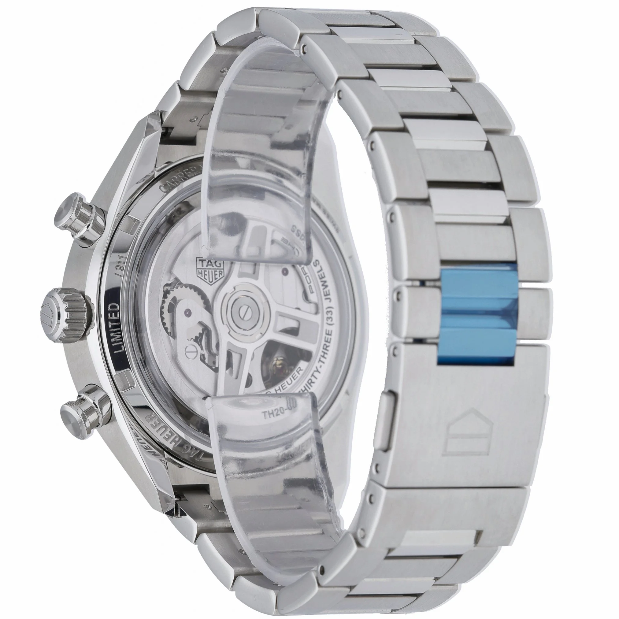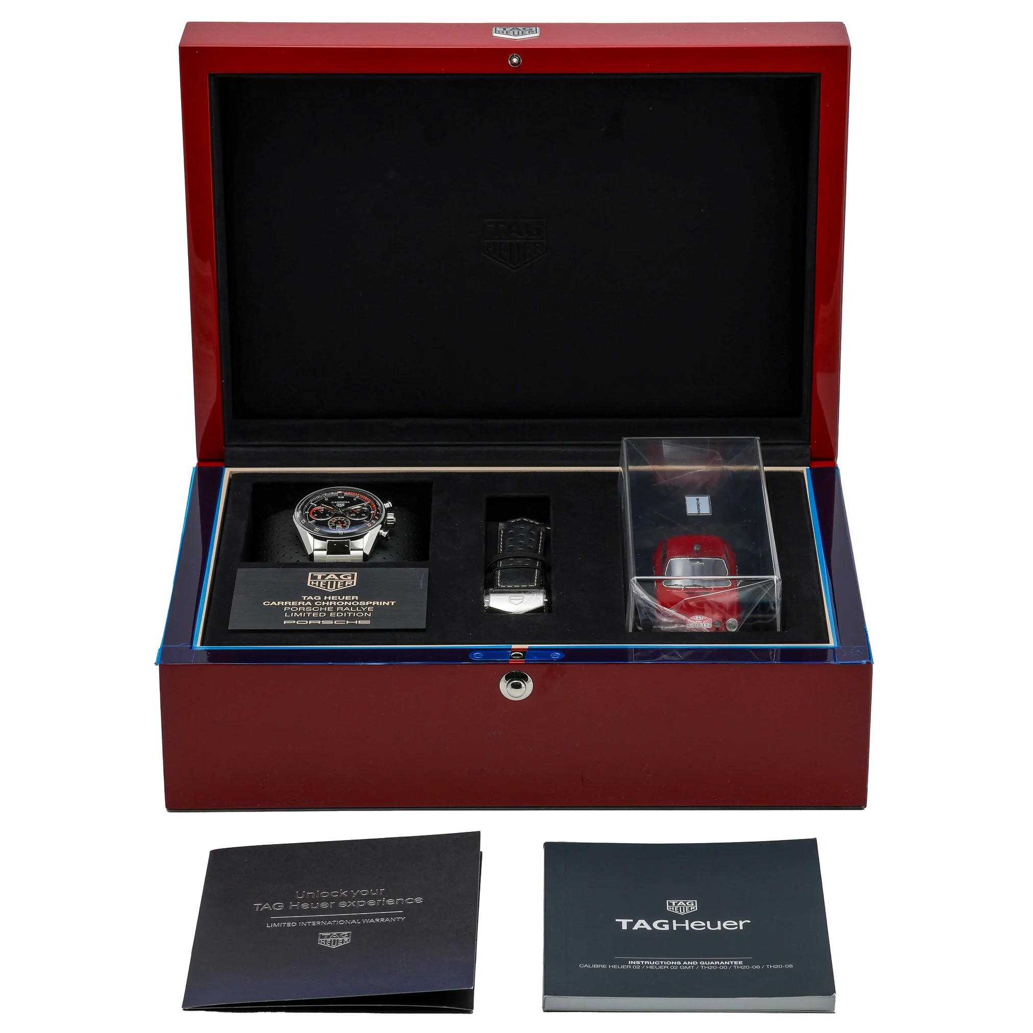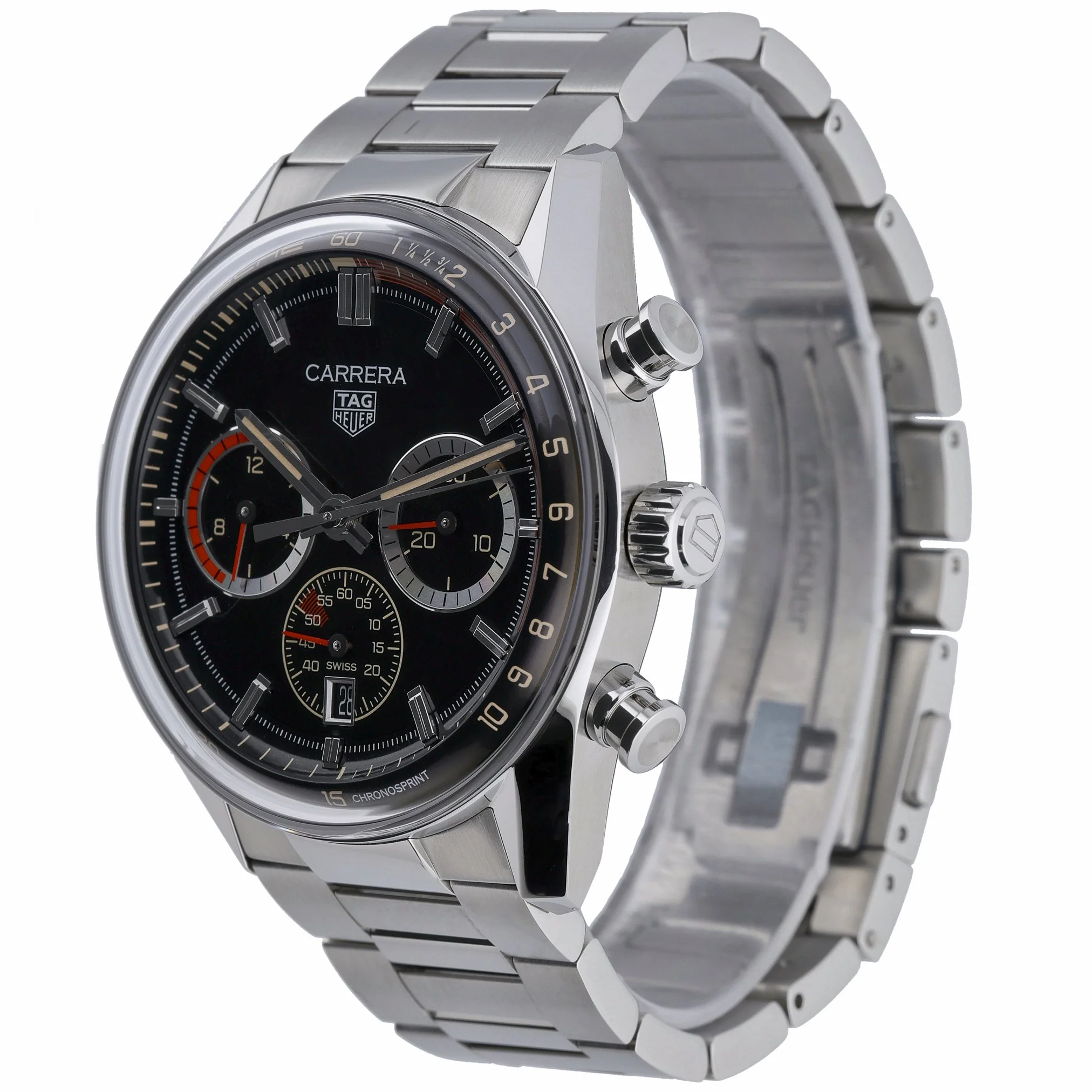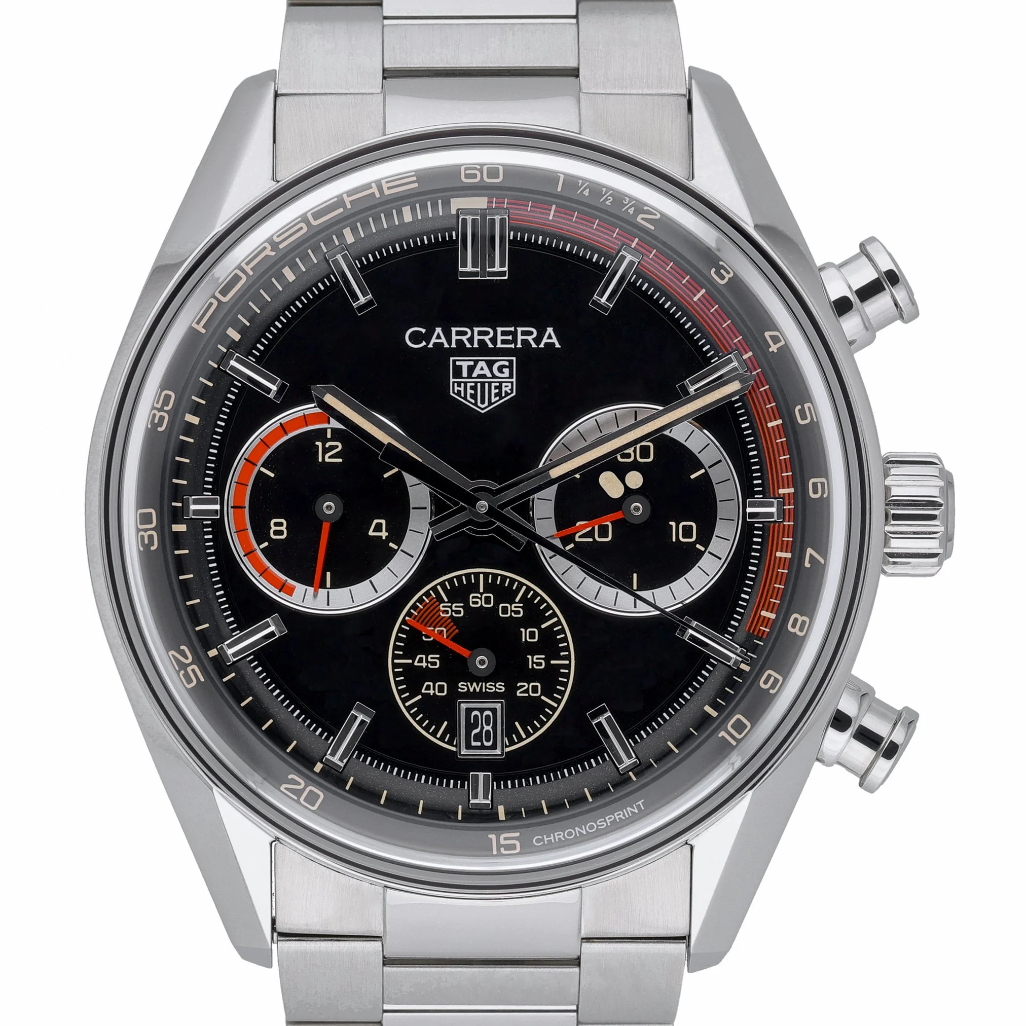 Celebrate motorsport heritage with the TAG Heuer Carrera Porsche Chronograph (CBS2015), presented in excellent condition. This gents 42mm stainless steel timepiece pairs a black chronograph dial with a tachymetric bezel for precise timing, all protected by scratch-resistant sapphire crystal. Powered by a dependable automatic movement and water resistant to 100M, it’s engineered for performance and daily wear. The robust steel bracelet with folding clasp ensures secure comfort. Year of manufacture: 2025. Supplied with original box and papers, and backed by a 2 Year Warranty. BQ Ref: 53471. Enjoy next day delivery and a 14 day return policy.