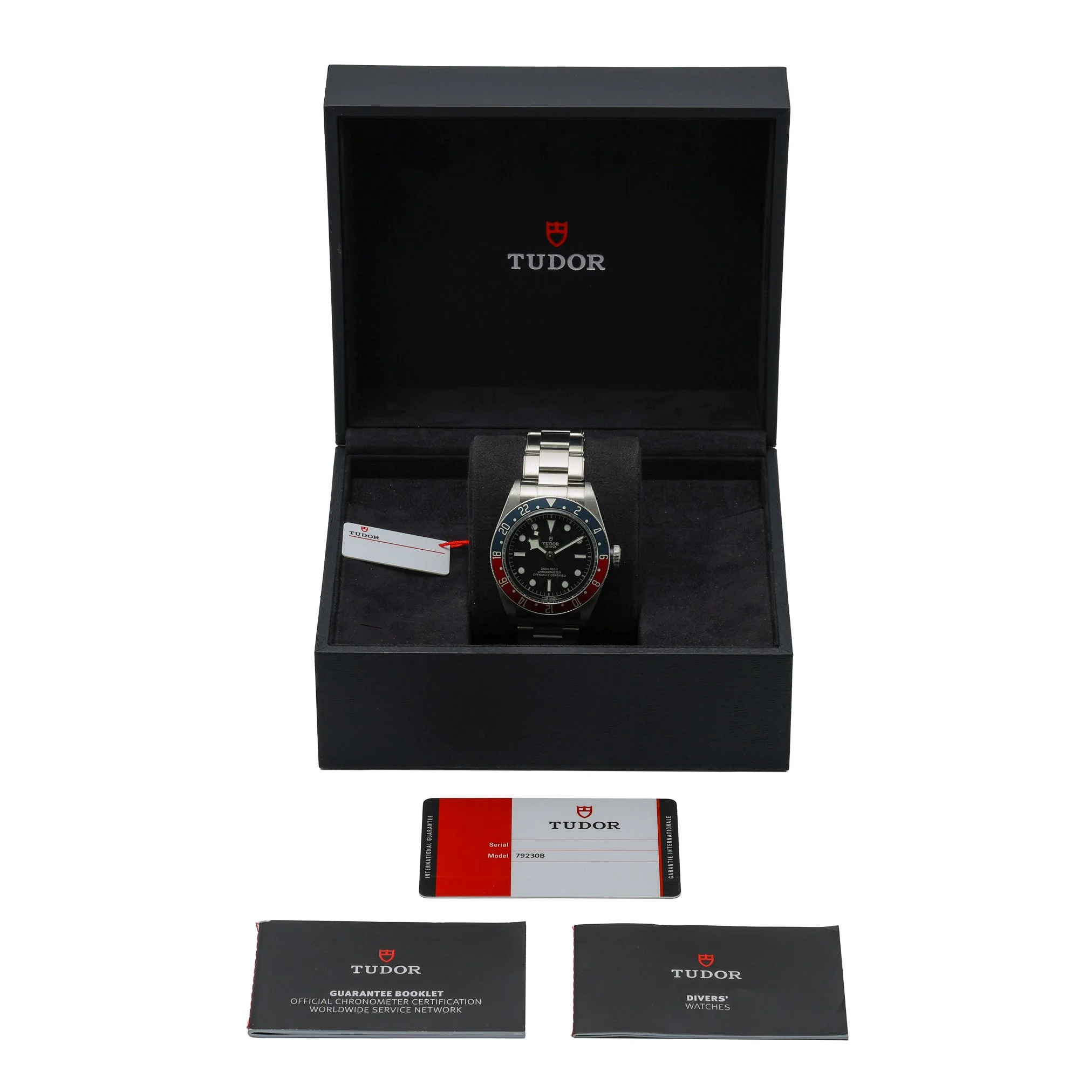 Discover the Tudor Heritage Black Bay, ref. 79230B—an iconic 41mm steel diver’s watch powered by a reliable automatic movement. Its unidirectional rotatable bezel frames a clean black dial protected by sapphire crystal, while 200M water resistance readies it for everyday wear and adventure alike. Presented on a solid steel bracelet with a secure folding clasp, this 2019 example is in excellent condition. Supplied with its Tudor box, original papers, and original green tag. Backed by our 2 Year Warranty and a 14 Day Return Policy, with Prompt Delivery available for swift, secure shipping. BQ Ref: 52965.