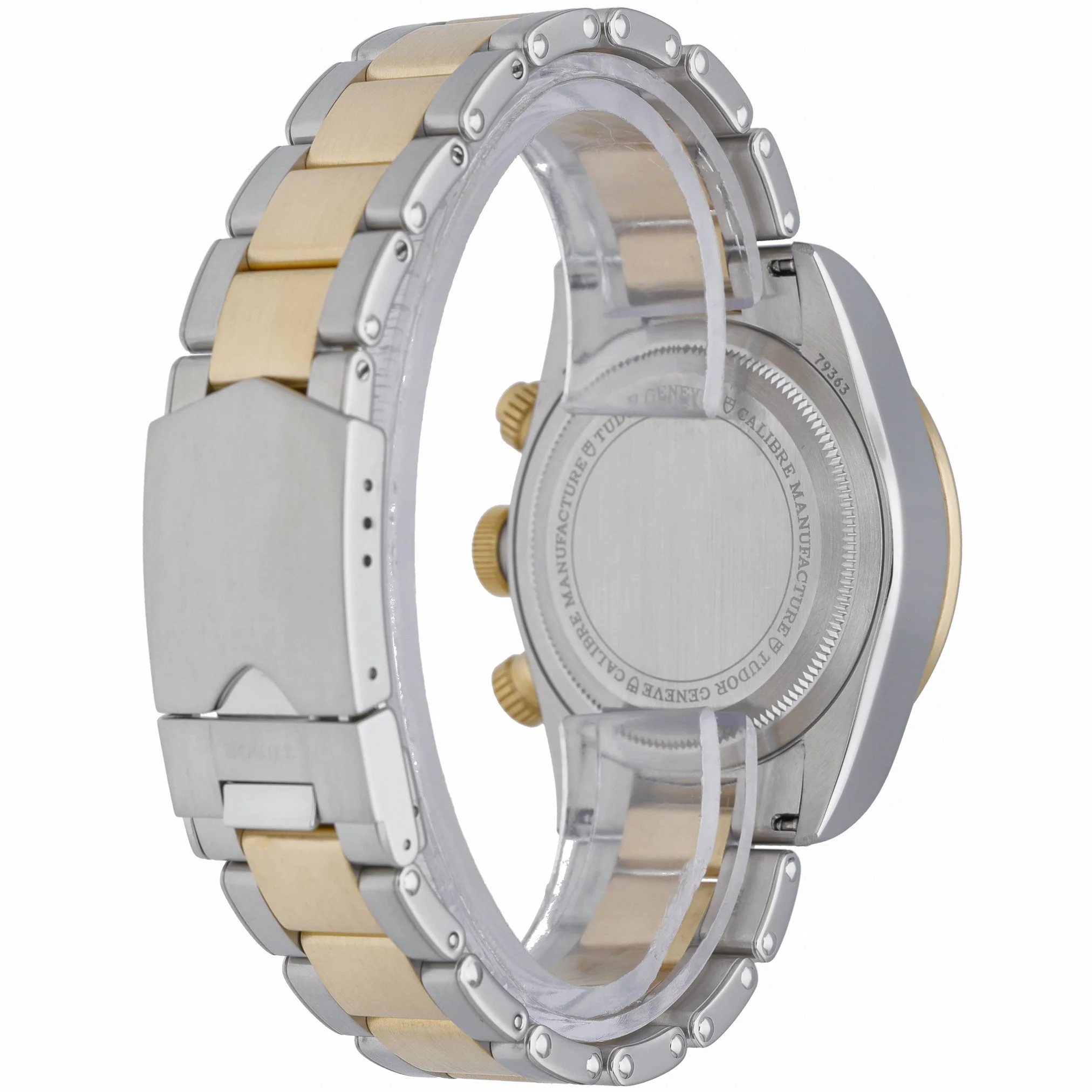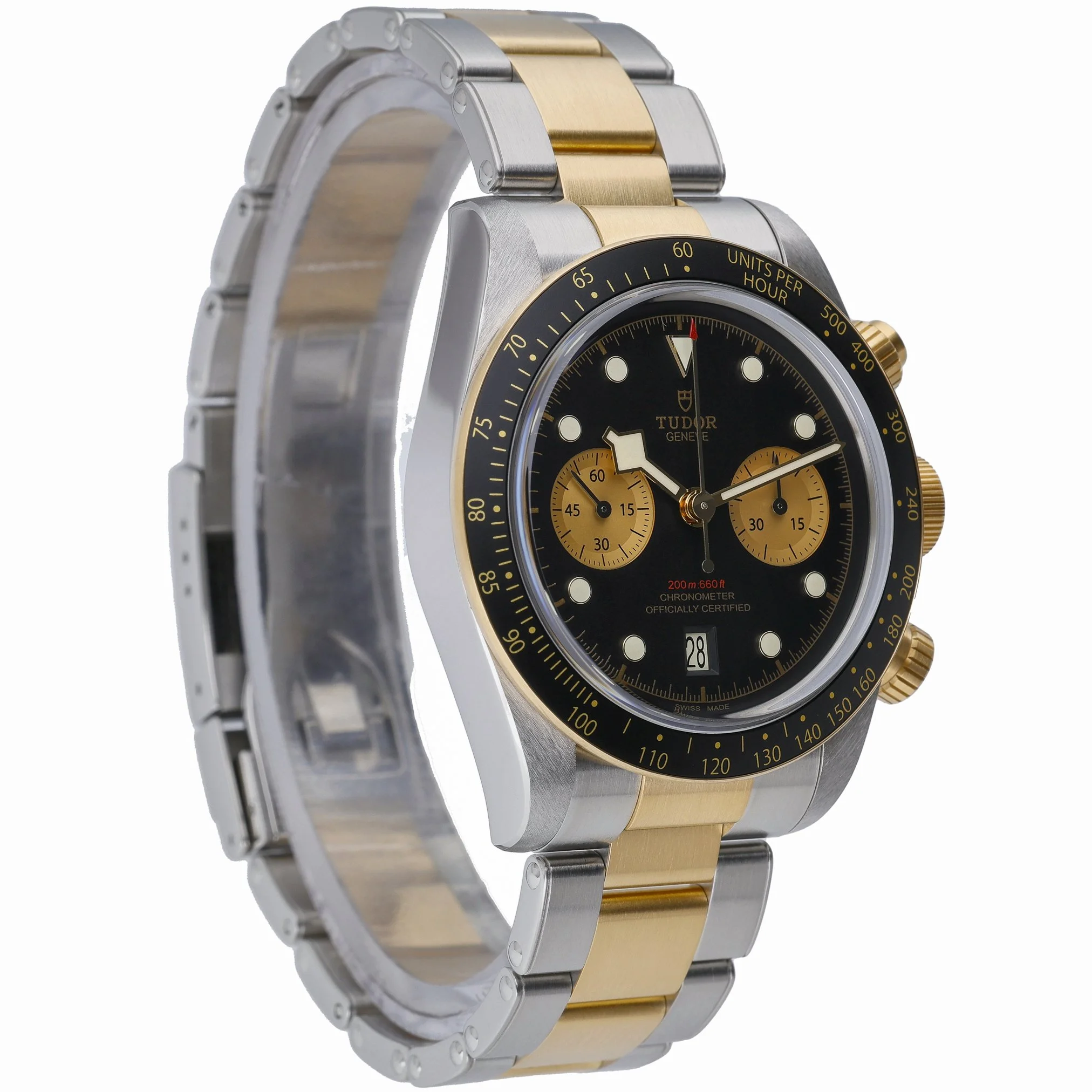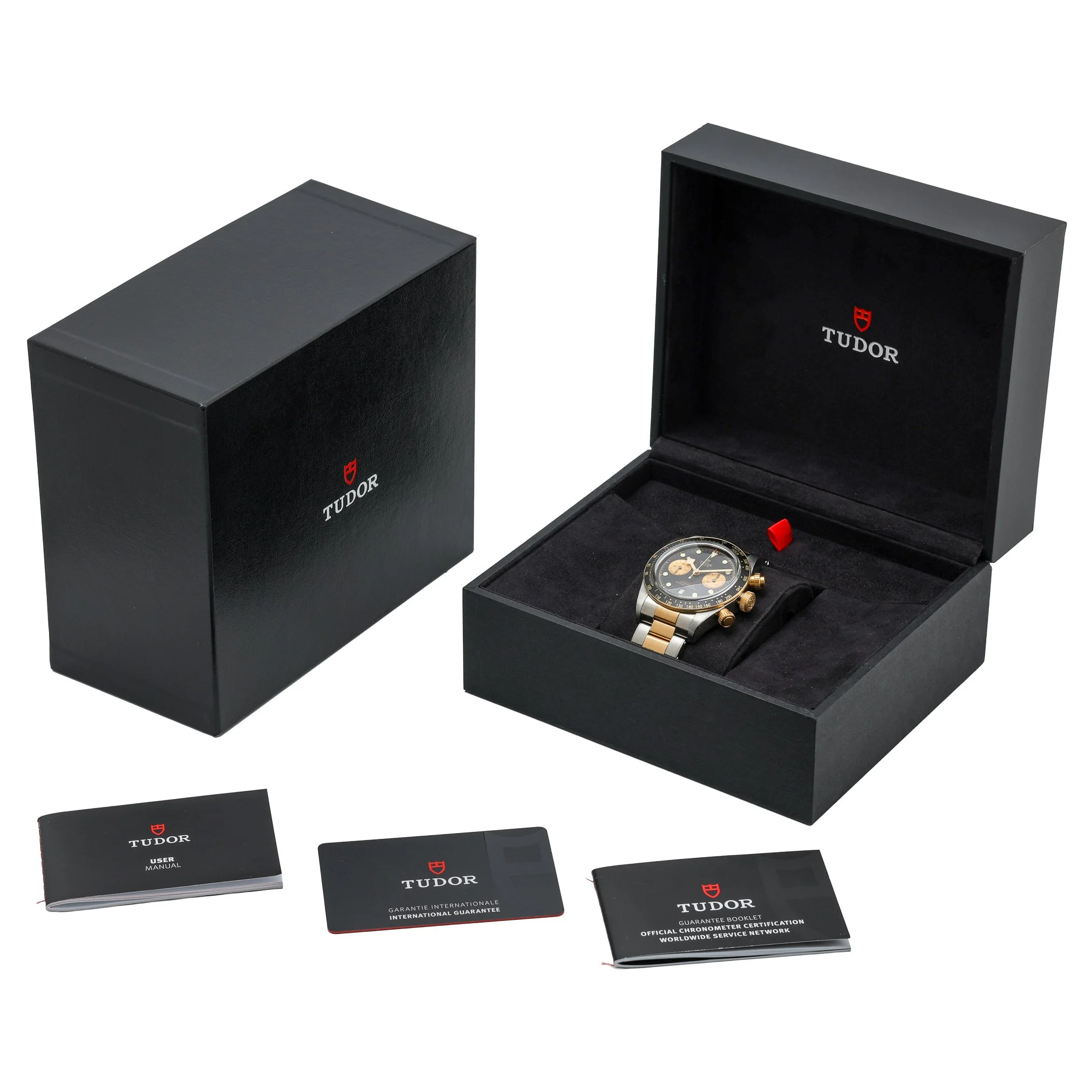 Iconic dive-watch heritage meets motorsport timing in the Tudor Black Bay Chrono S&G (BQ Ref 53162). This 41mm 2025 model pairs a robust steel case with yellow gold accents and a black bi-compax chronograph dial, protected by scratch-resistant sapphire crystal and framed by a tachymetric scale bezel. Powered by a dependable automatic movement and water resistant to 20 ATM, it’s engineered for everyday performance. The two-tone steel and yellow gold bracelet with folding clasp offers a refined, versatile fit. Presented in excellent condition, this watch is supplied with its original Tudor box and papers. Enjoy added peace of mind with our 2 Year Warranty, 14 Day Return Policy, and Prompt Delivery.