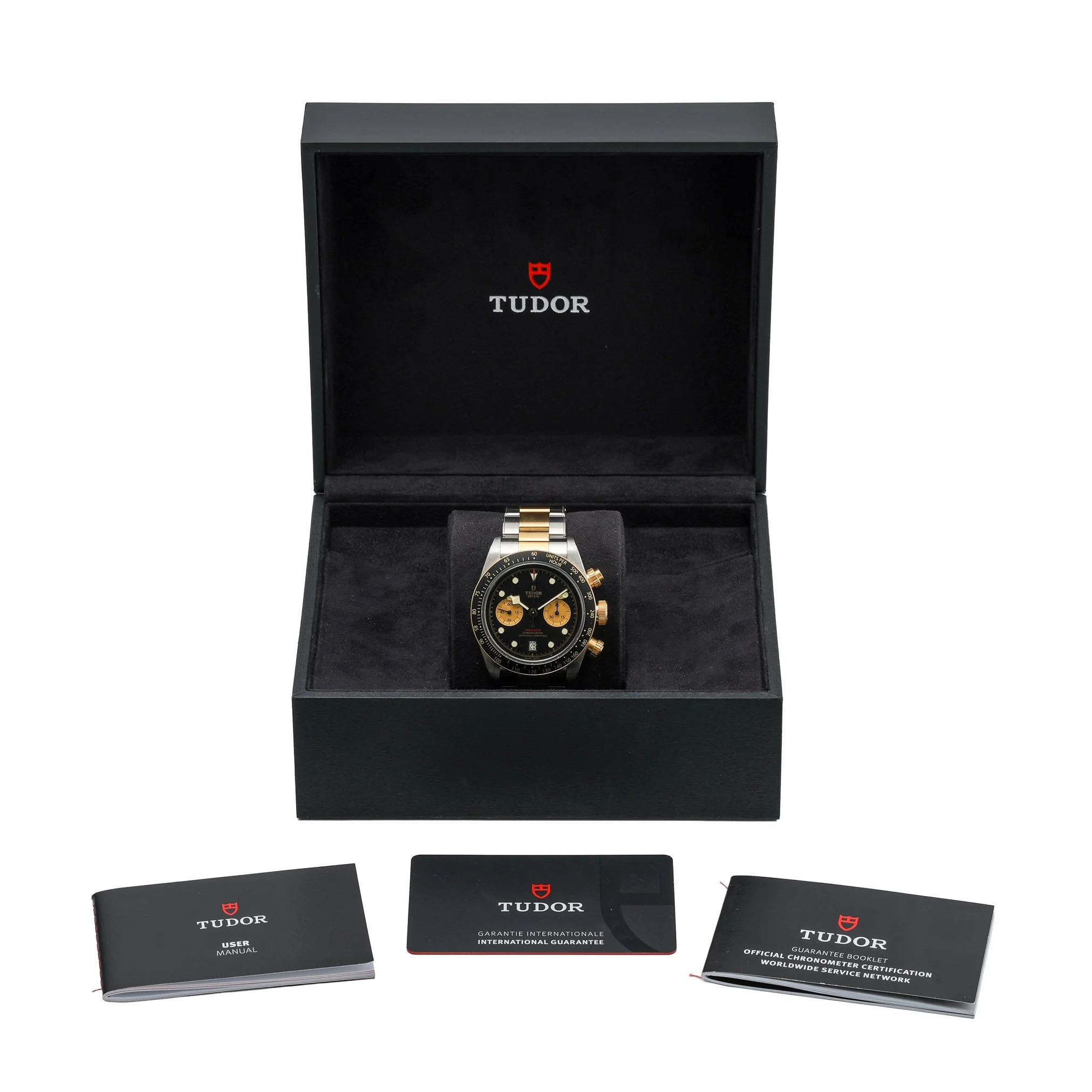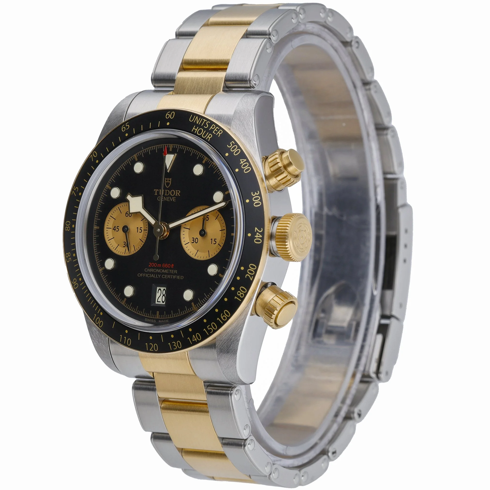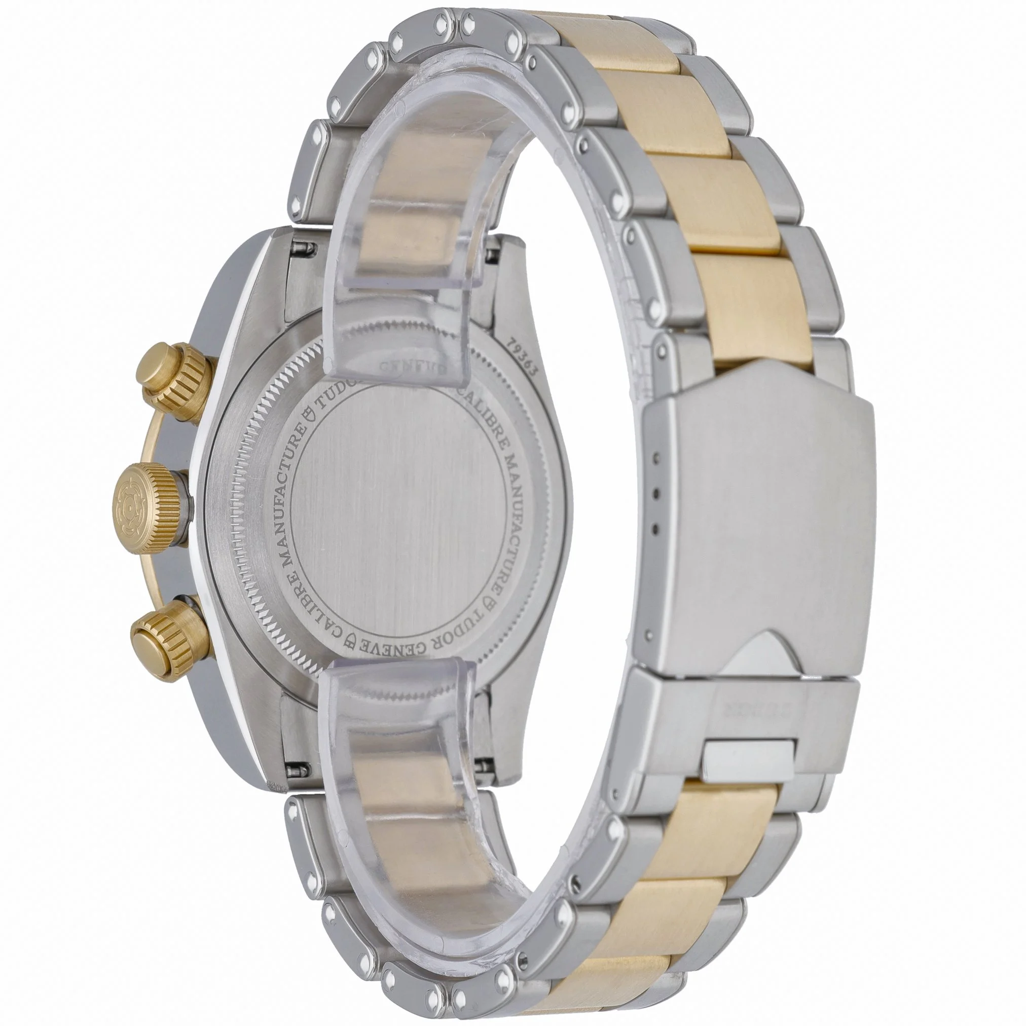 Iconic dive-watch heritage meets motorsport timing in the Tudor Black Bay Chrono S&G (BQ Ref 53162). This 41mm 2025 model pairs a robust steel case with yellow gold accents and a black bi-compax chronograph dial, protected by scratch-resistant sapphire crystal and framed by a tachymetric scale bezel. Powered by a dependable automatic movement and water resistant to 20 ATM, it’s engineered for everyday performance. The two-tone steel and yellow gold bracelet with folding clasp offers a refined, versatile fit. Presented in excellent condition, this watch is supplied with its original Tudor box and papers. Enjoy added peace of mind with our 2 Year Warranty, 14 Day Return Policy, and Prompt Delivery.