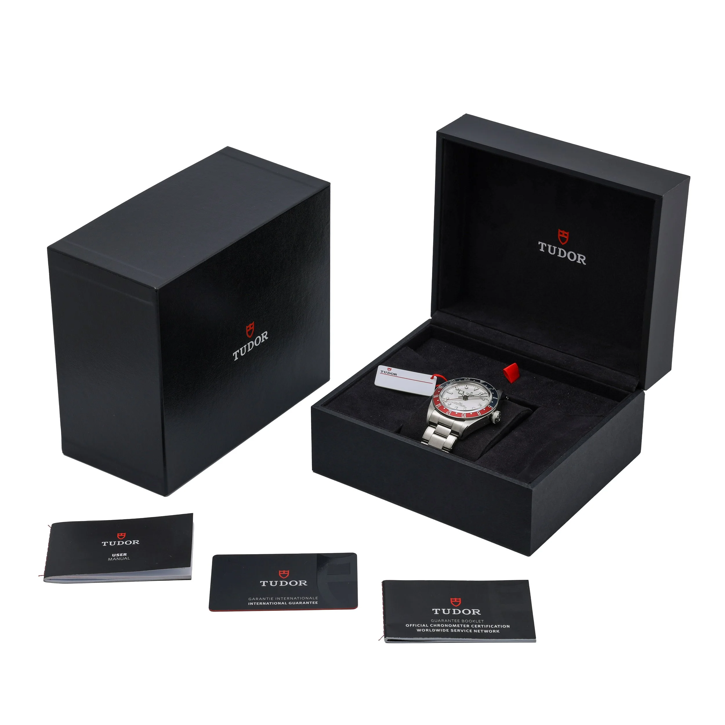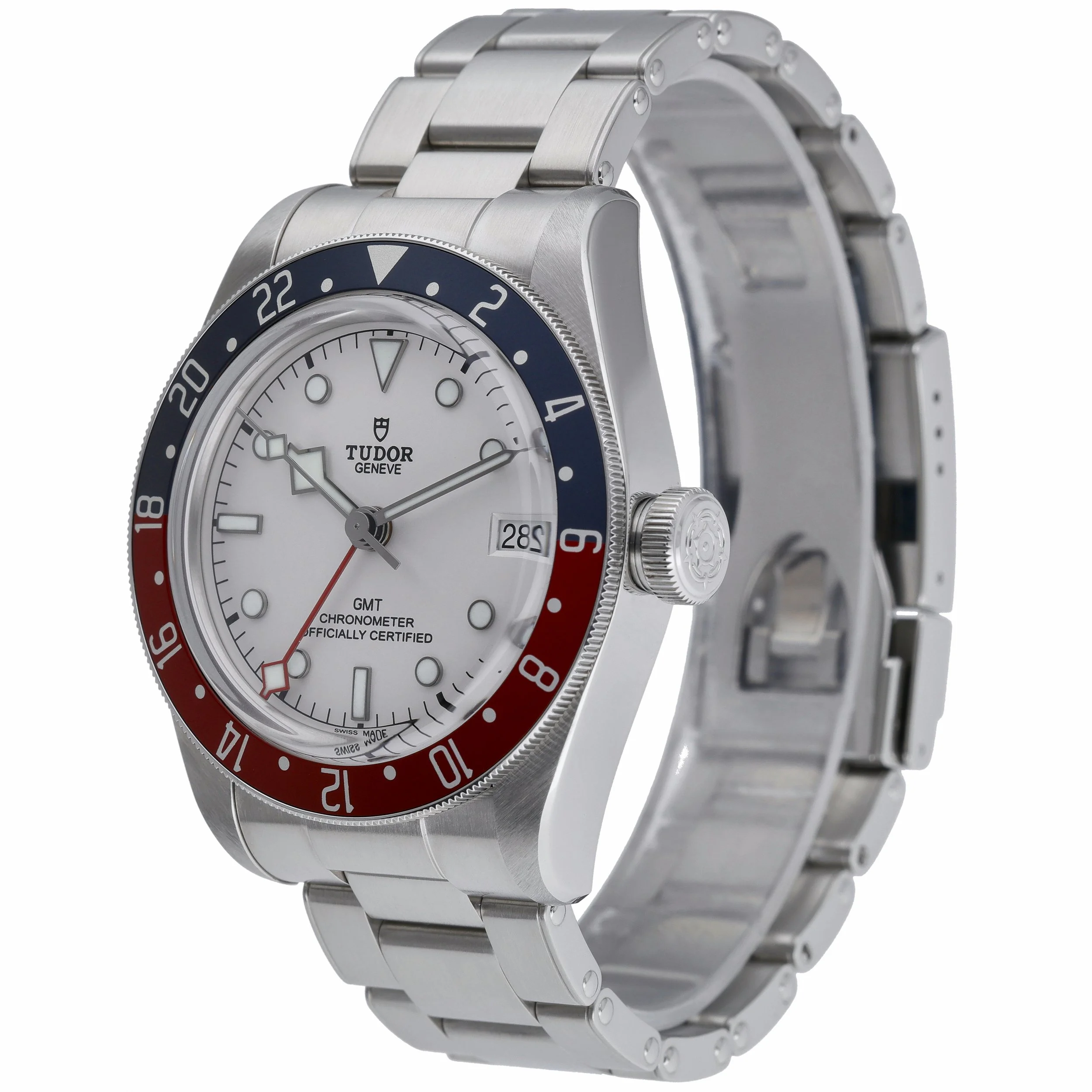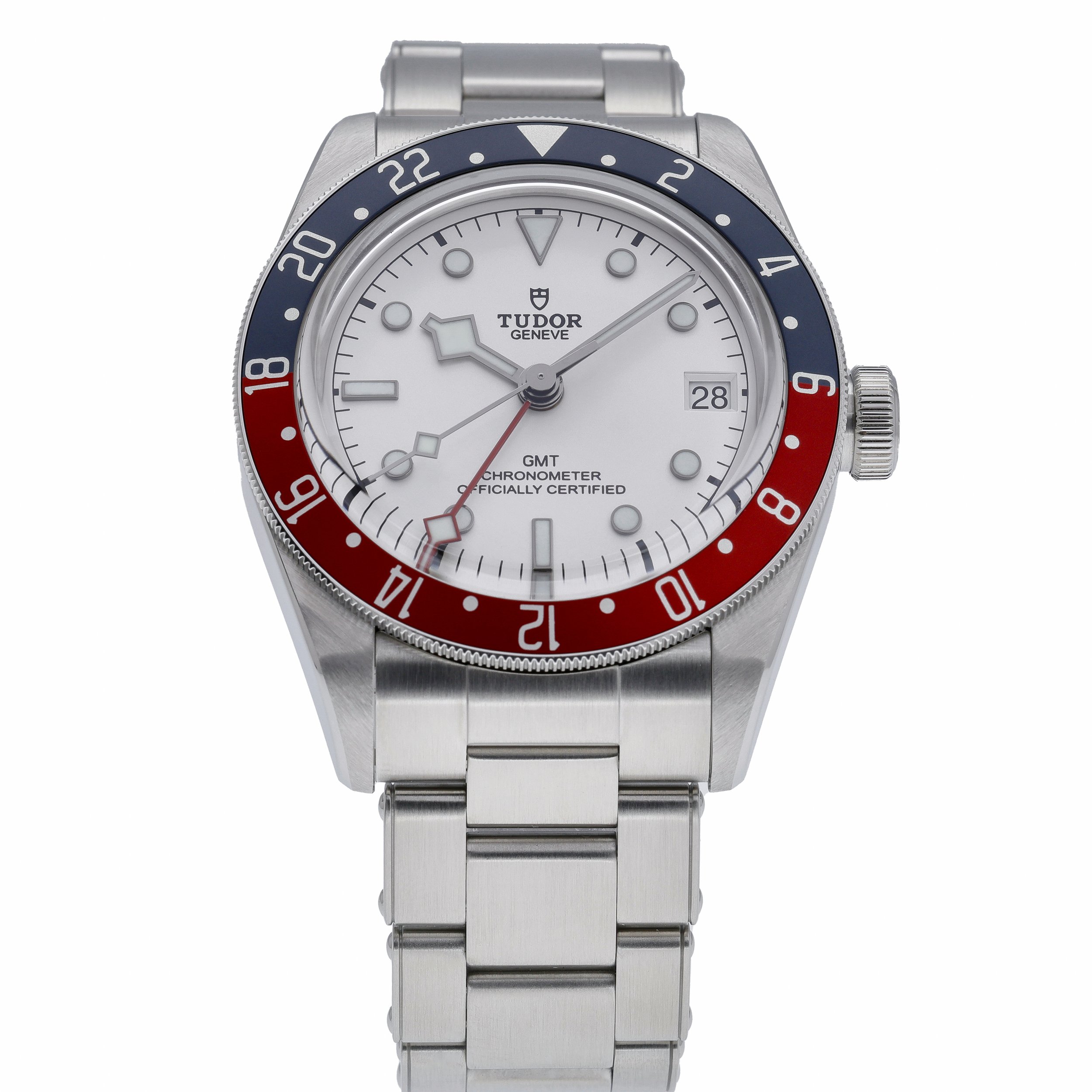 Discover the Tudor Black Bay GMT (Model 79830RB), a 41mm steel travel companion with a crisp white dial and a bidirectional 24-hour bezel for effortless dual-Time tracking. Powered by an automatic movement and protected by sapphire crystal, this 2024 example is in excellent condition and water resistant to 20 ATM. It comes on a comfortable fabric bracelet with a secure folding clasp. Supplied with its original box, papers, and white tag, and backed by our 2-year warranty, this piece is ready for immediate wear. BQ Ref 52645. Enjoy next day delivery and a 14-day return policy.