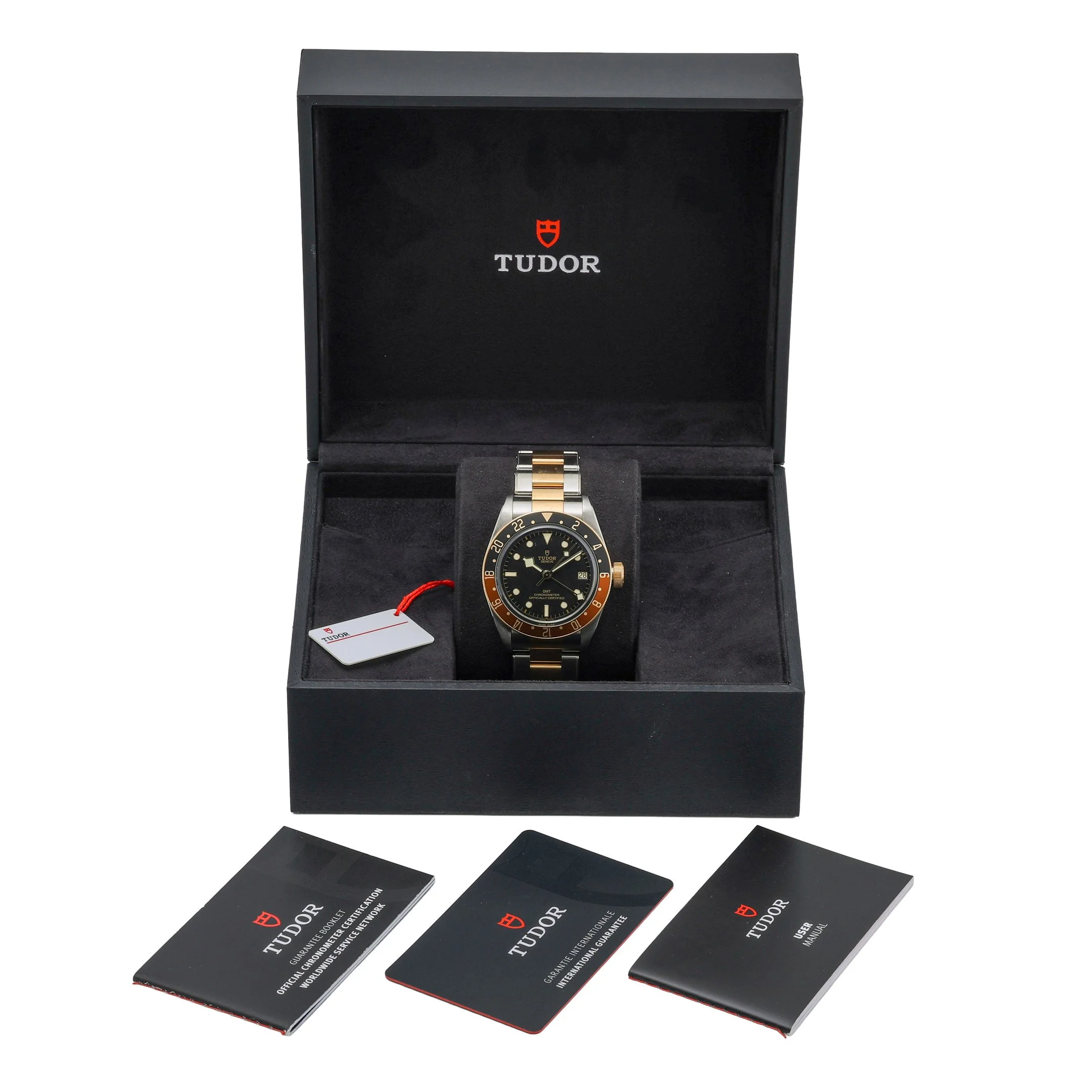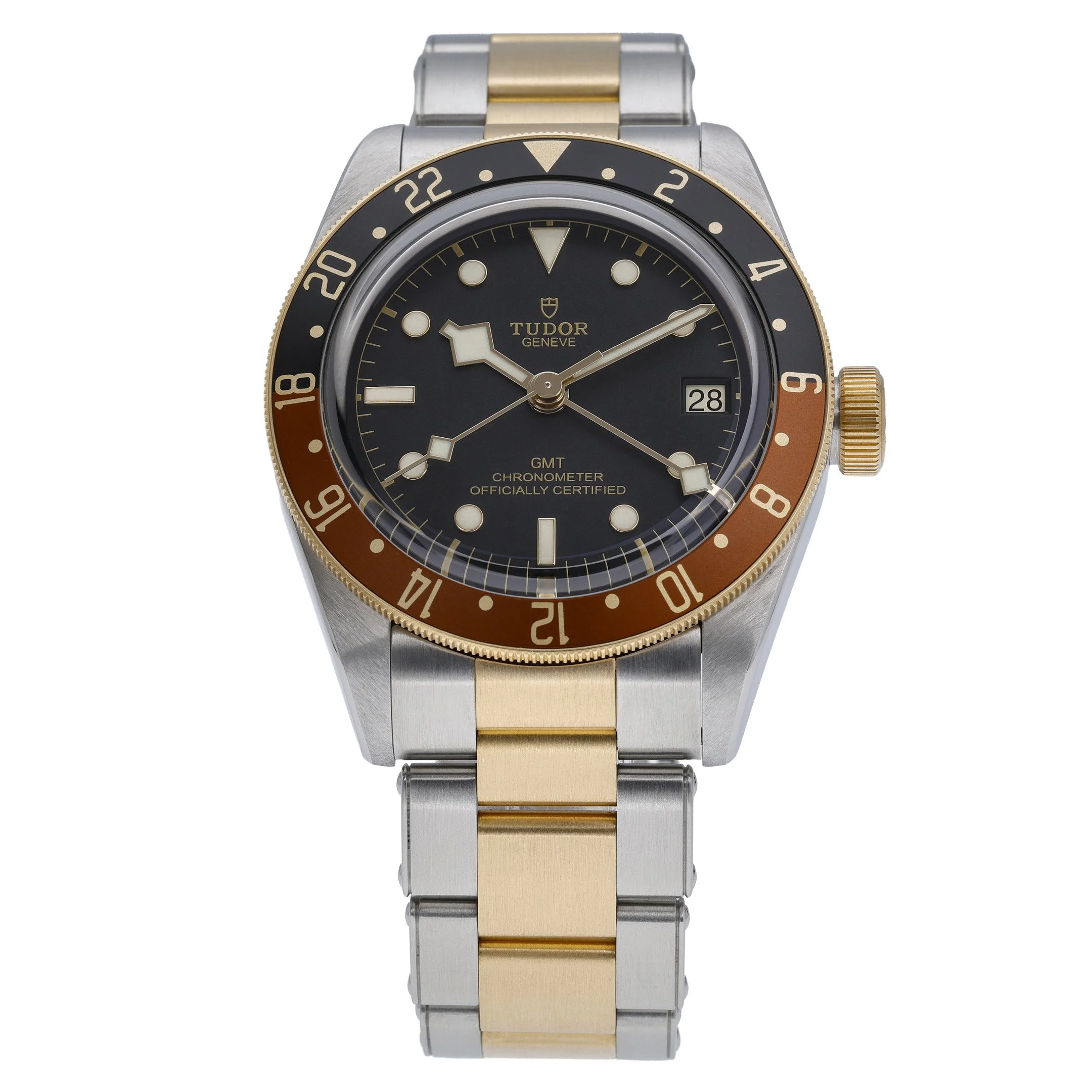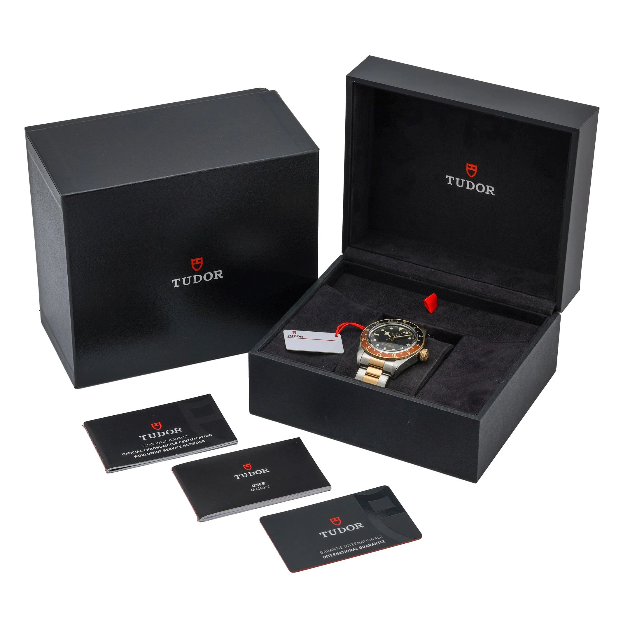 The Tudor Black Bay GMT S&G (ref. 79833MN) blends travel-ready functionality with refined sport styling. This 41mm model pairs steel and yellow gold across the case and bracelet, featuring a bidirectional rotatable bezel and a black dial protected by sapphire crystal. Powered by an automatic movement and water resistant to 200M, it offers dependable performance for daily wear and international journeys alike. Presented in excellent condition and manufactured in 2023, it comes complete with original box, papers, and white tag. The steel and yellow gold bracelet with folding clasp ensures a secure, comfortable fit. Supplied with a 2 Year Warranty, 14 Day Return Policy, and Prompt Delivery. BQ Ref: 52896.