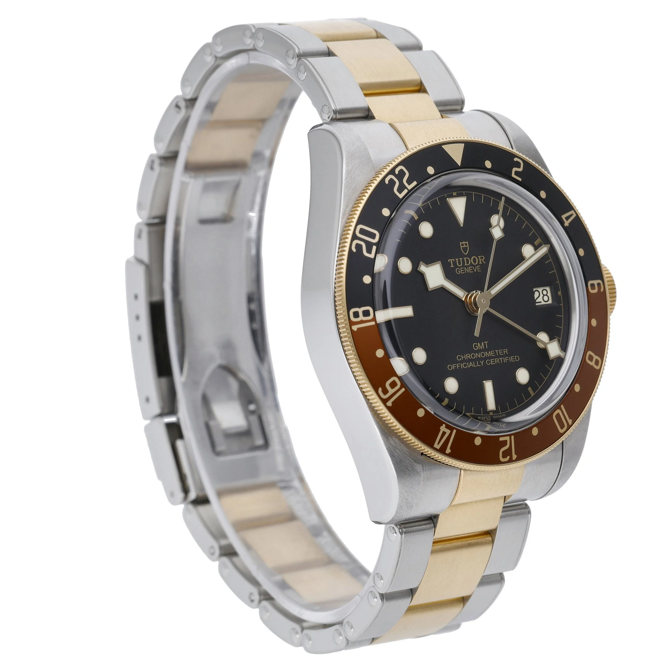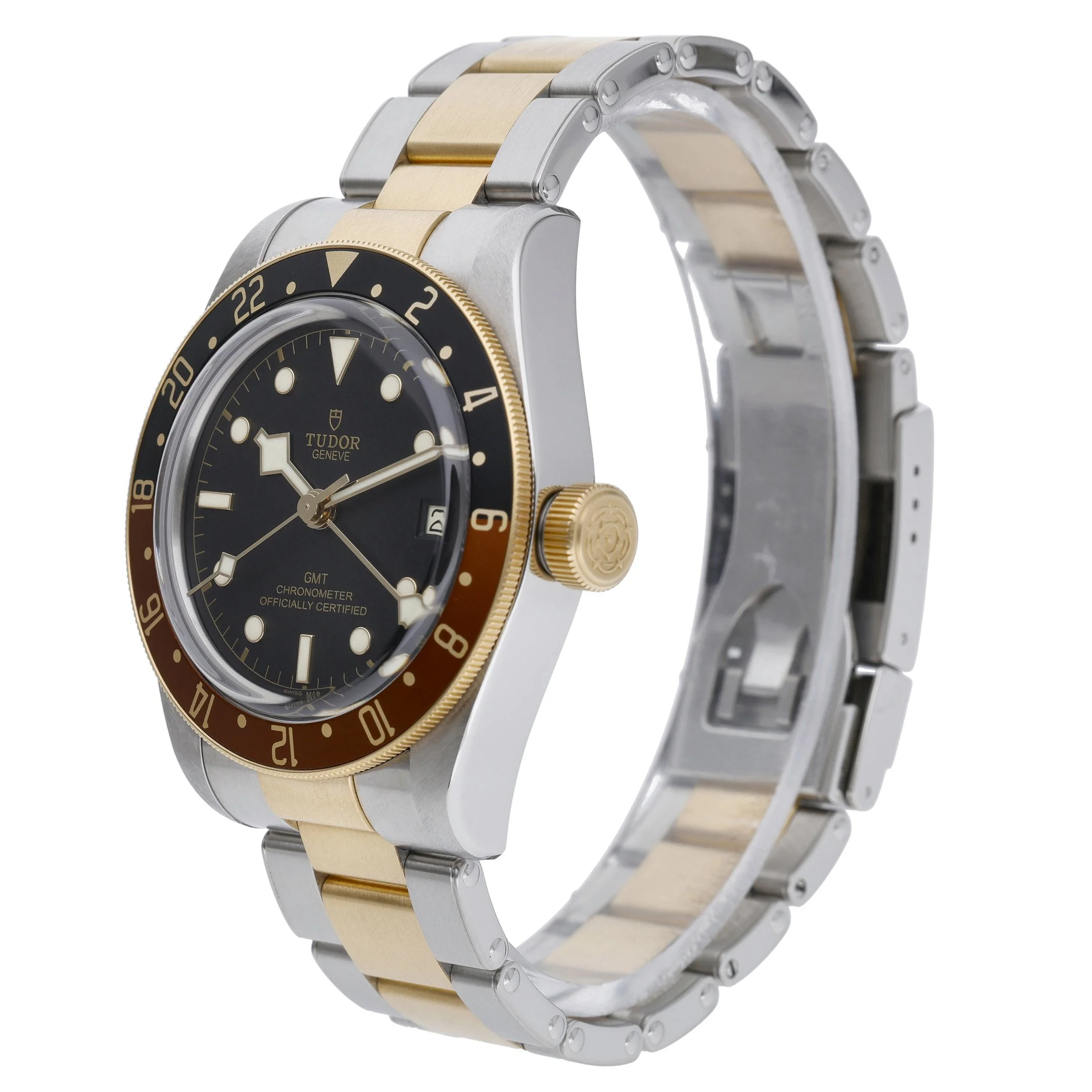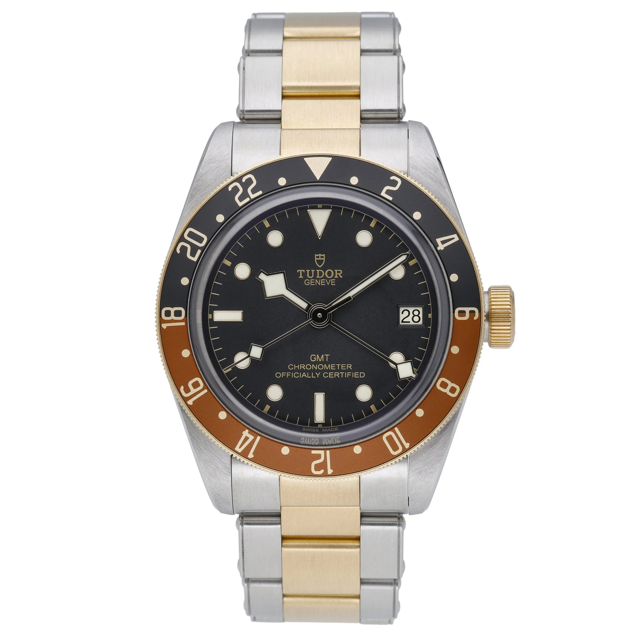 The Tudor Black Bay GMT S&G (ref. 79833MN) blends travel-ready functionality with refined sport styling. This 41mm model pairs steel and yellow gold across the case and bracelet, featuring a bidirectional rotatable bezel and a black dial protected by sapphire crystal. Powered by an automatic movement and water resistant to 200M, it offers dependable performance for daily wear and international journeys alike. Presented in excellent condition and manufactured in 2023, it comes complete with original box, papers, and white tag. The steel and yellow gold bracelet with folding clasp ensures a secure, comfortable fit. Supplied with a 2 Year Warranty, 14 Day Return Policy, and Prompt Delivery. BQ Ref: 52896.